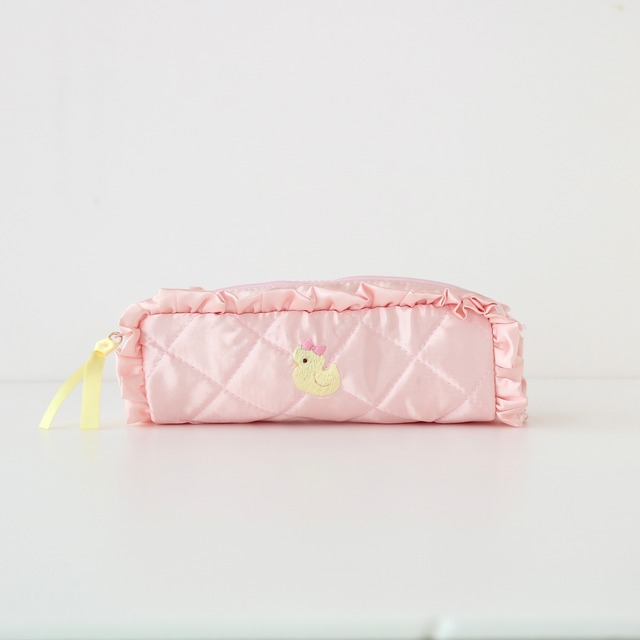 ペンケース(ピンクサテン/ひよこ刺繍)