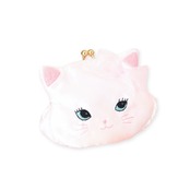 エレガントな白猫デザインが目を引く、ピンクリボン付きがま口ポーチ