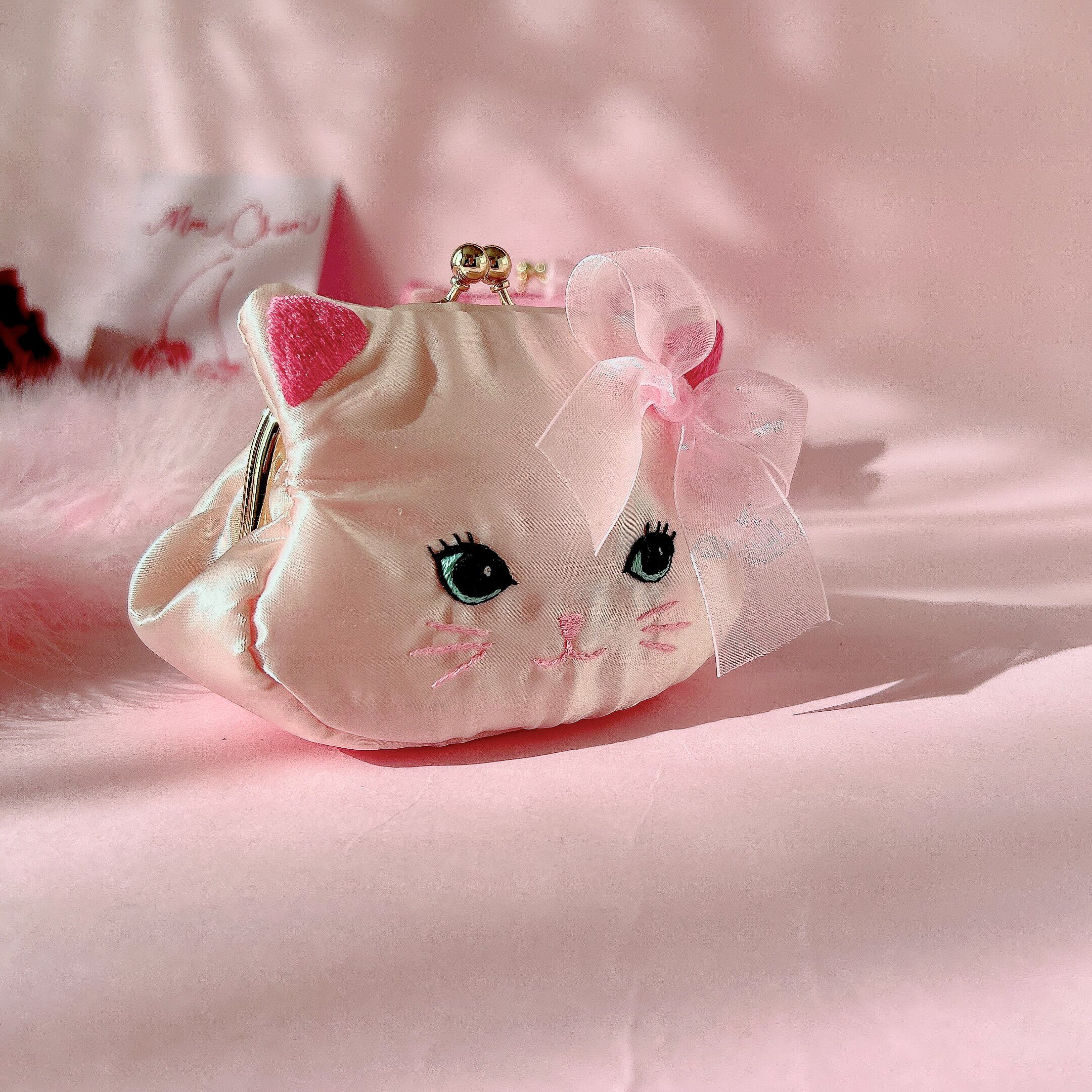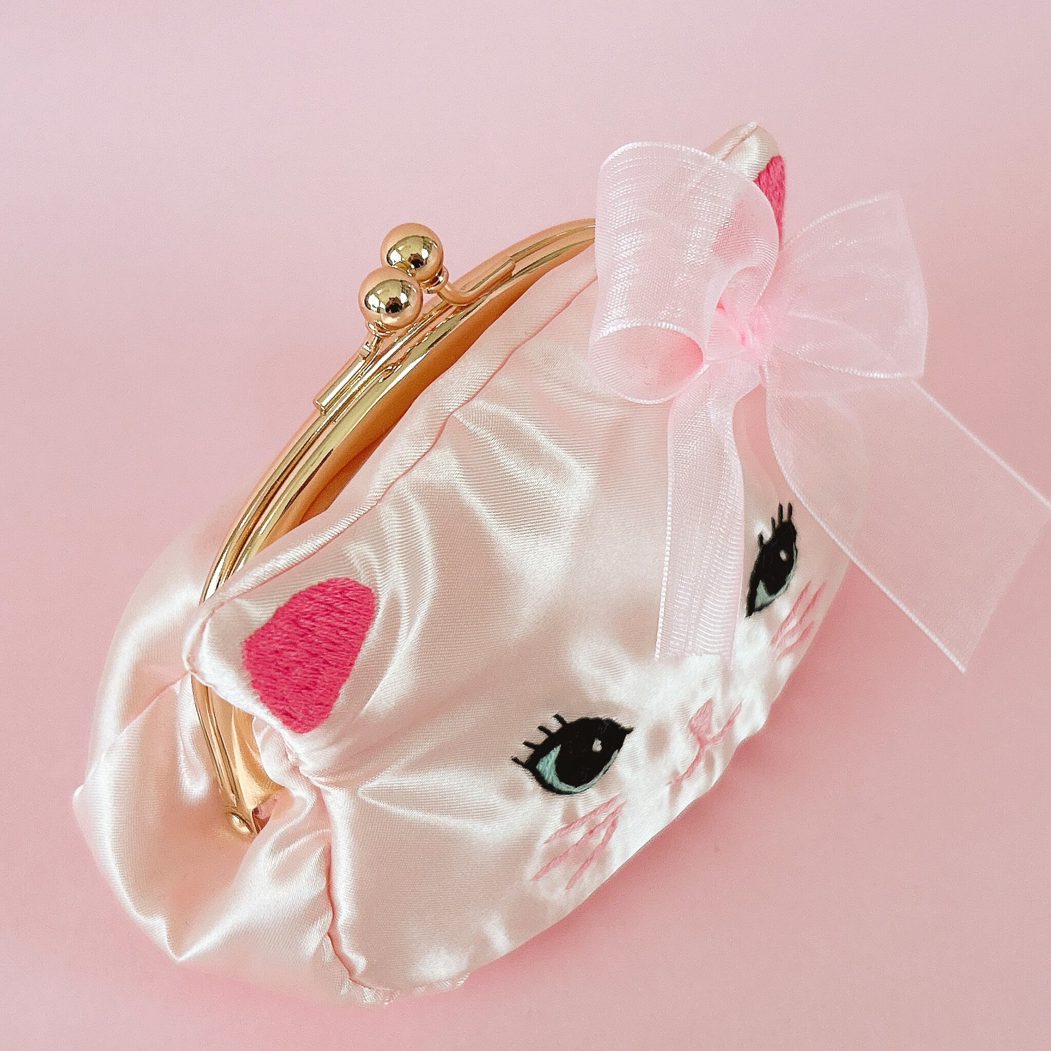 【お客様専用】猫がま口ポーチ(シェルピンク)
