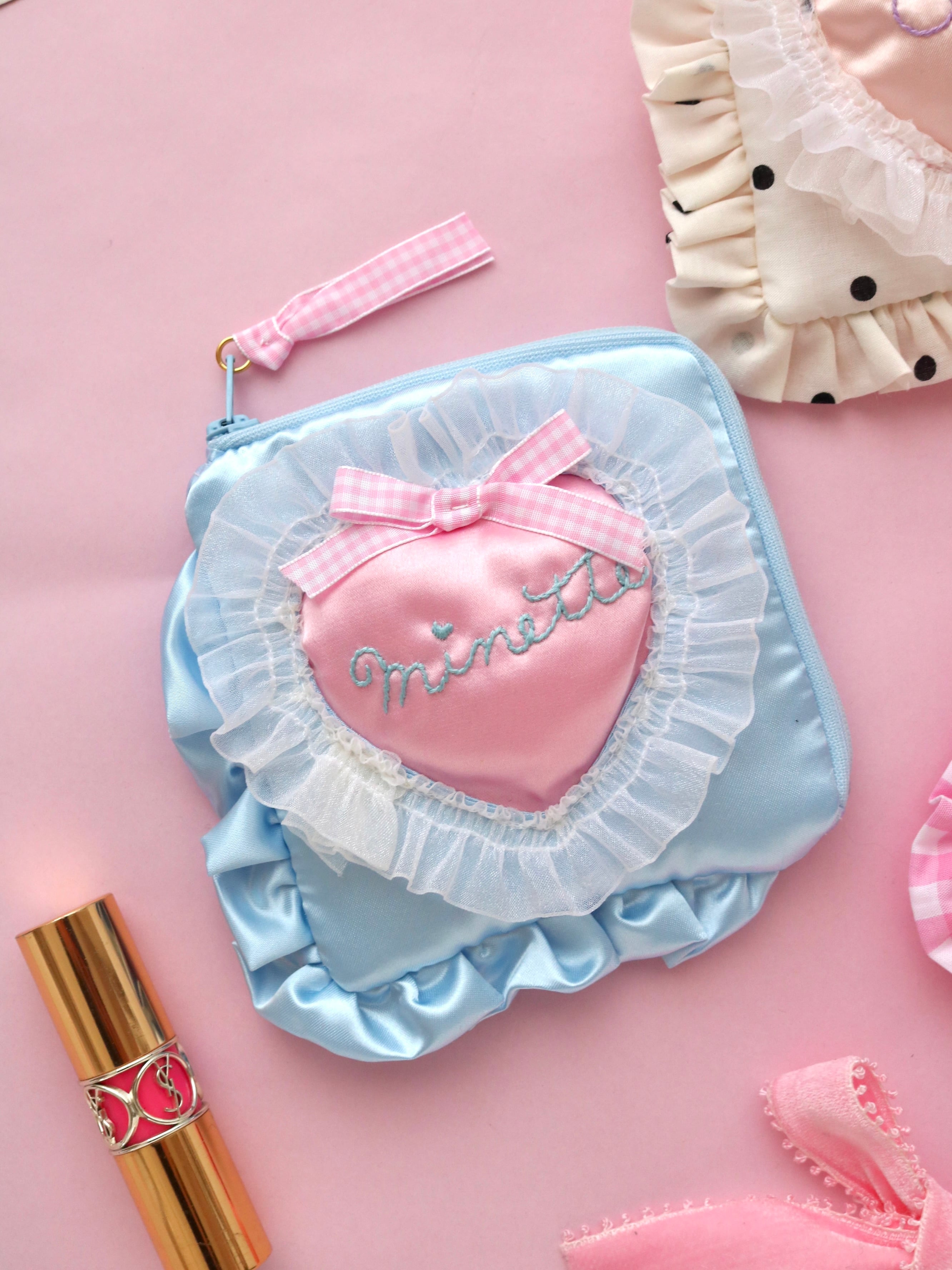 ??カスタムオーダー1点+ハートくり抜きミニスクエアポーチ(水色サテン)