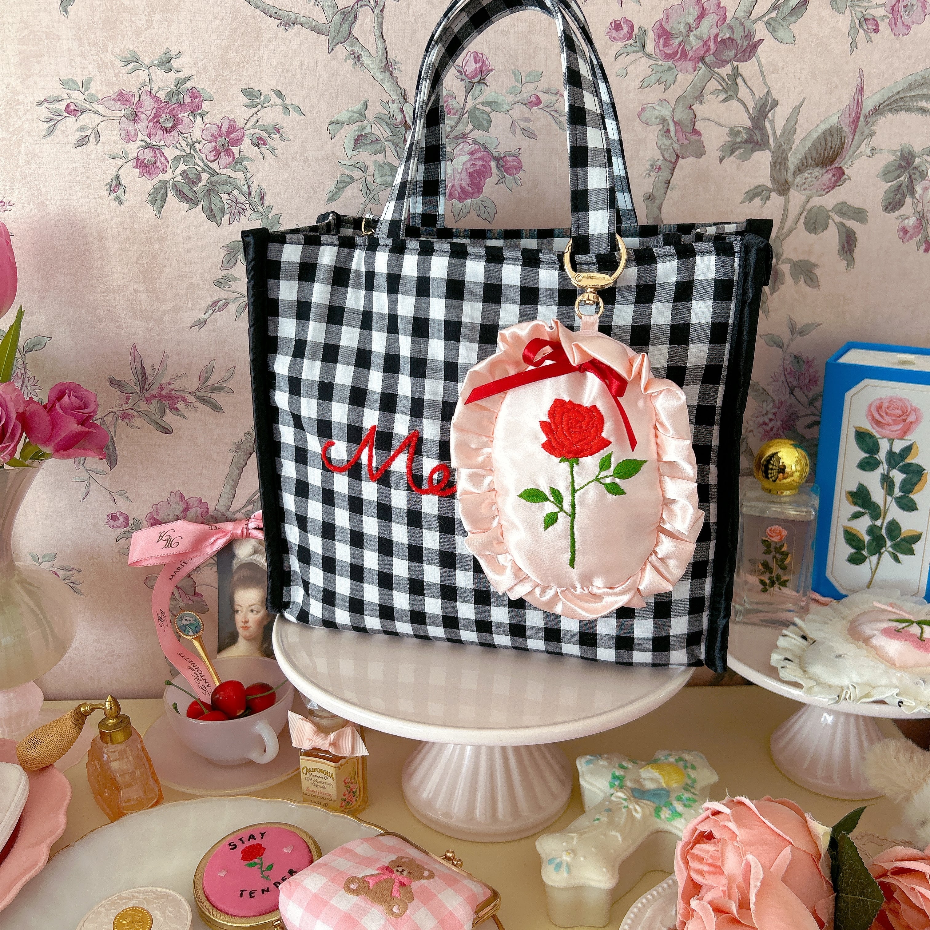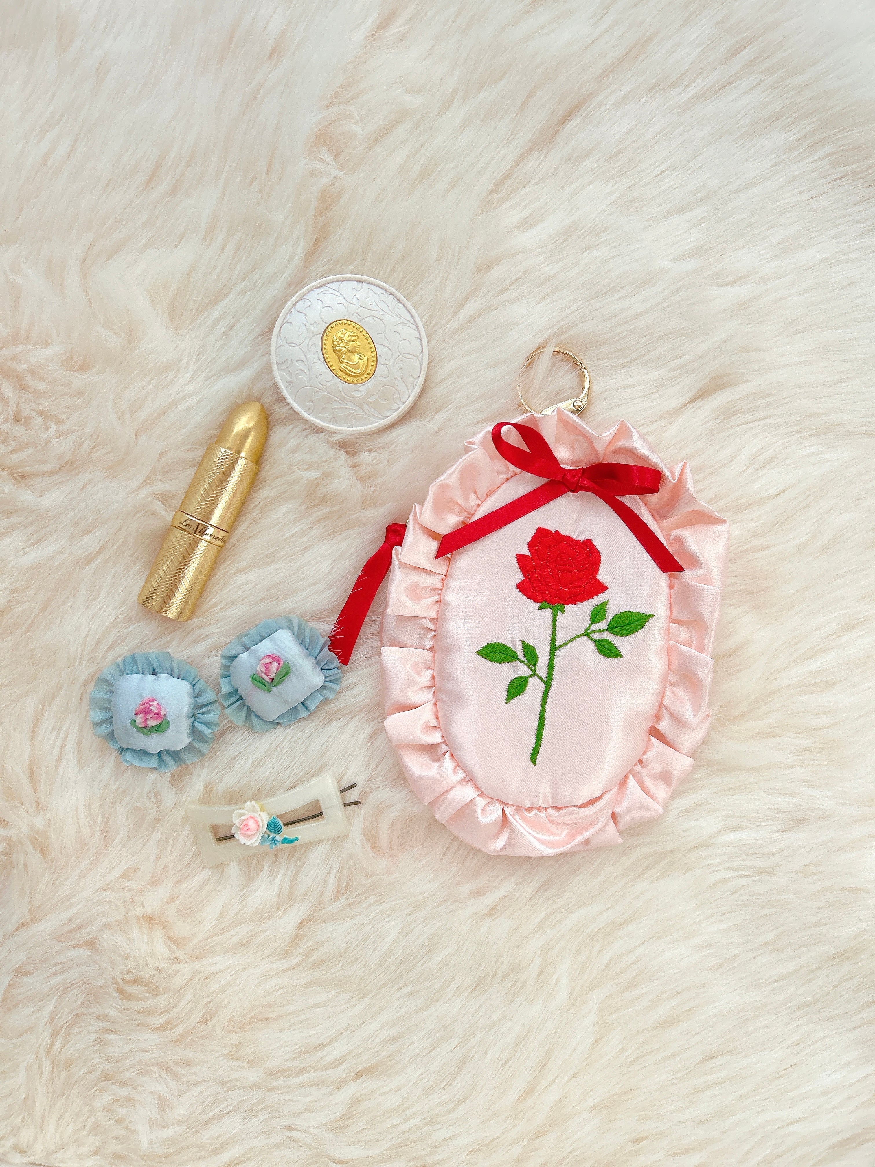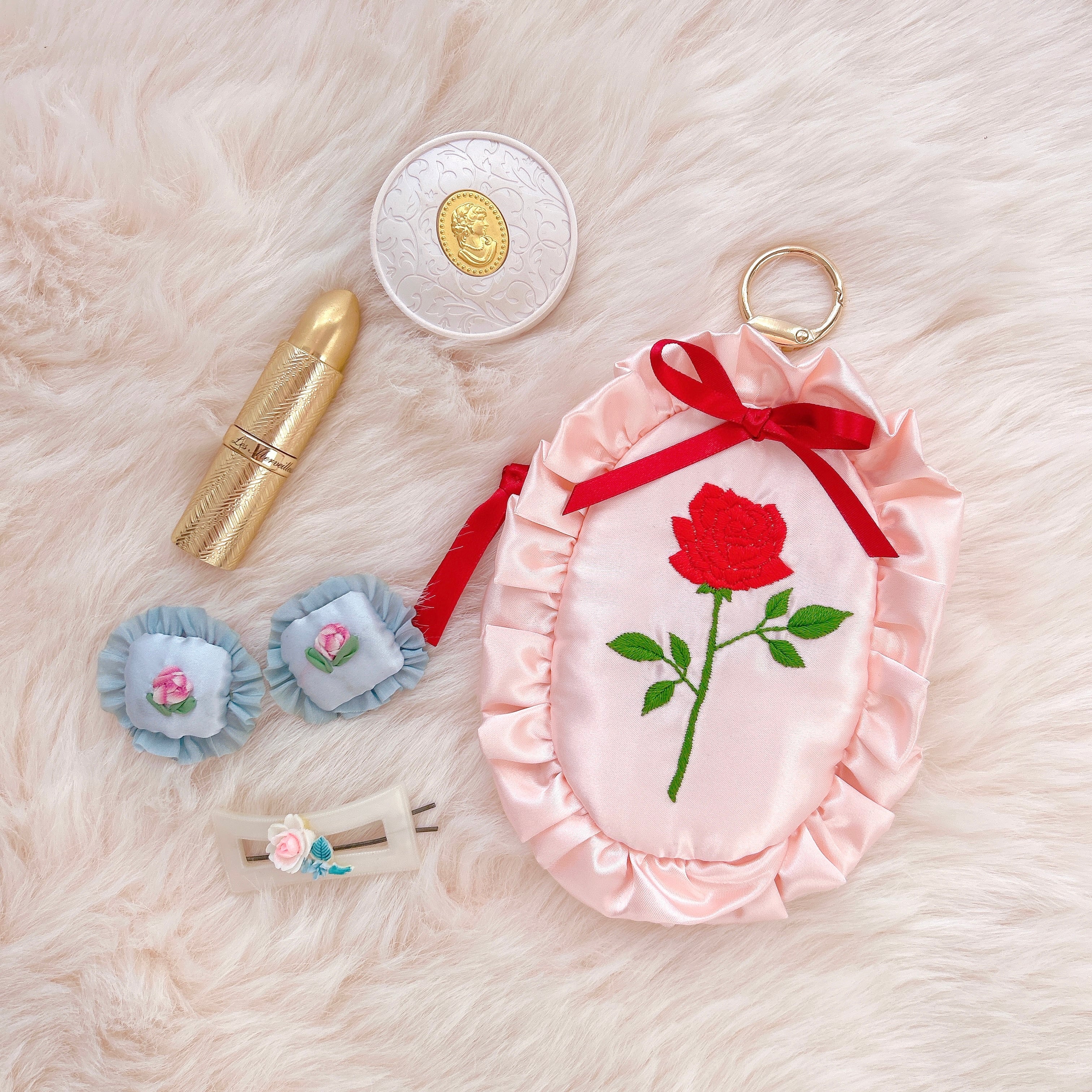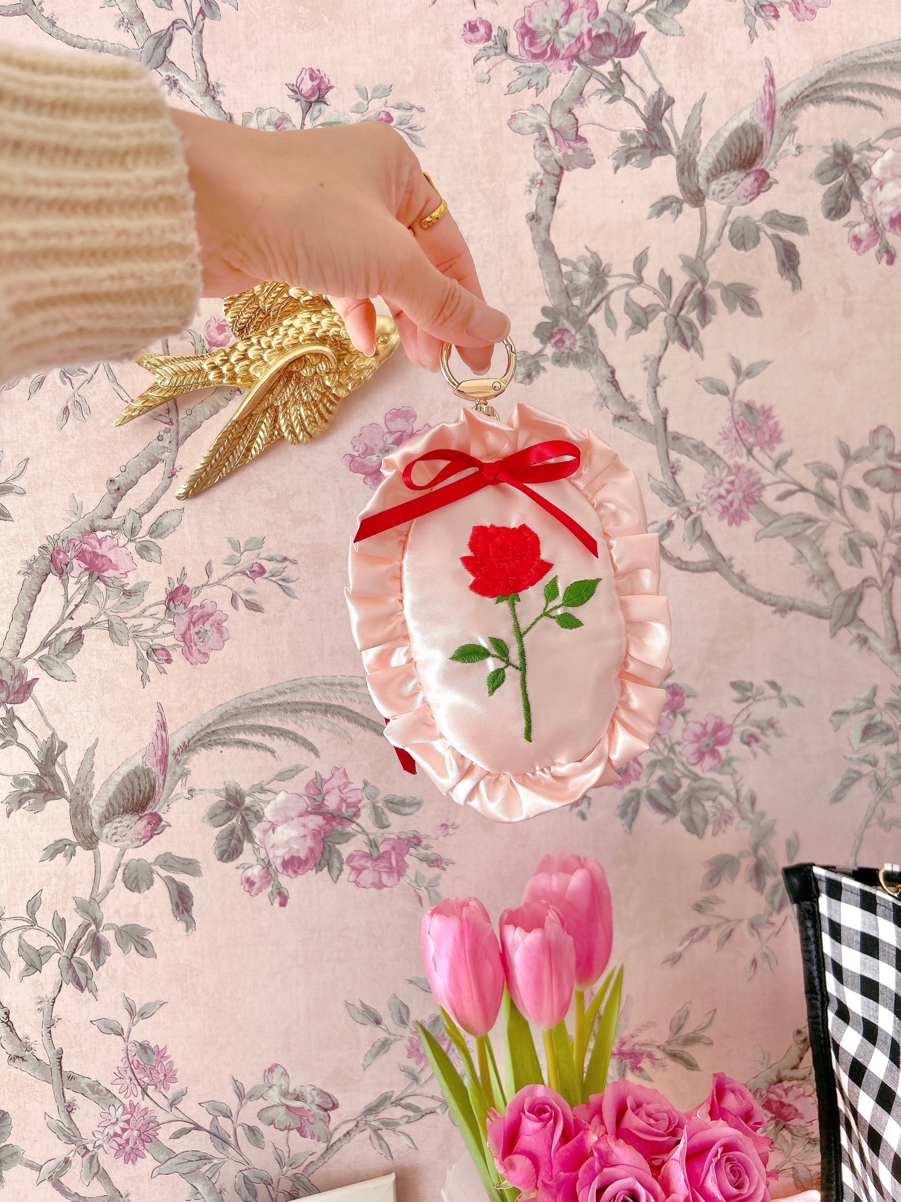 バッグチャームポーチ(シェルピンク/バラ刺繍)