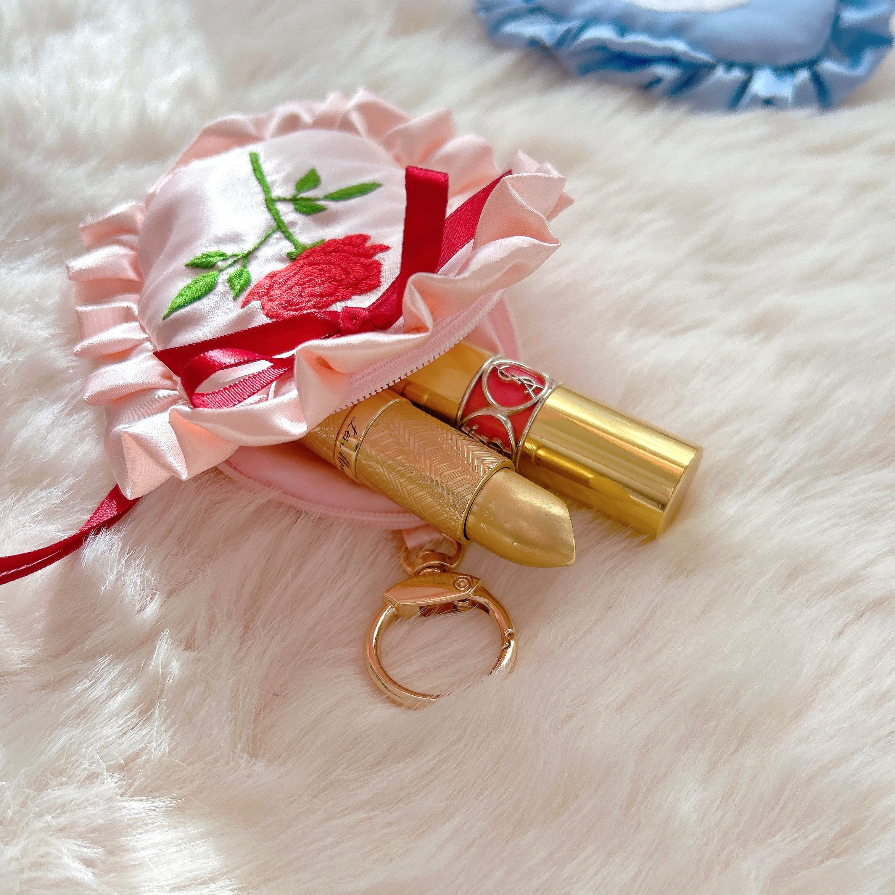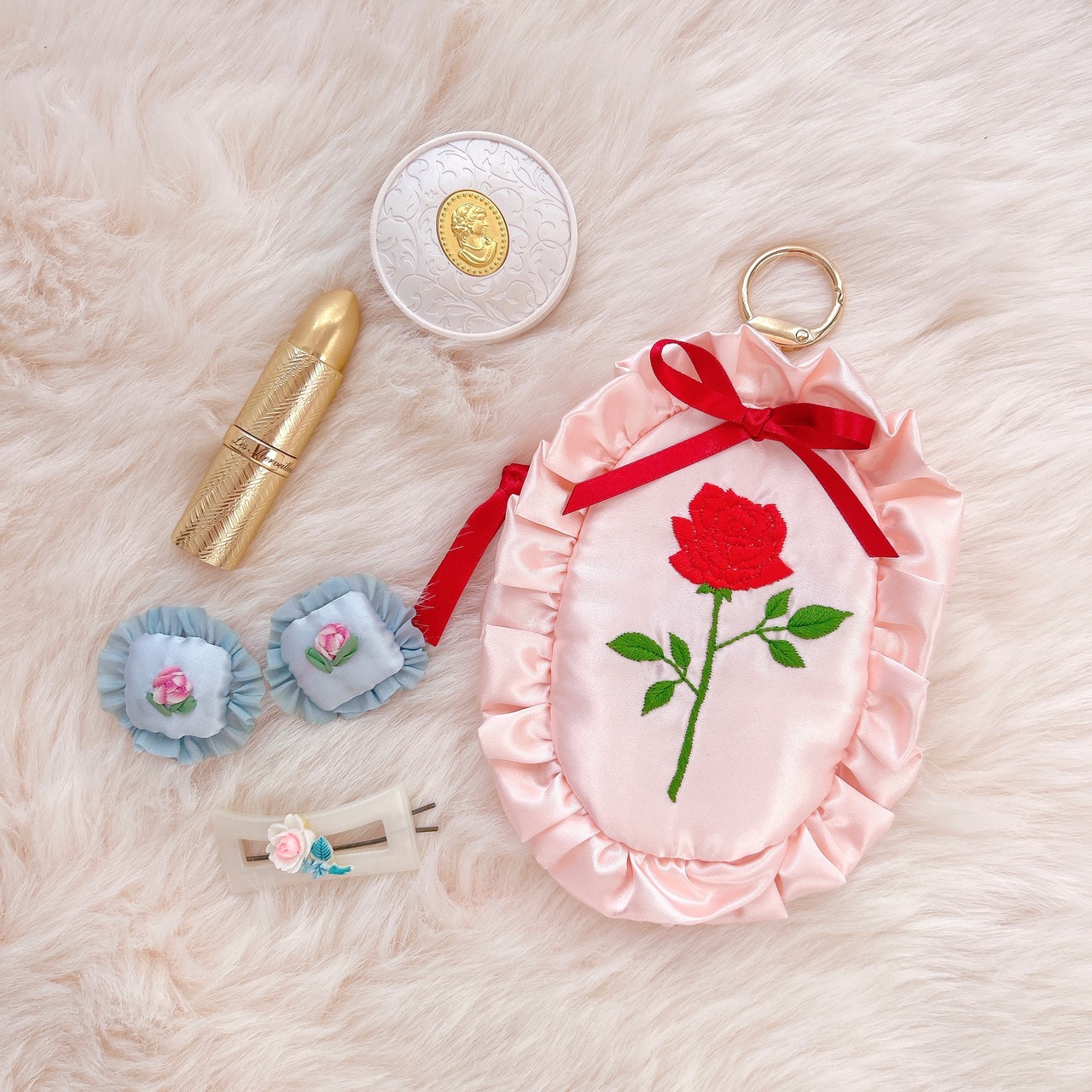 見た瞬間きゅんとする、フリル×刺繍が主役の小さめポーチ。