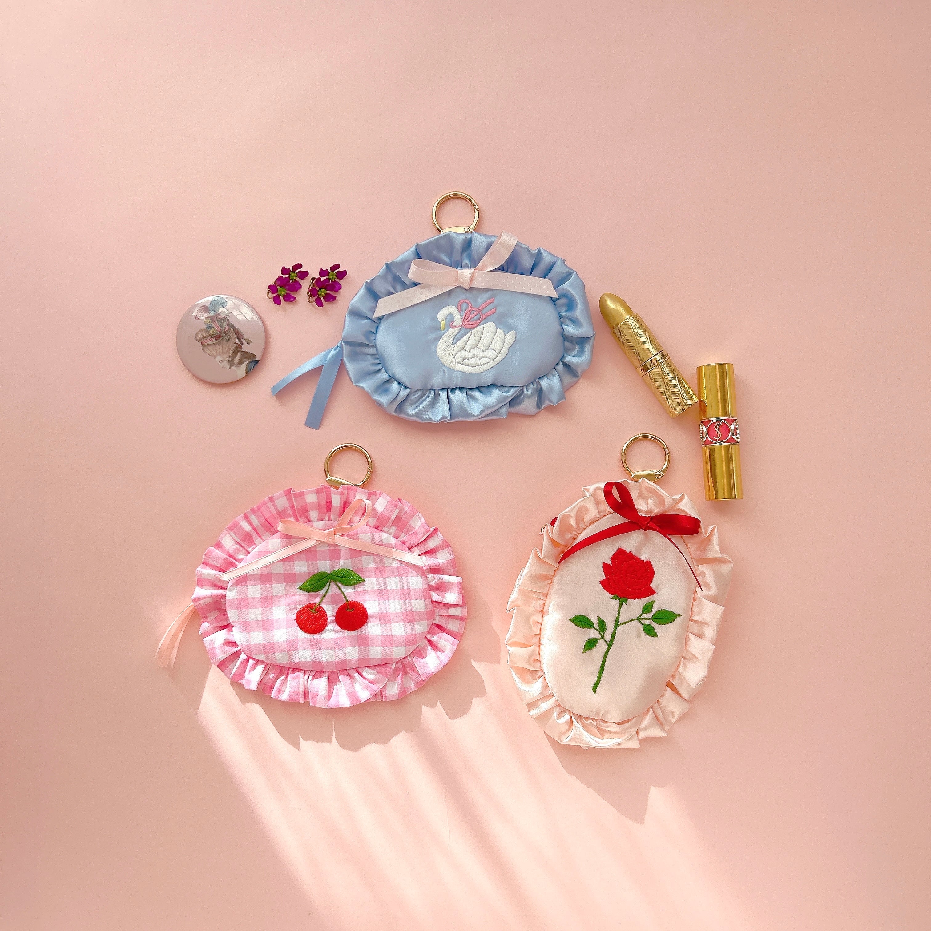 見た瞬間きゅんとする、フリル×刺繍が主役の小さめポーチ。