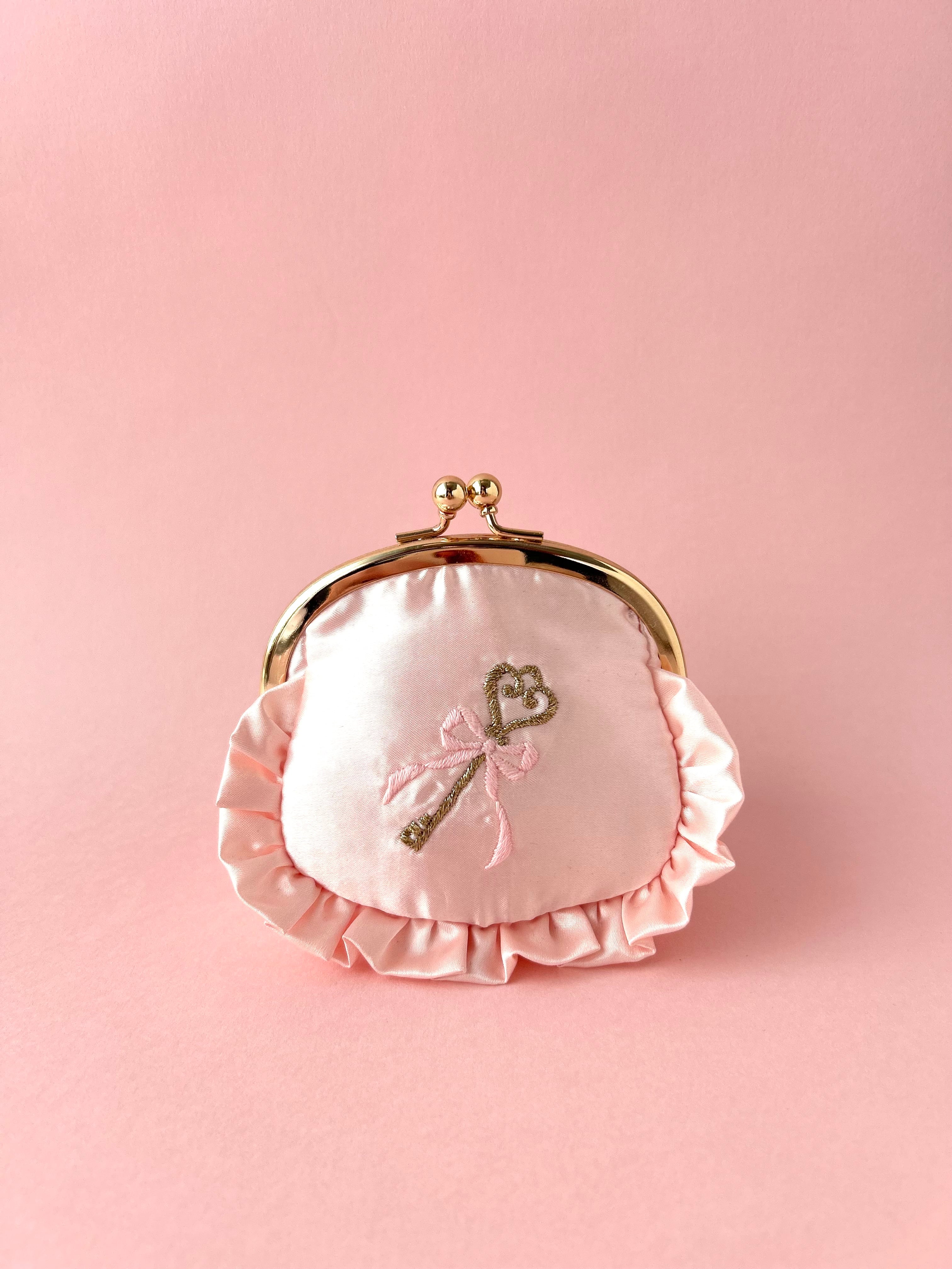 【サンプルセール品】がま口ポーチ(シェルピンク/魔法の鍵刺繍)※お一人様2個まで