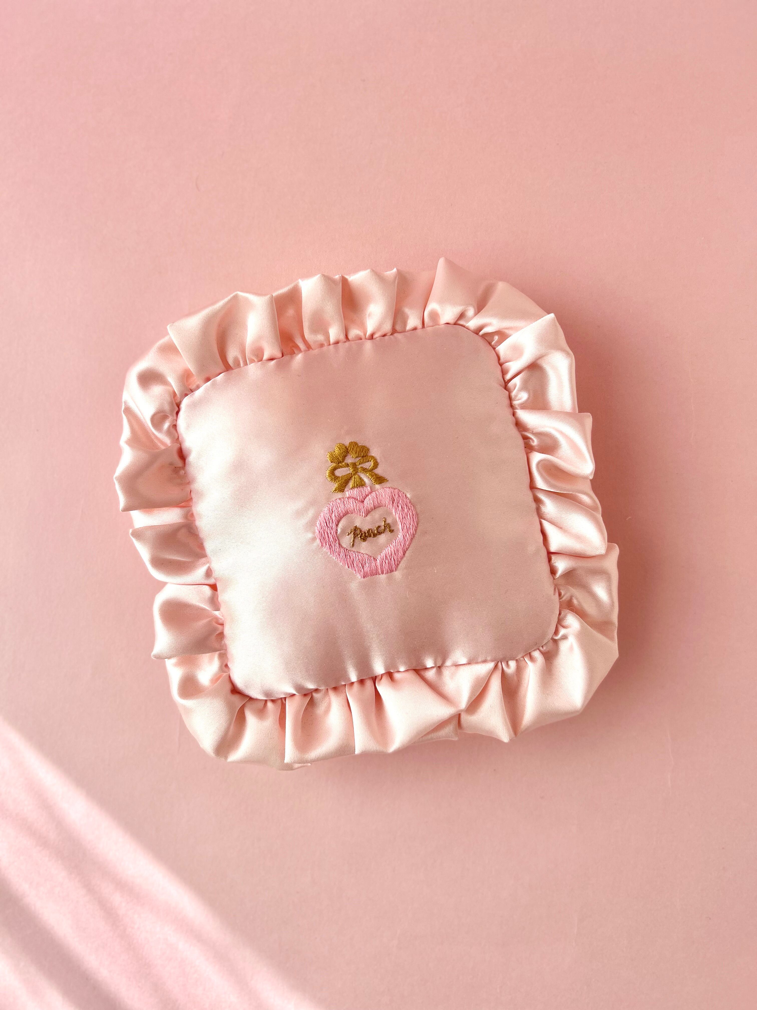 【サンプルセール品】クッションポーチ(シェルピンク/バラ刺繍)※お一人様2個まで