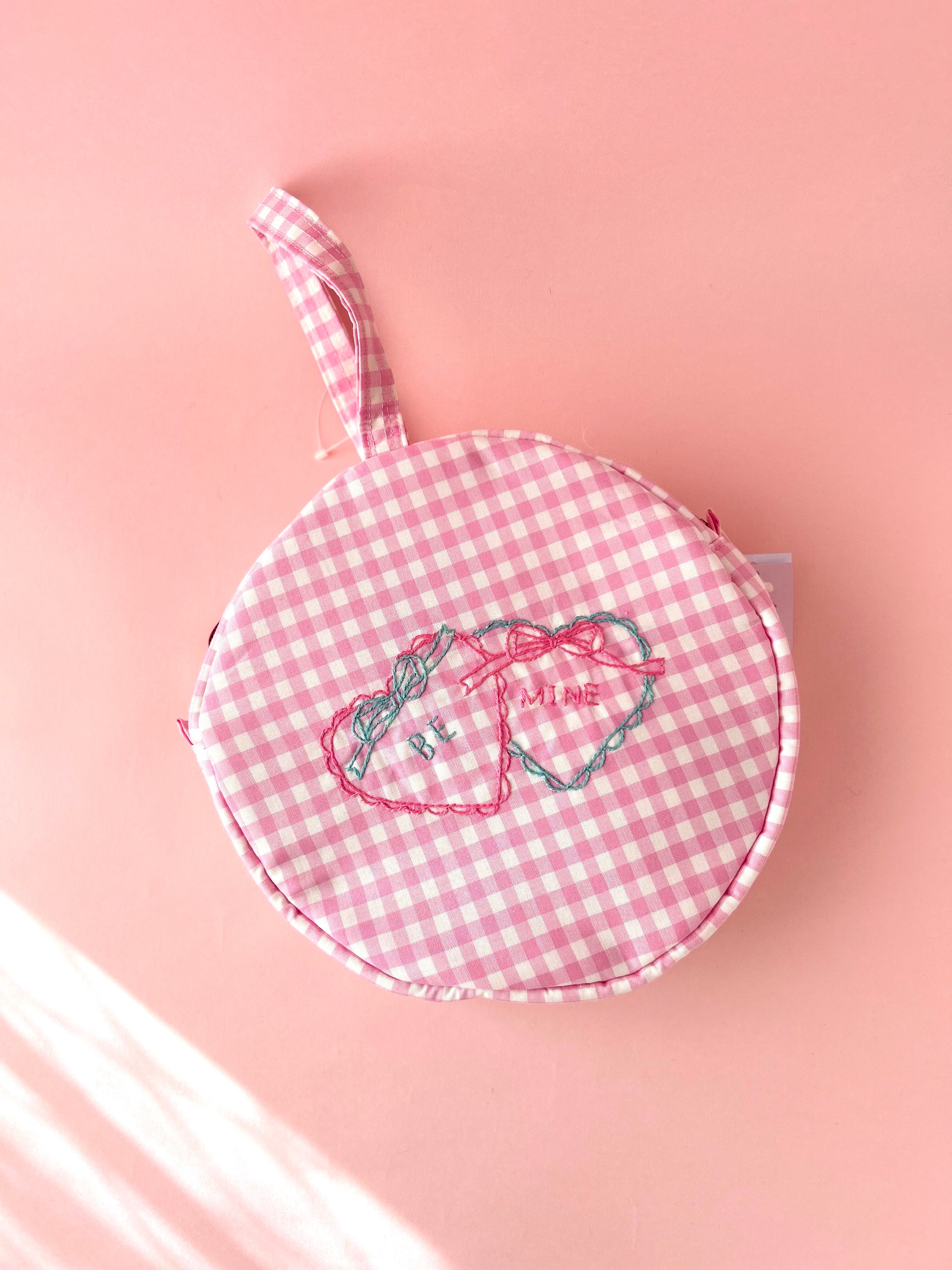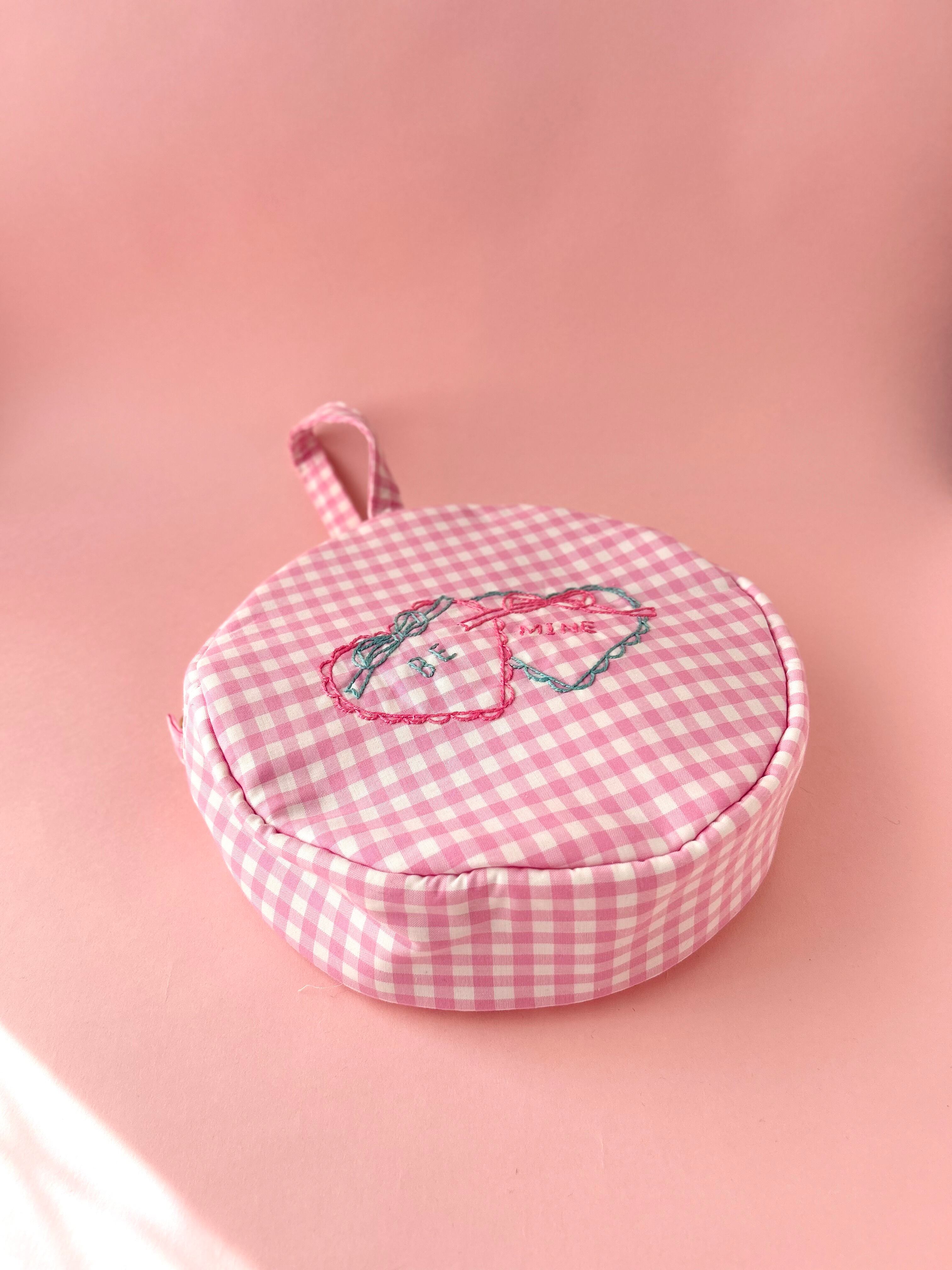 【サンプルセール品】ラウンドバッグ(ピンクギンガム/ダブルハート刺繍)※お一人様2個まで
