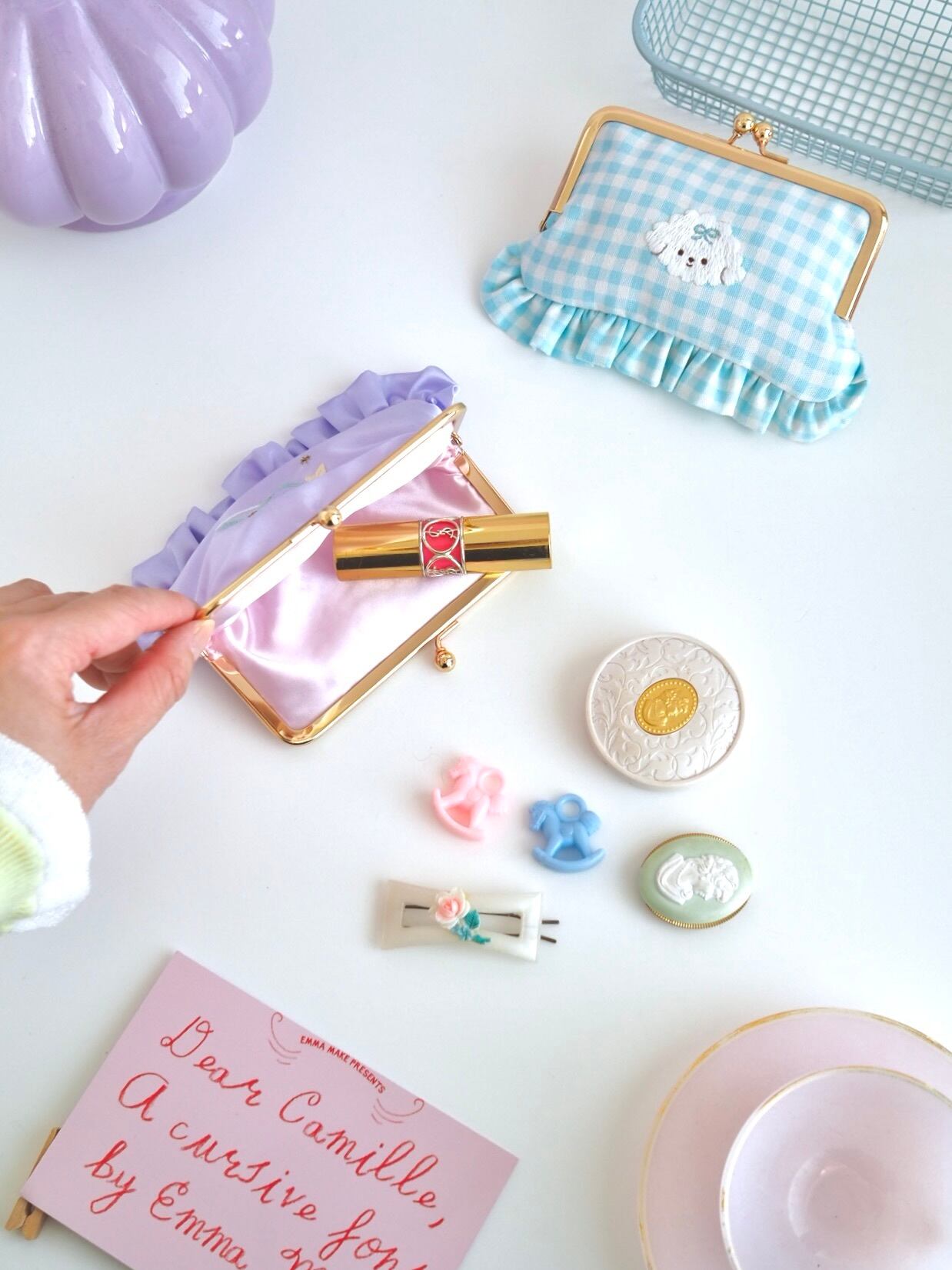 minette / ミネット刺繍 / がま口ポーチ / 横長ポーチ / リップポーチ / 刺繍ポーチ / ハンドメイド / かわいいポーチ / 小物入れ / ガーリー雑貨