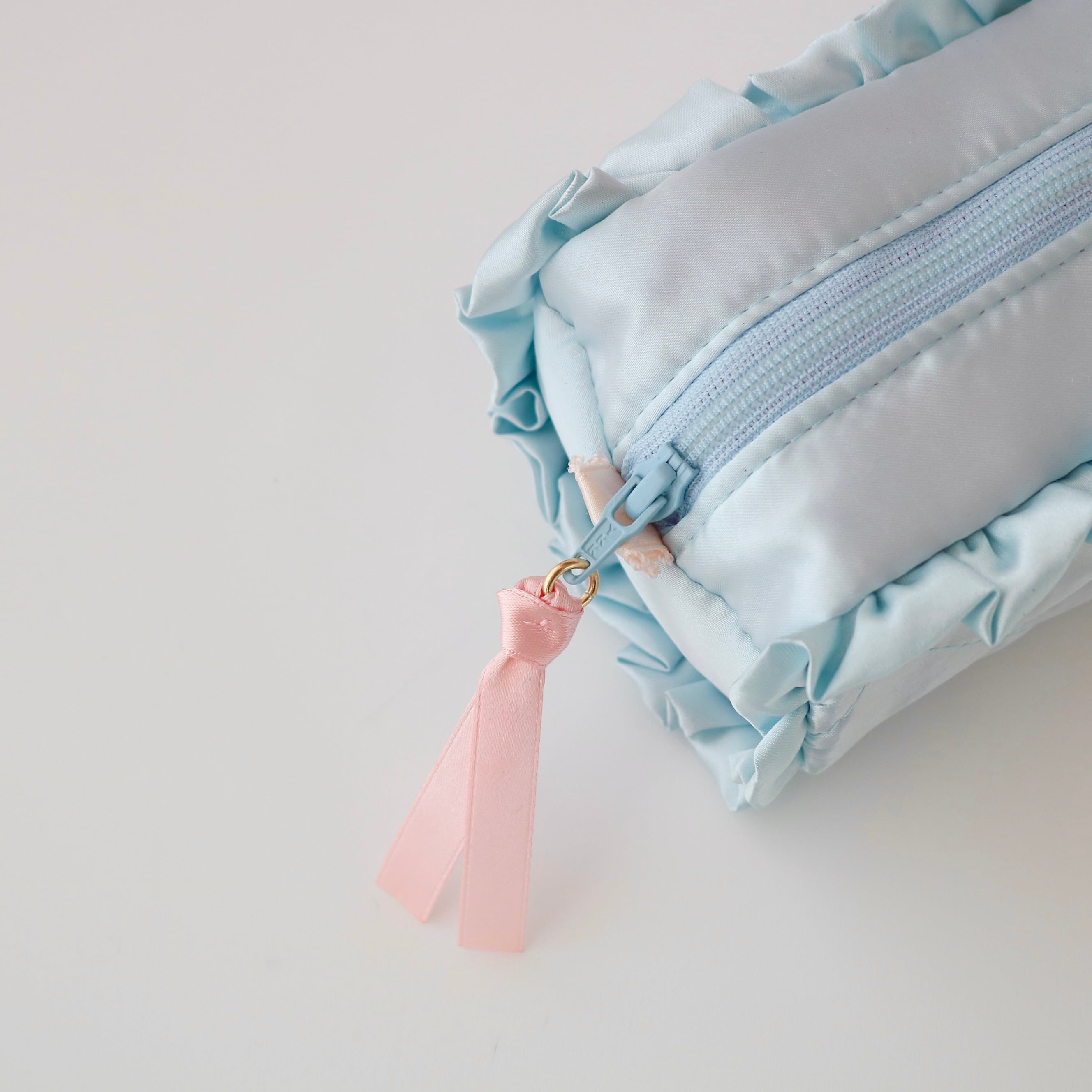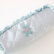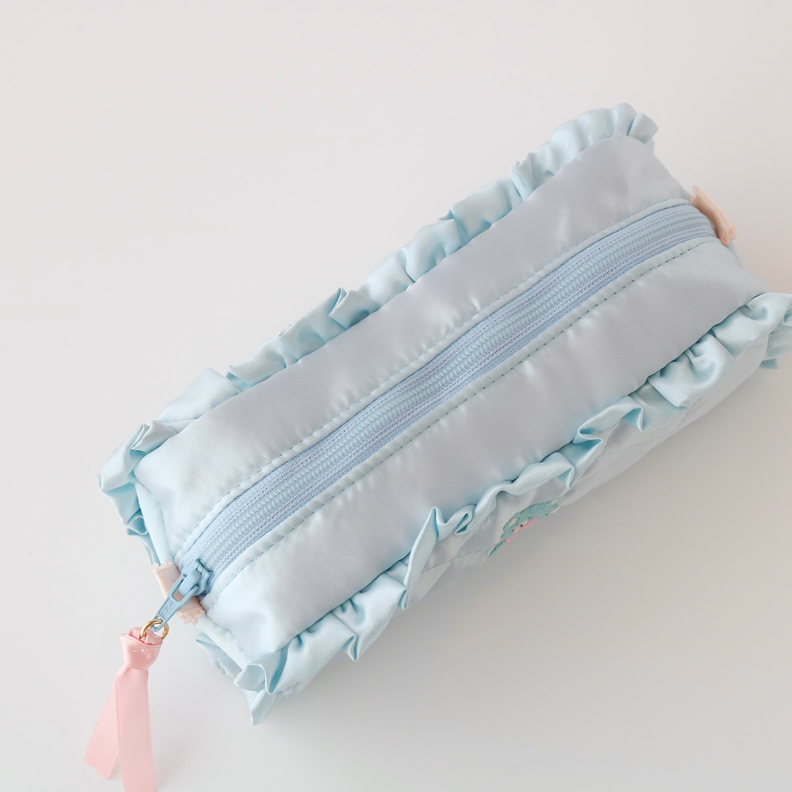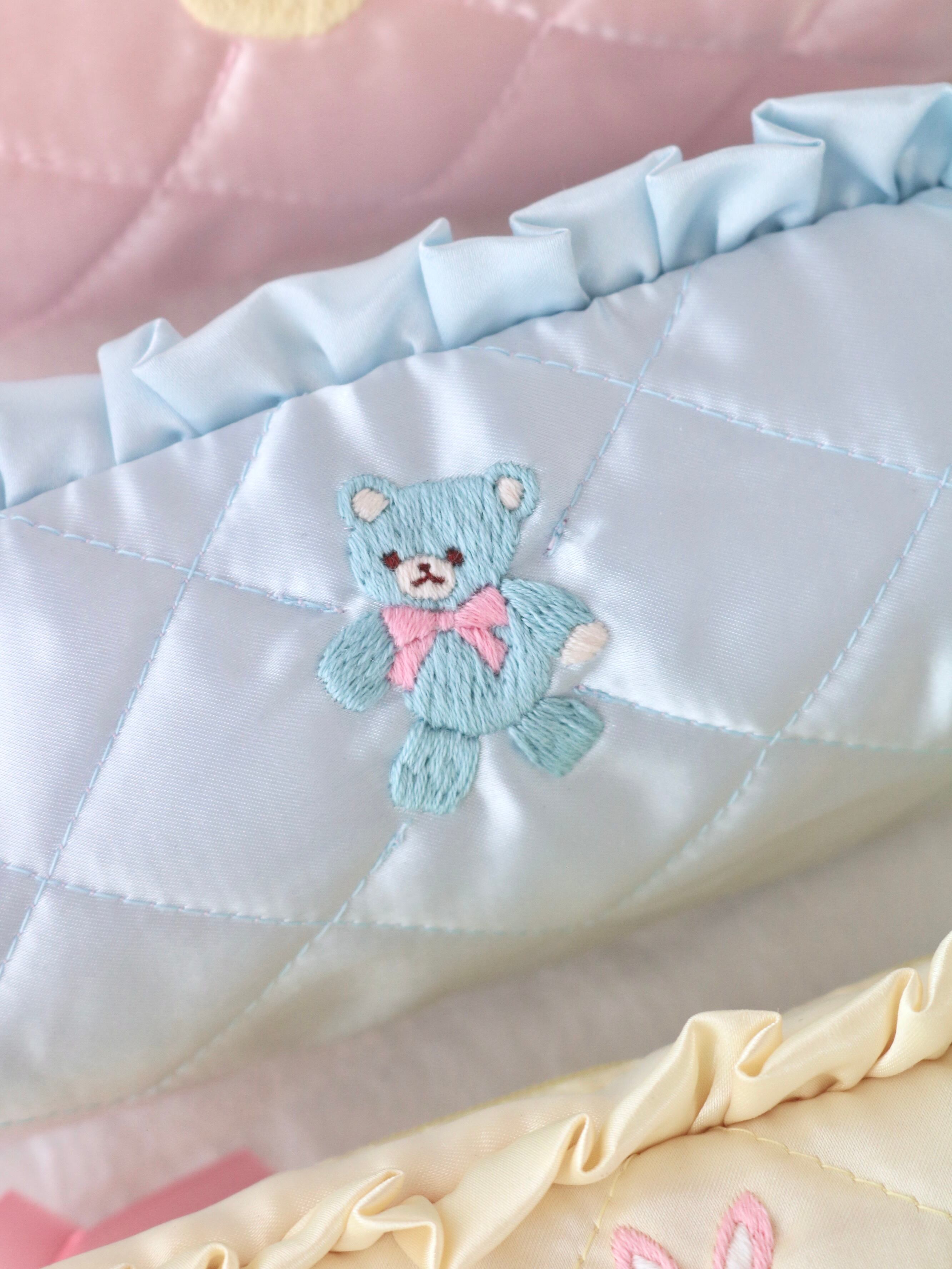 ペンケース(水色サテン/水色くま刺繍)