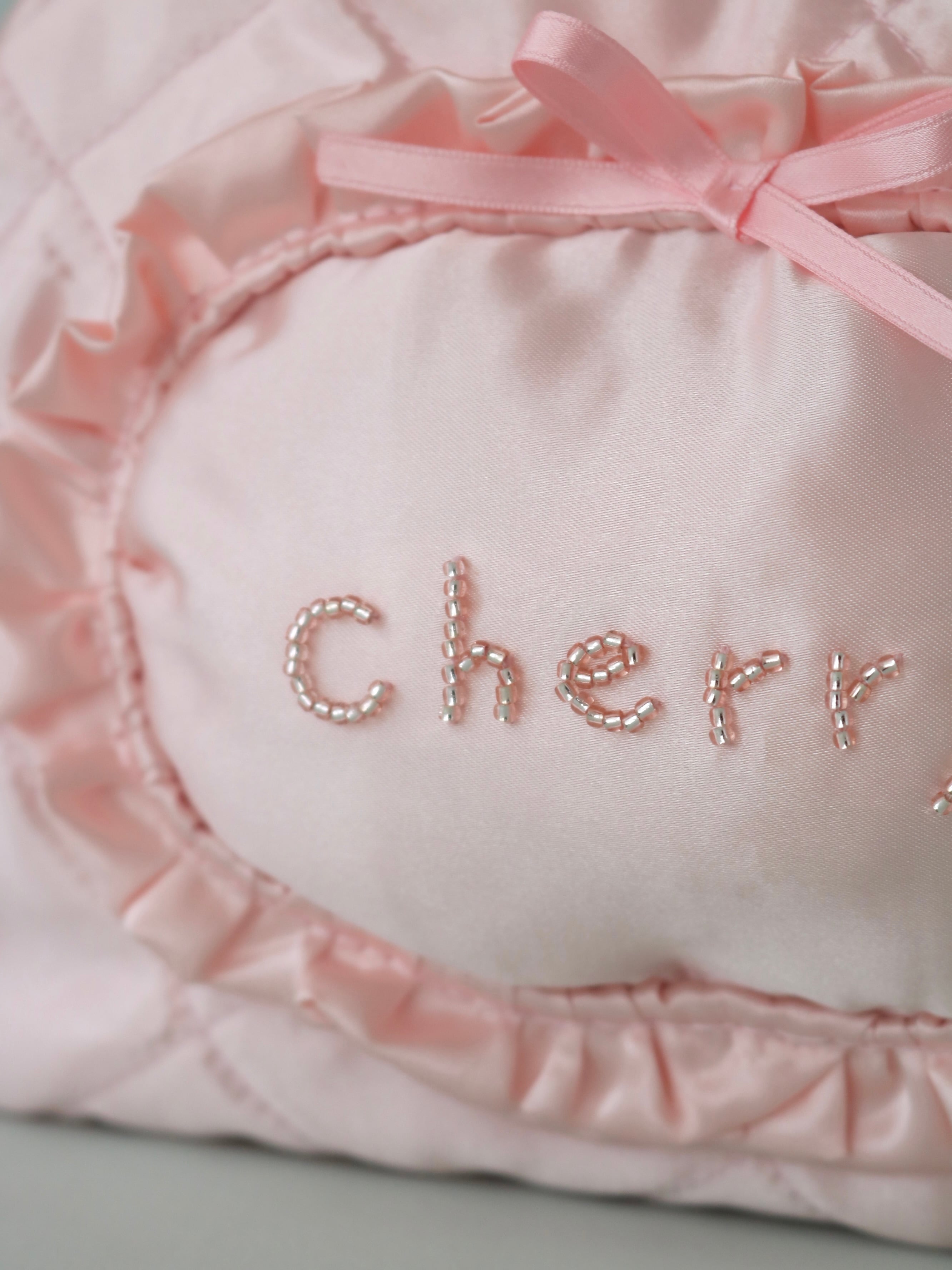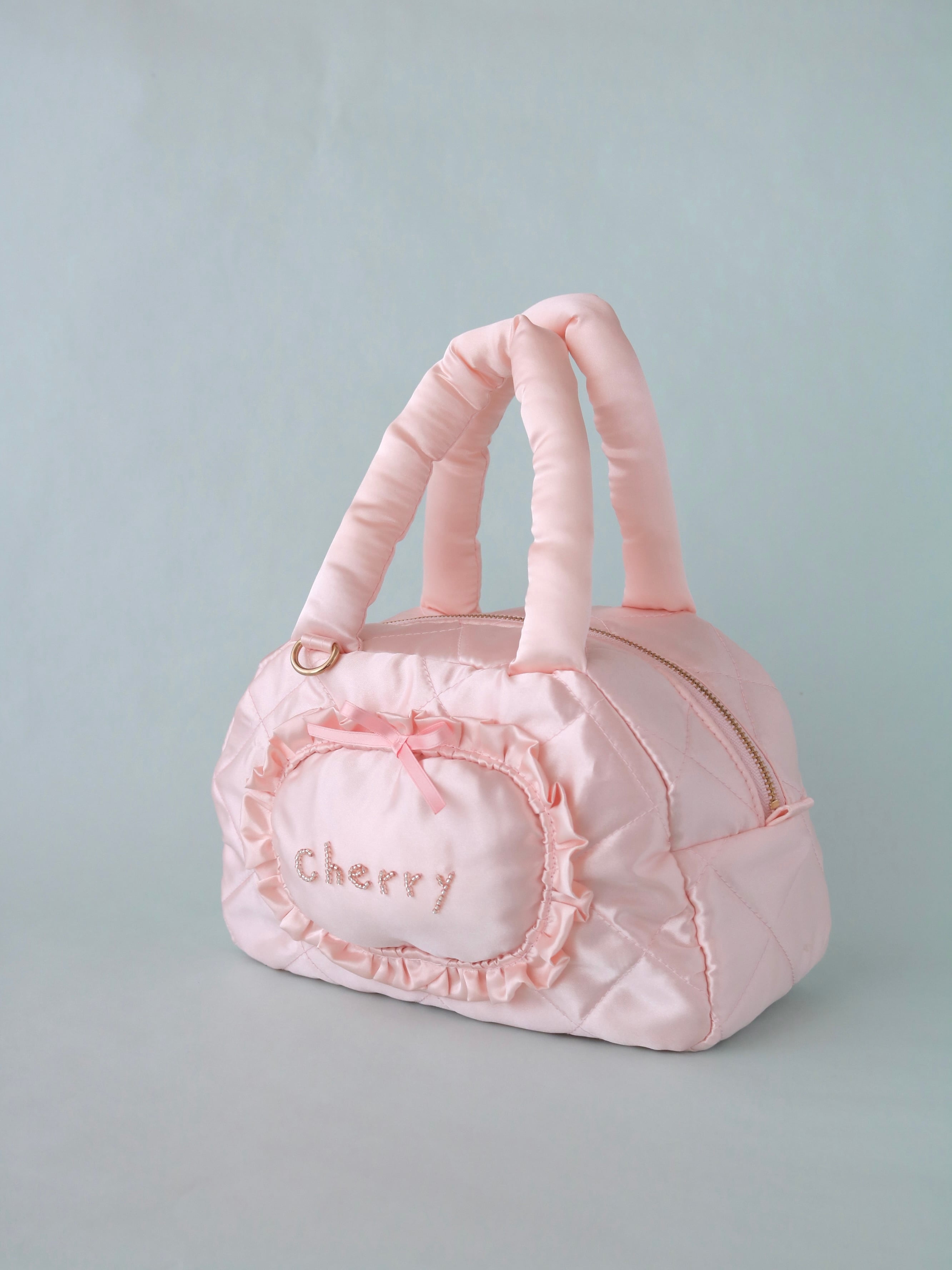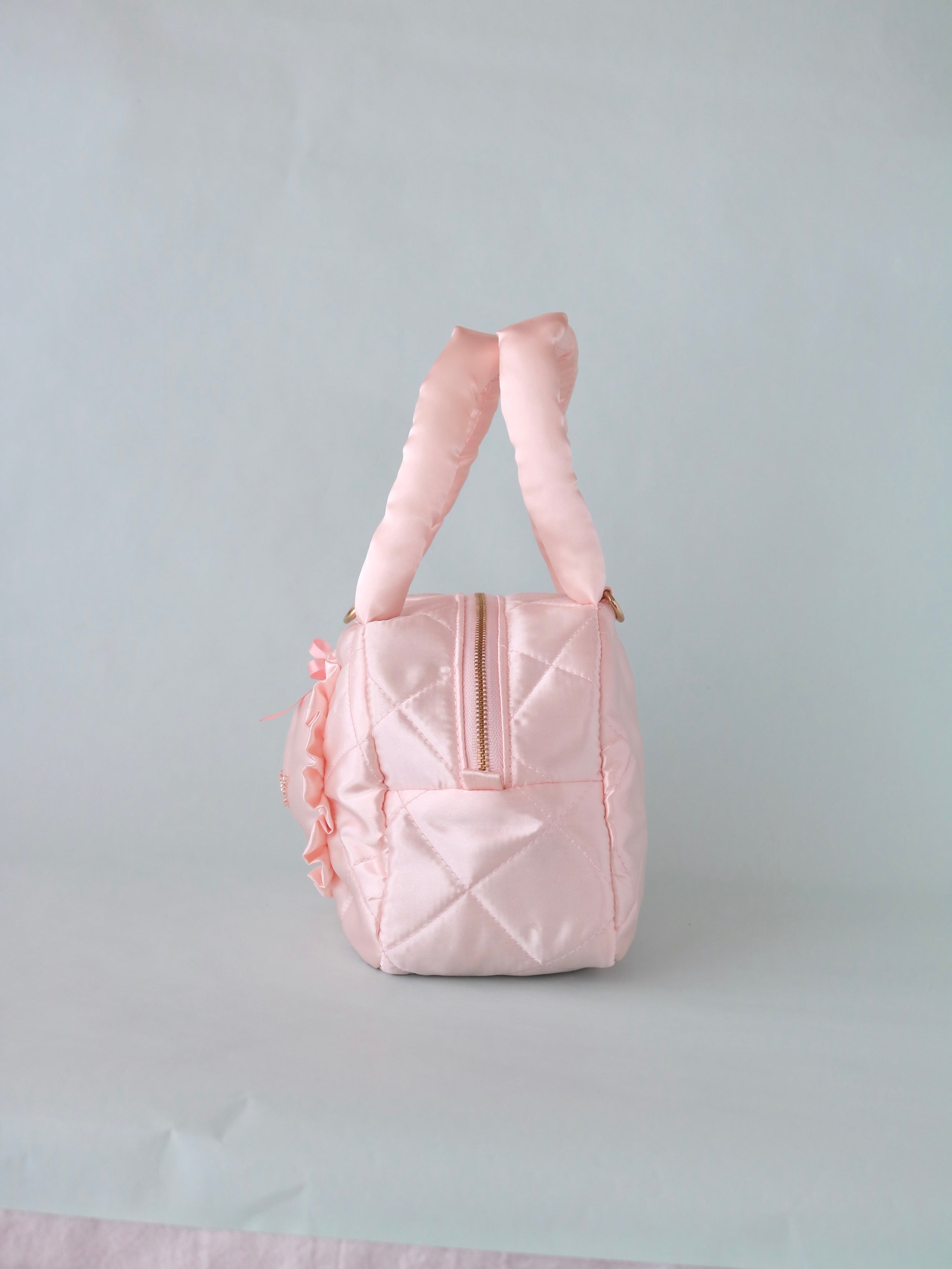 【カスタムオーダー】ビーズ刺繍キルティングボストンバッグ(ピンクサテン)