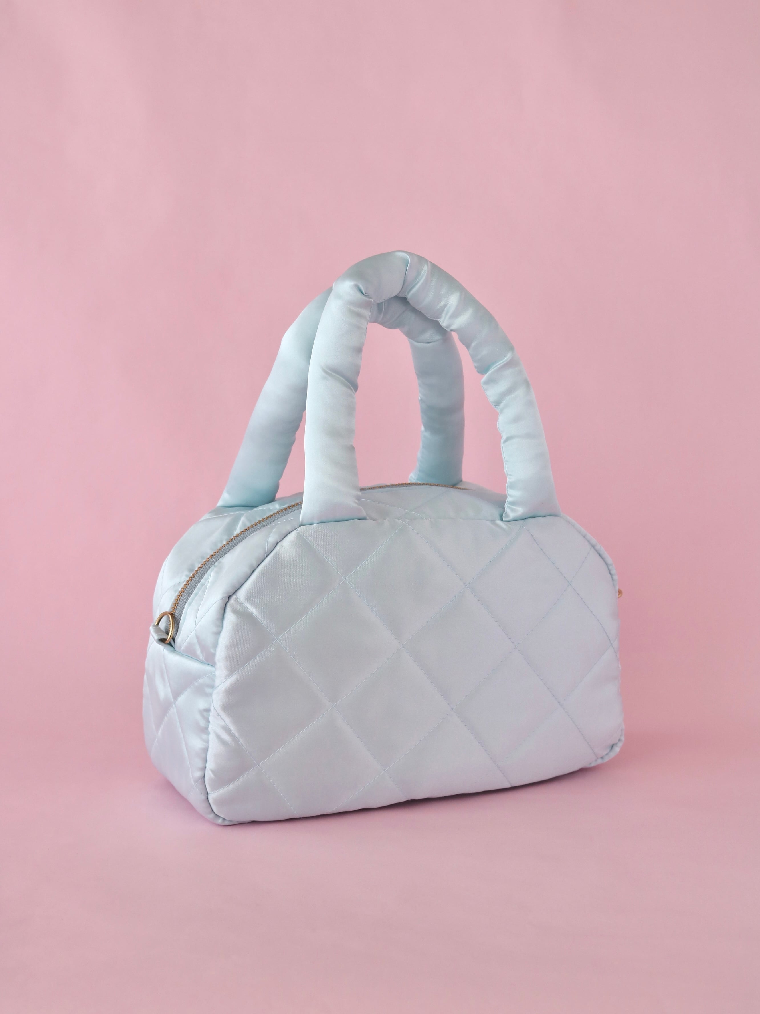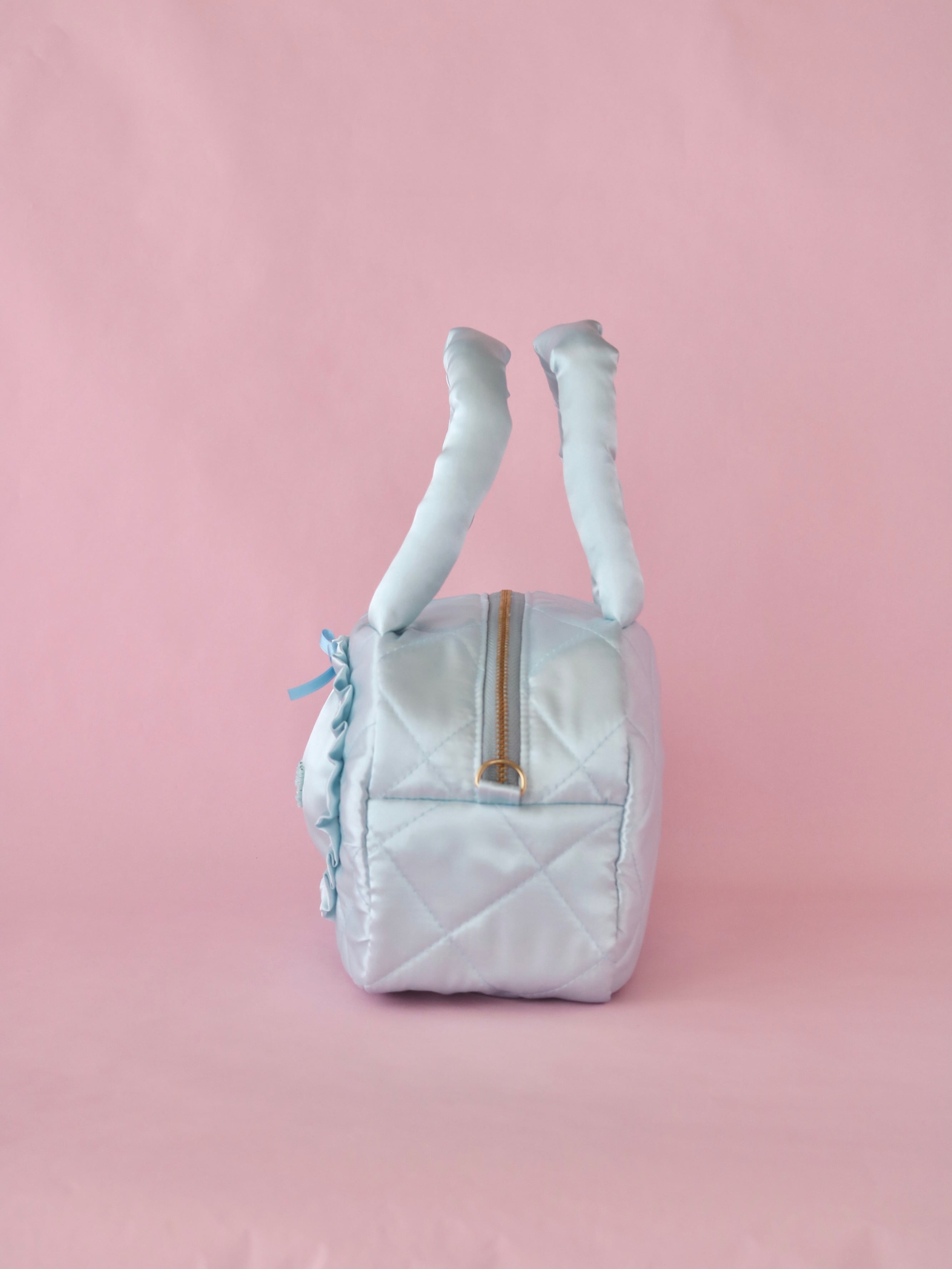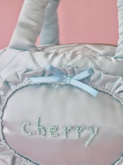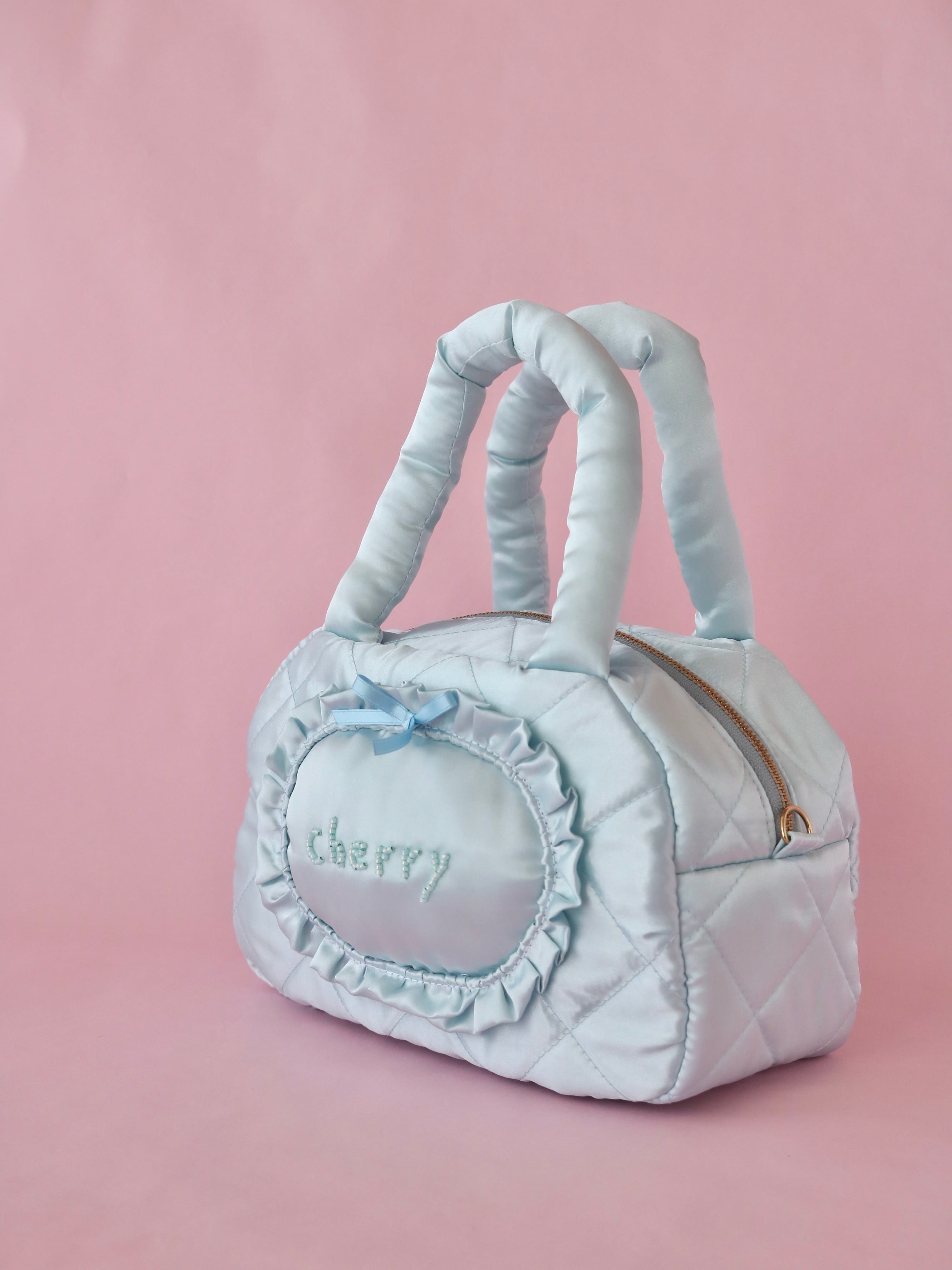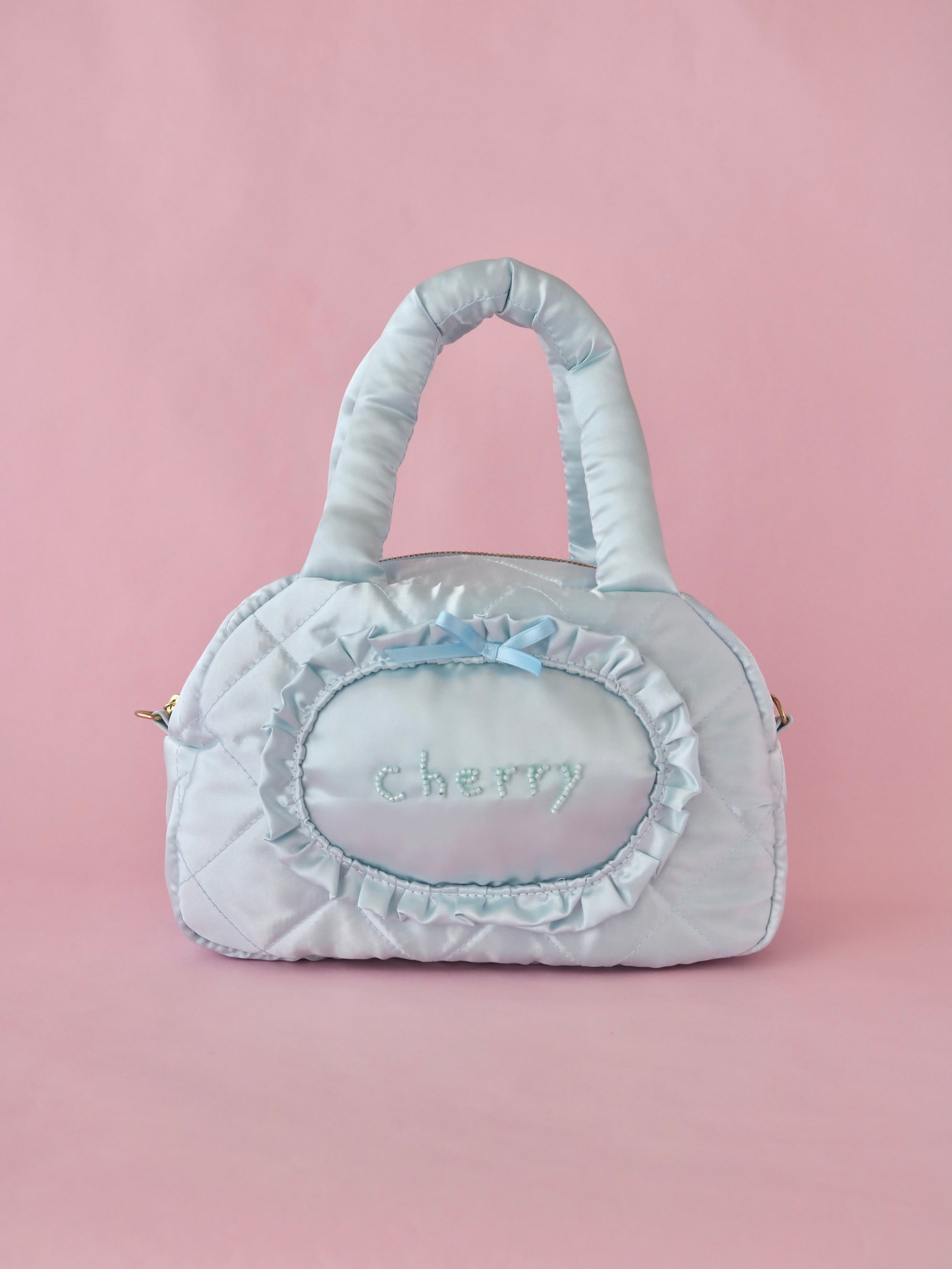 【カスタムオーダー】ビーズ刺繍キルティングボストンバッグ(水色サテン)