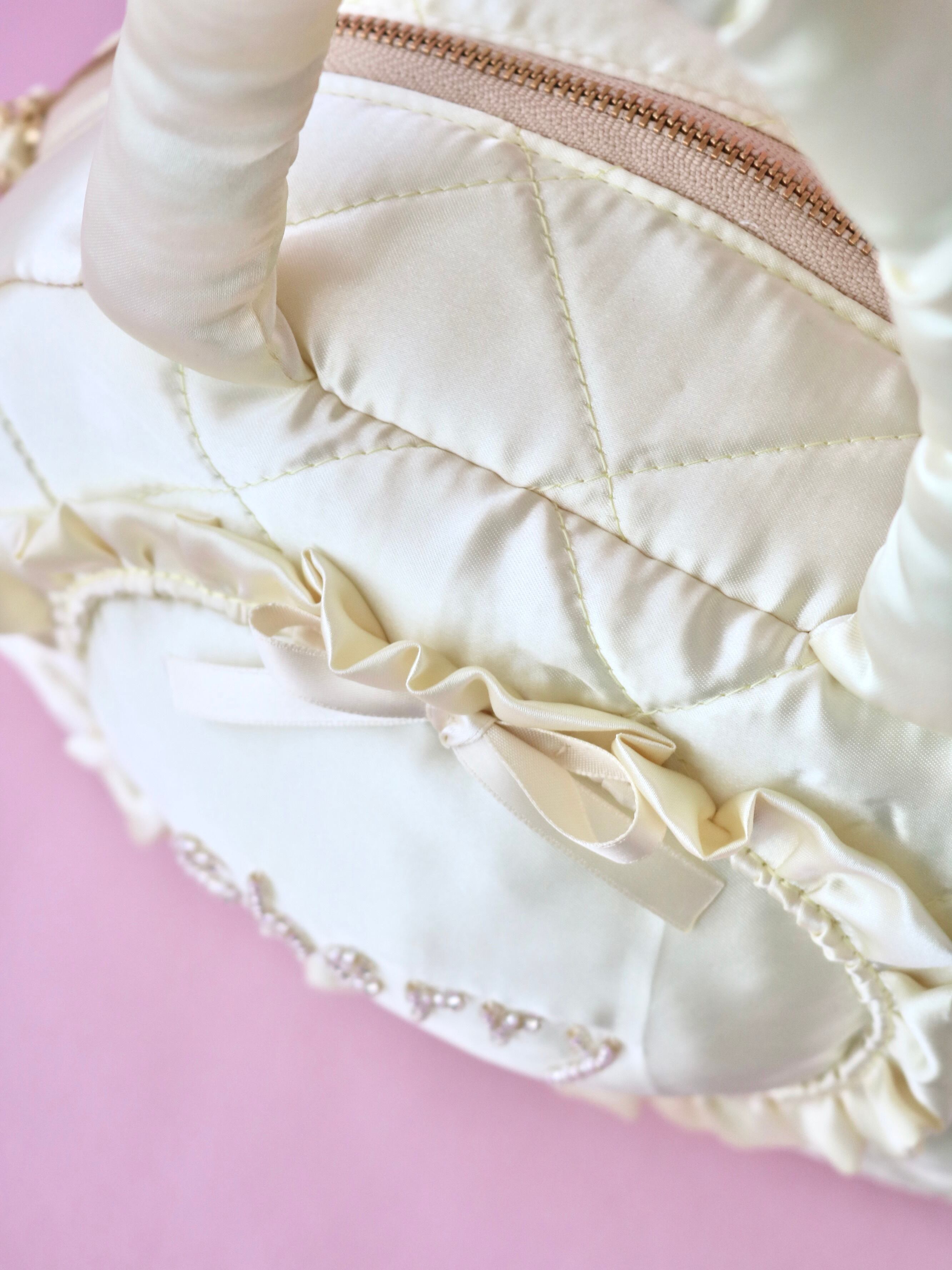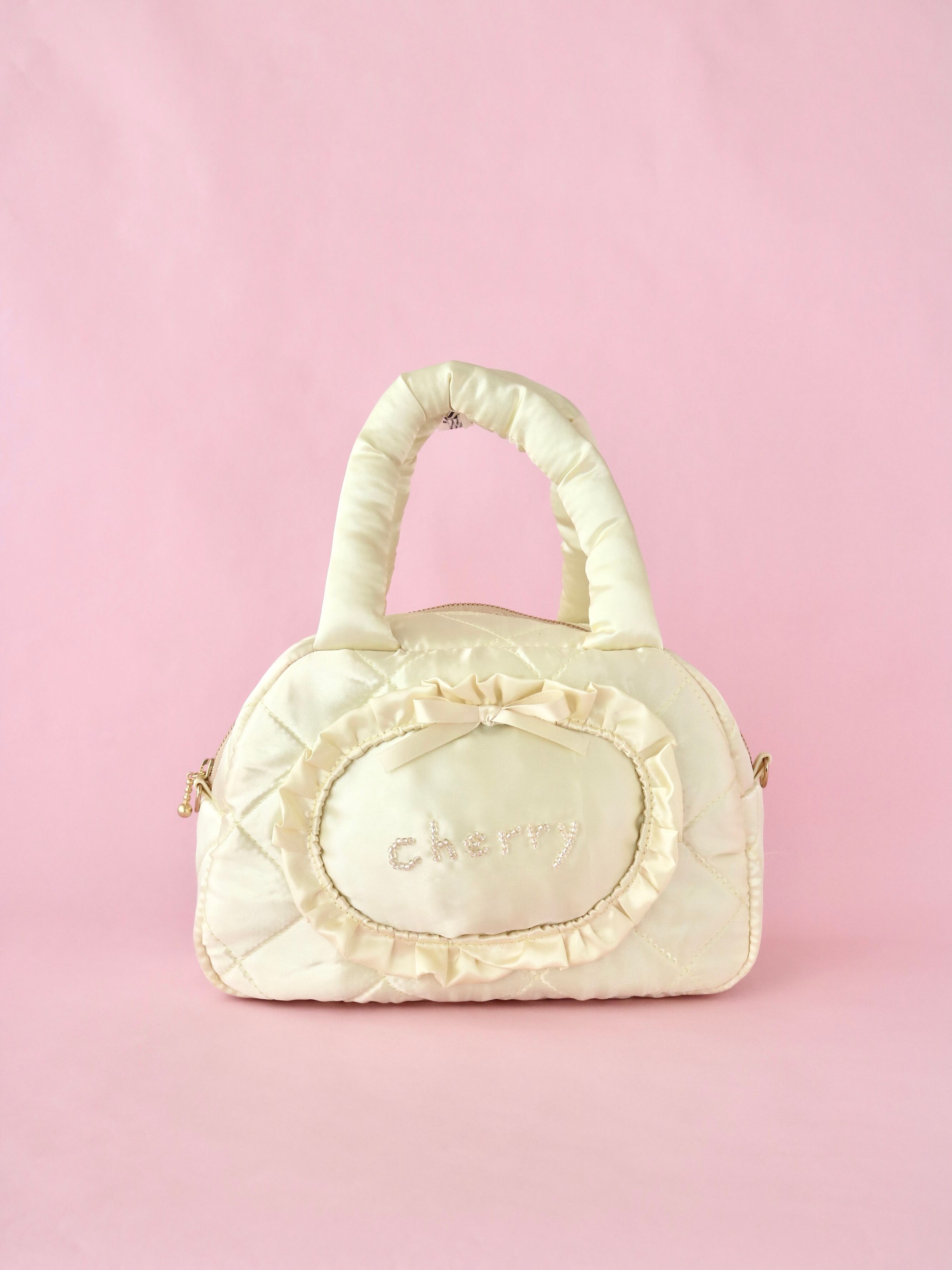 ビーズ刺繍キルティングボストンバッグ(黄色サテン)