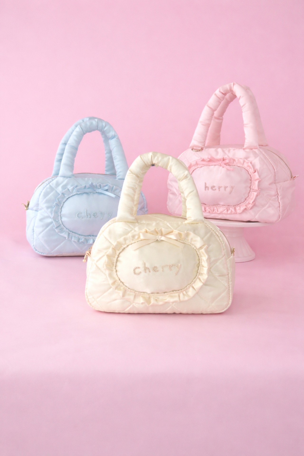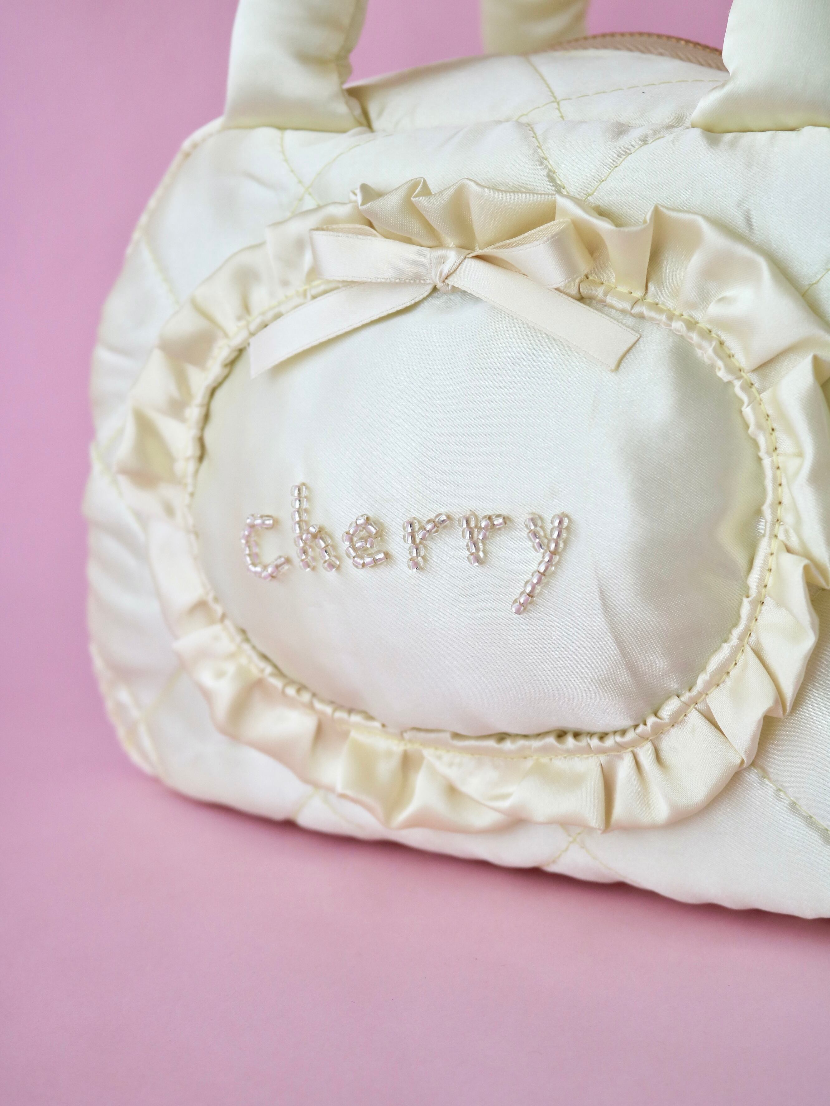 minette / ミネット刺繍 / ペンケース / キルティングポーチ / 刺繍ポーチ / ベビーカラー / ハンドメイド / ガーリー雑貨 / 新生活アイテム / プレゼントにおすすめ