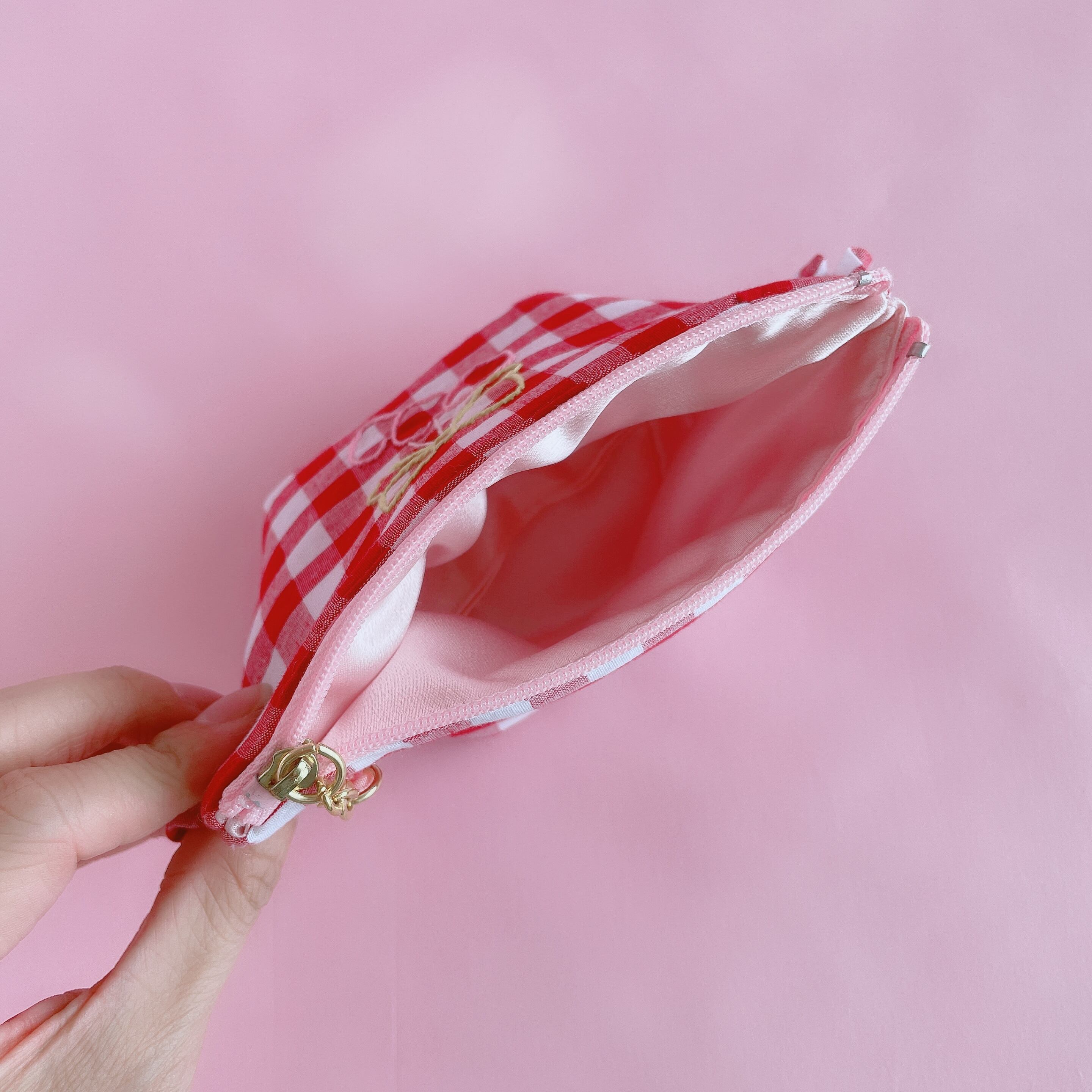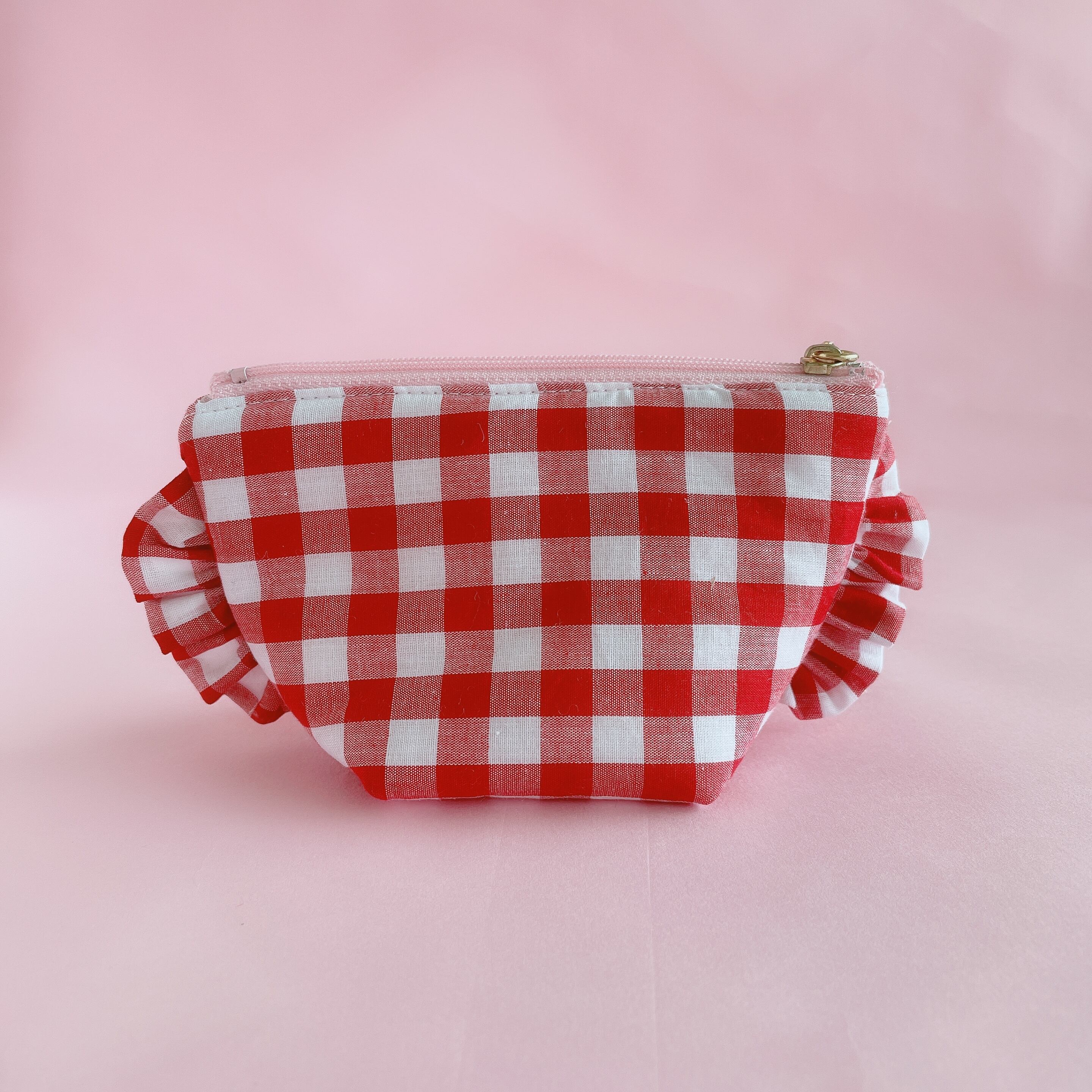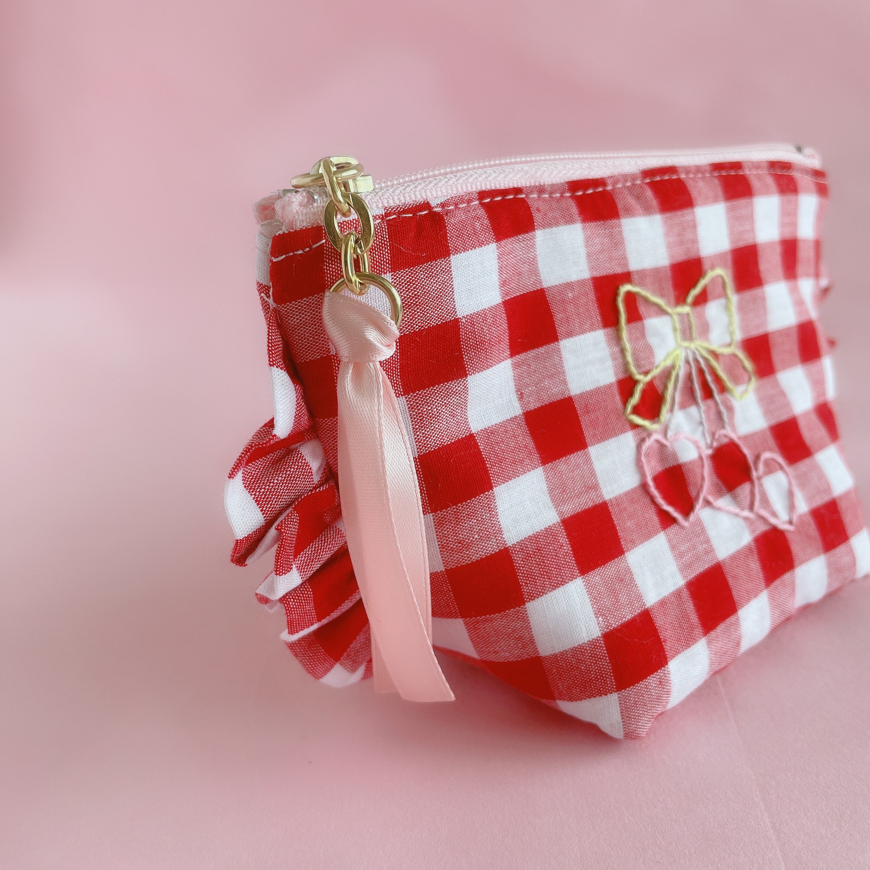 底マチ付きポーチ小(ギンガムチェック/赤)