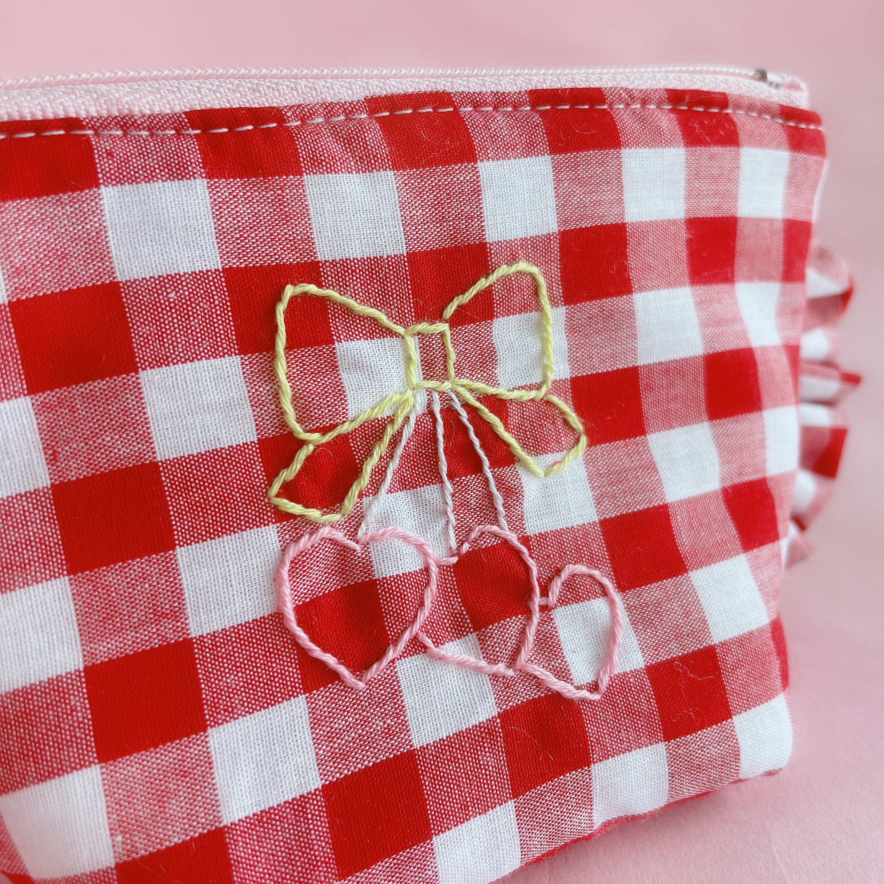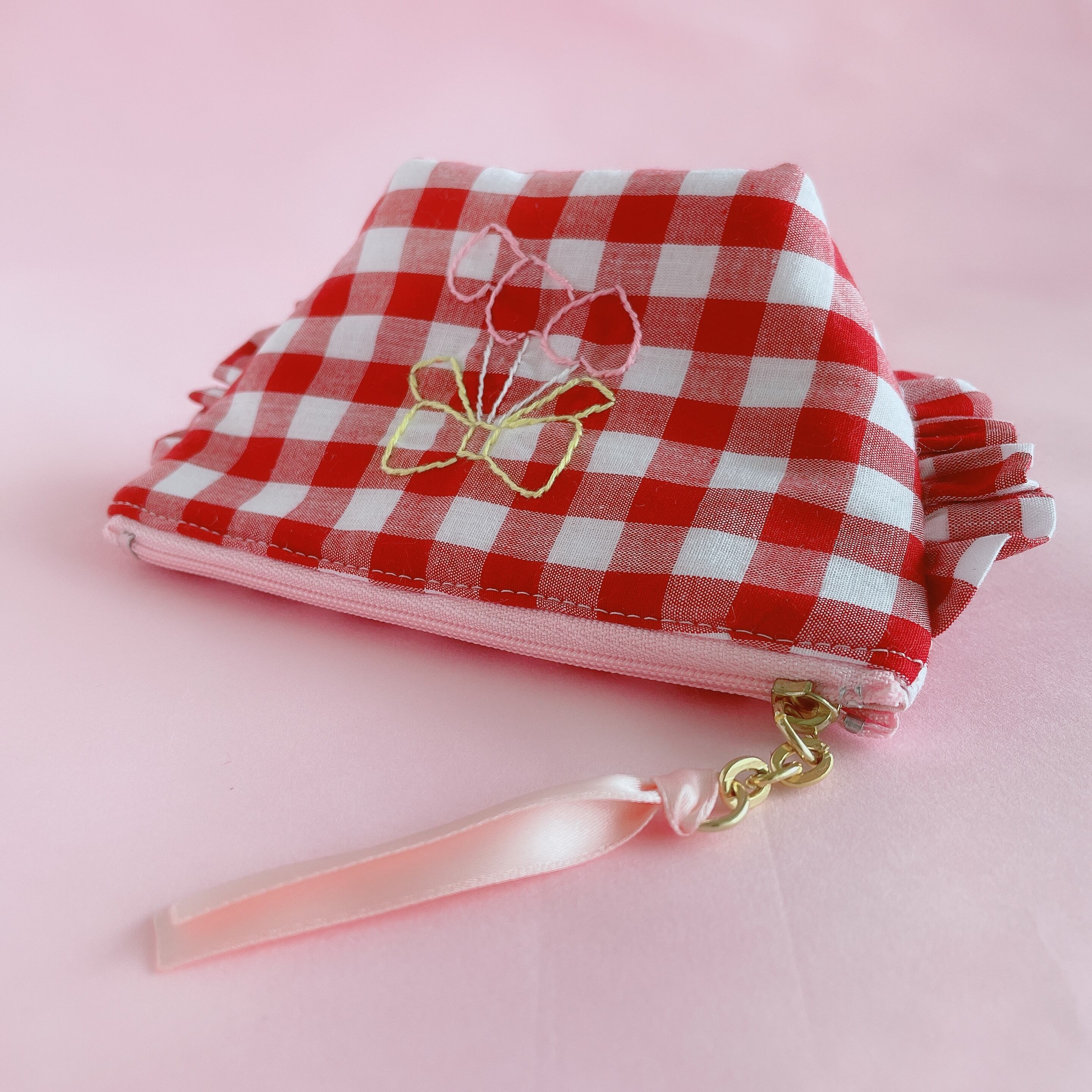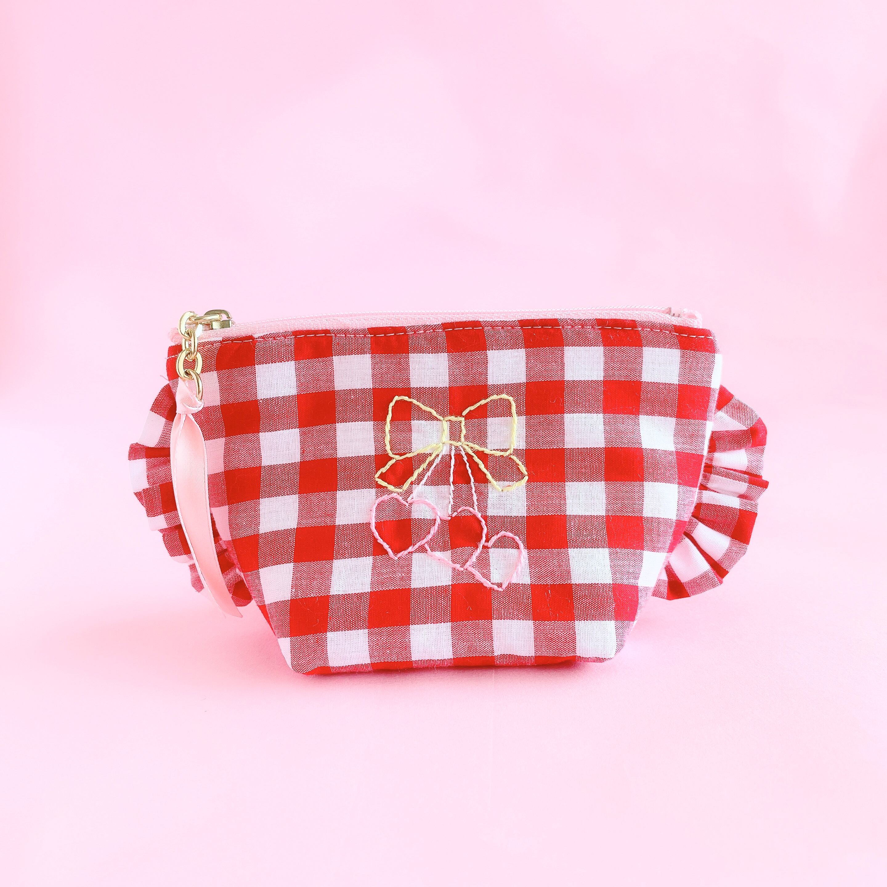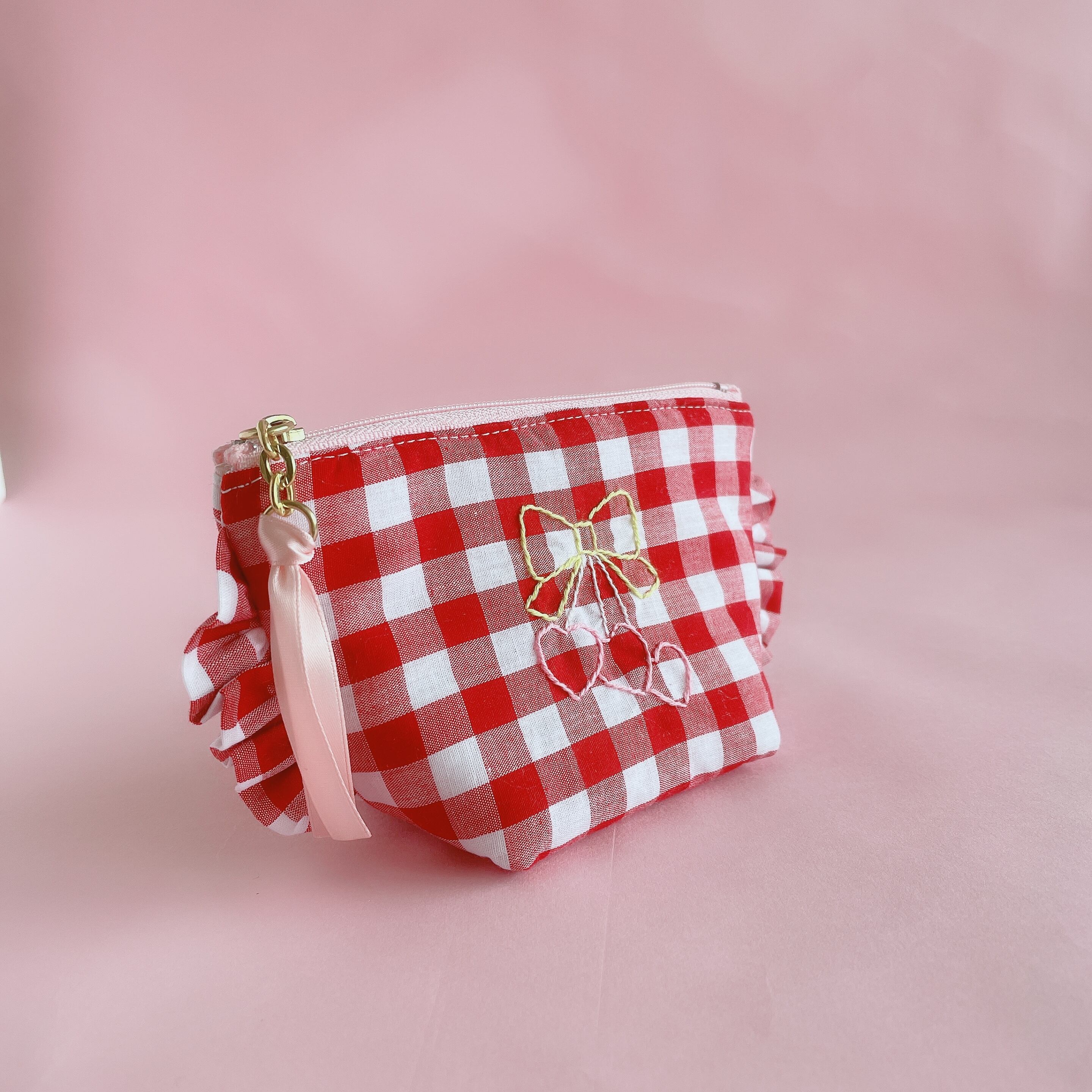 底マチ付きポーチ小(ギンガムチェック/赤)