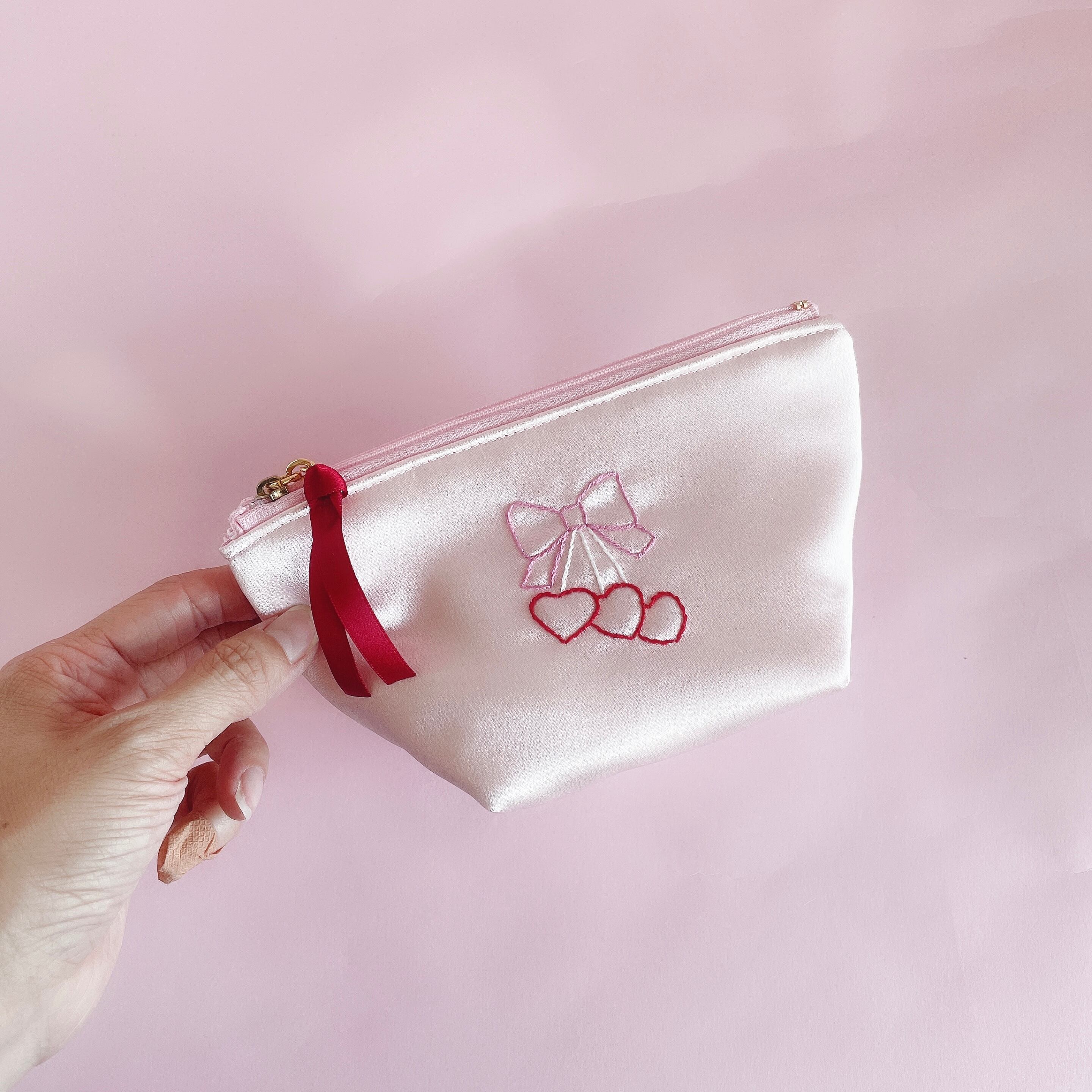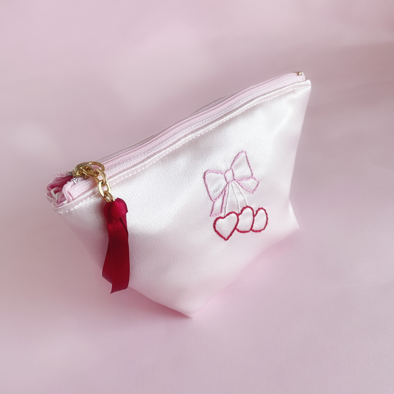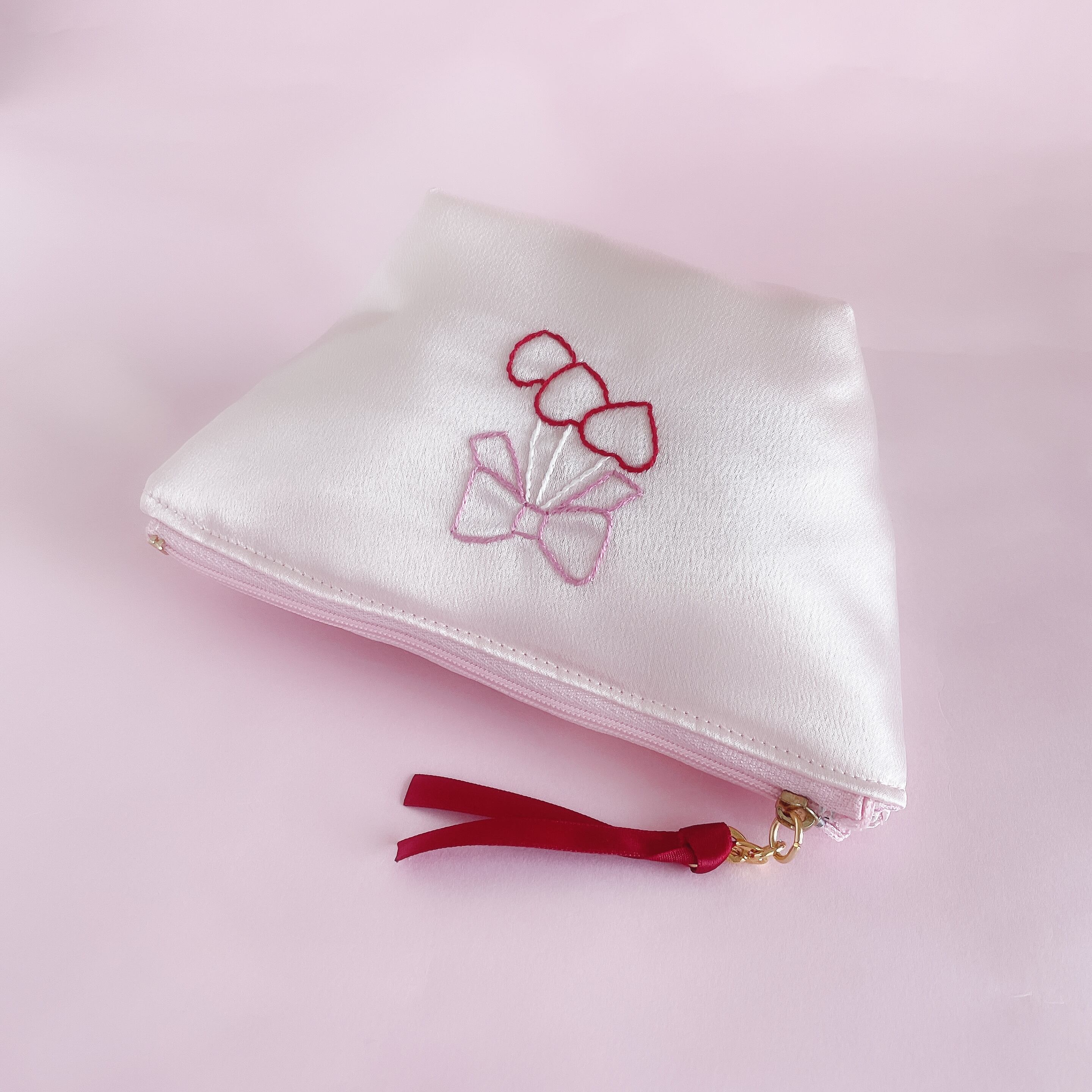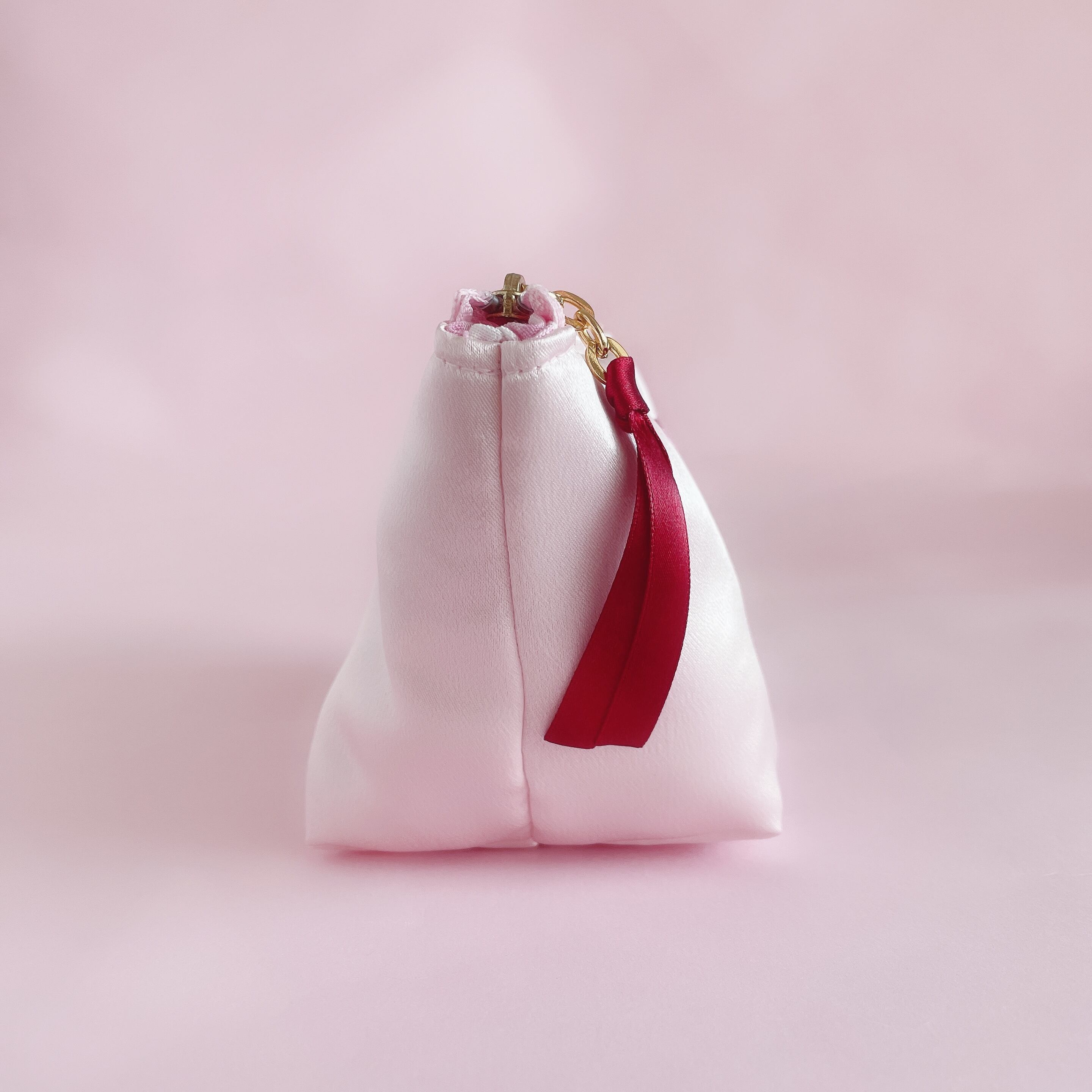 底マチ付きポーチ大(サテン/ピンク)