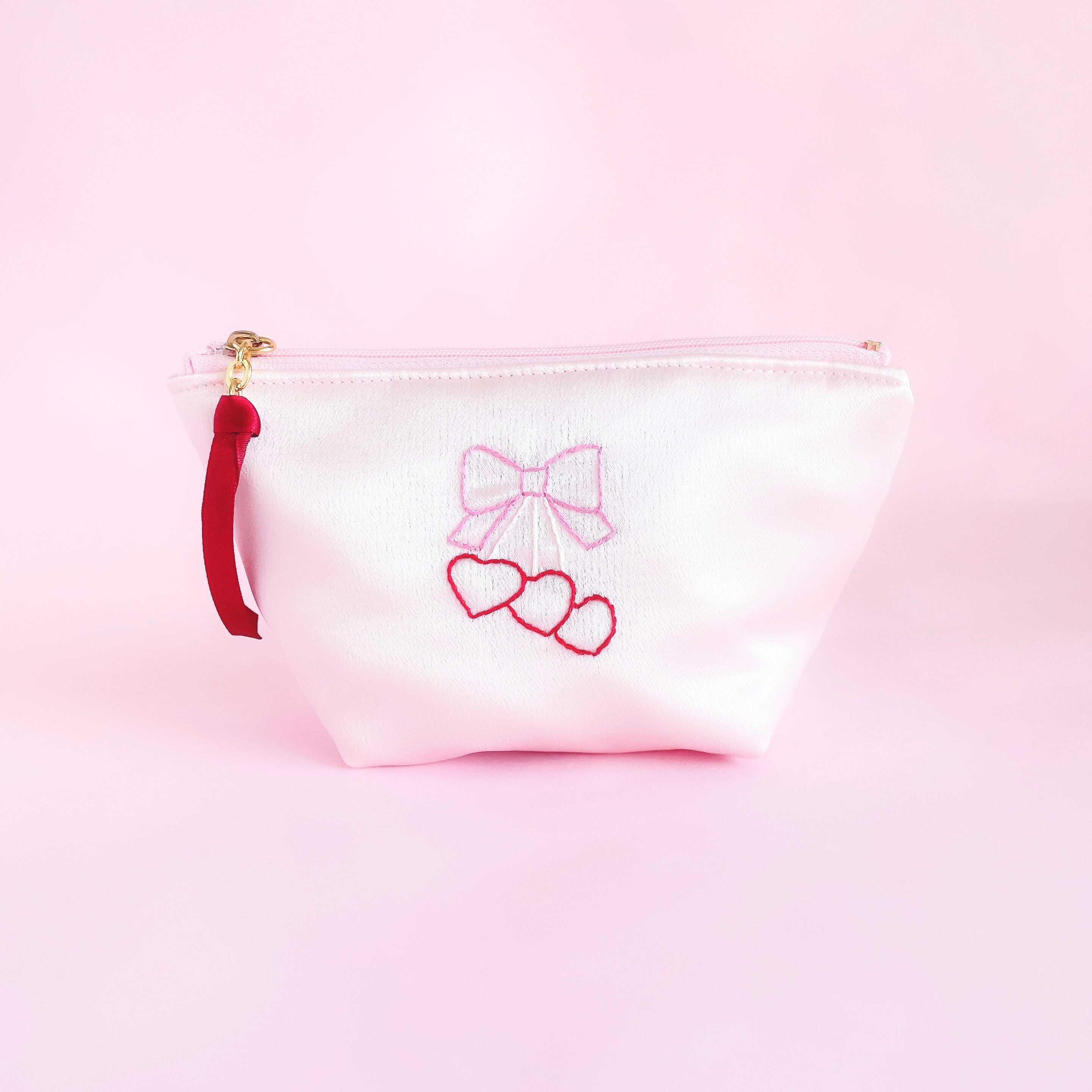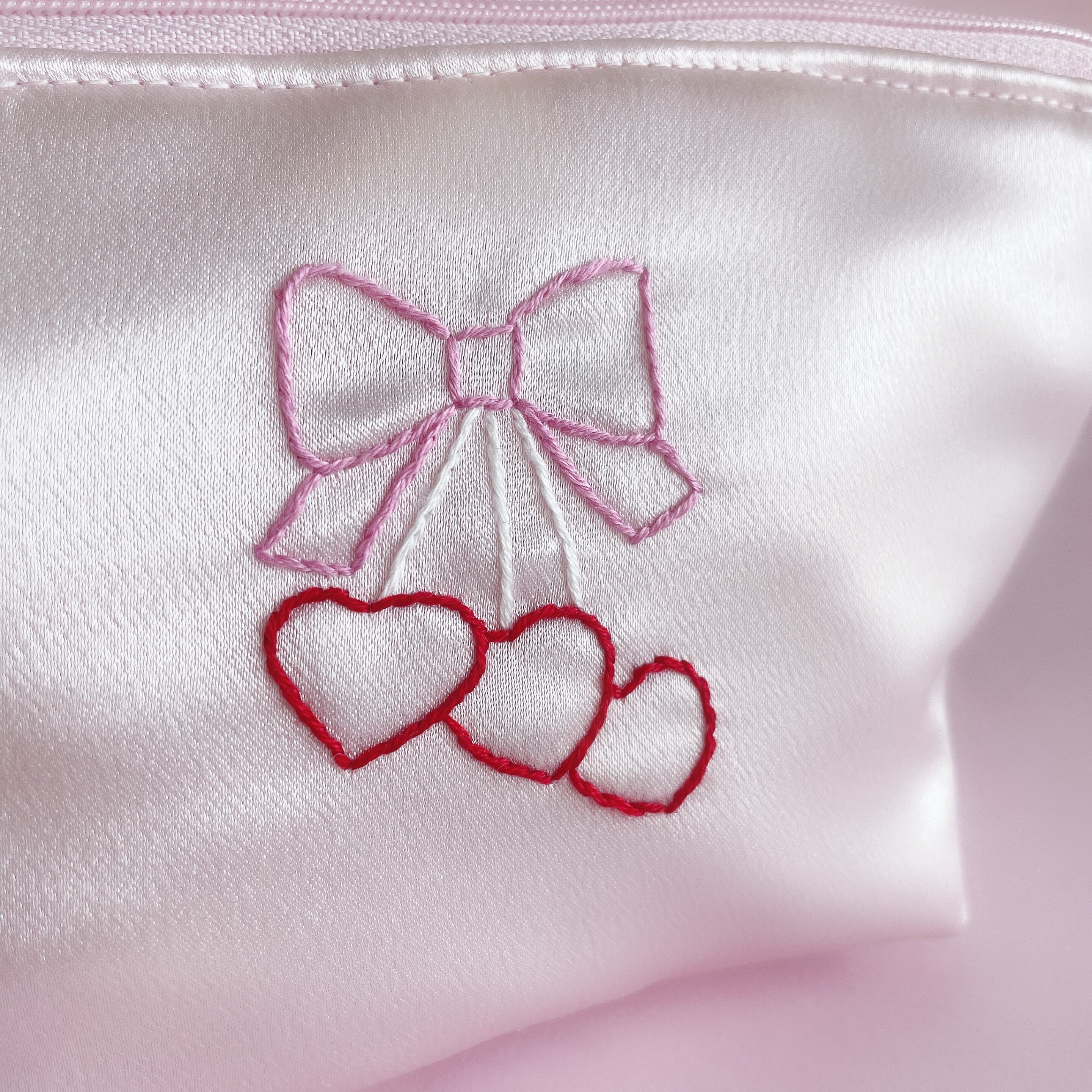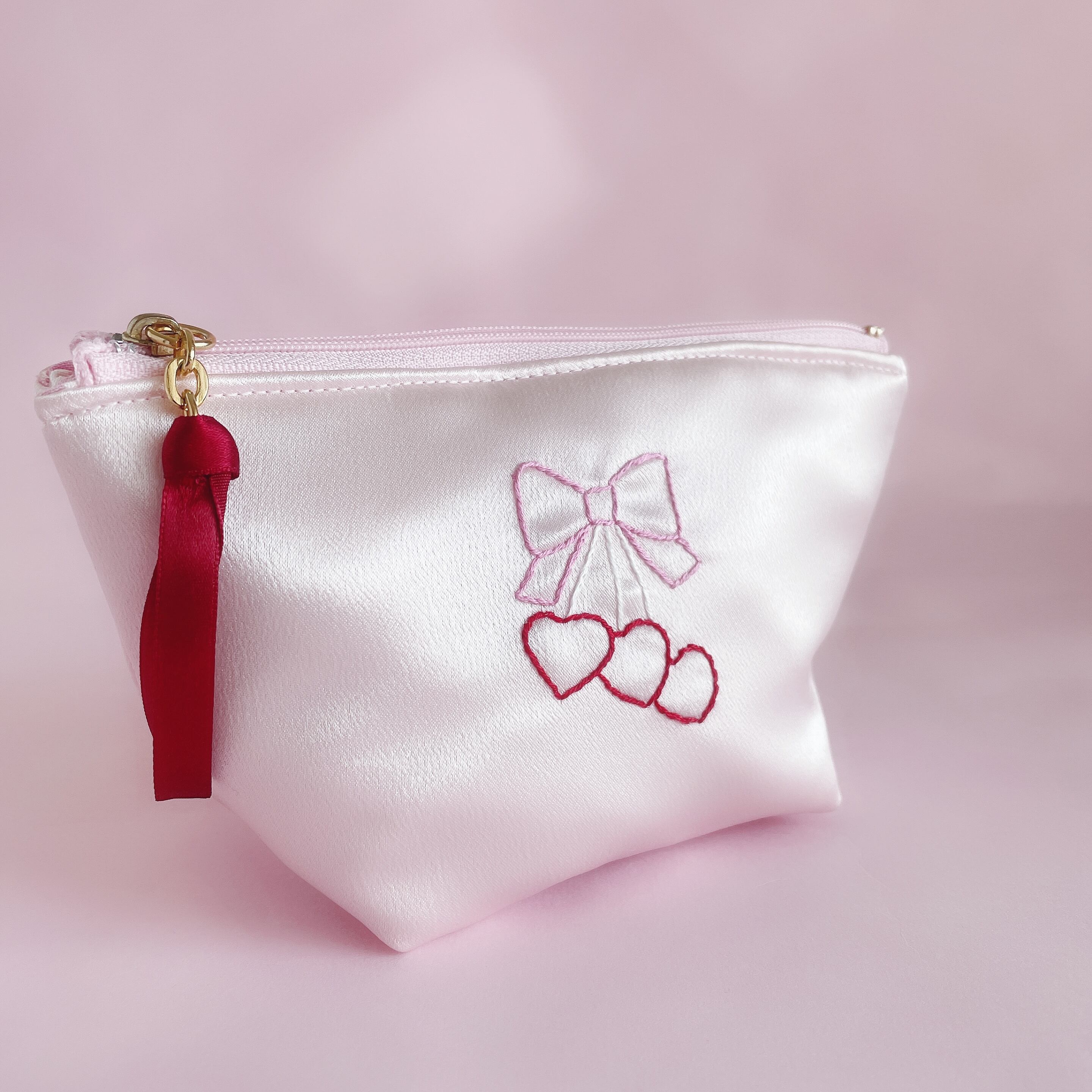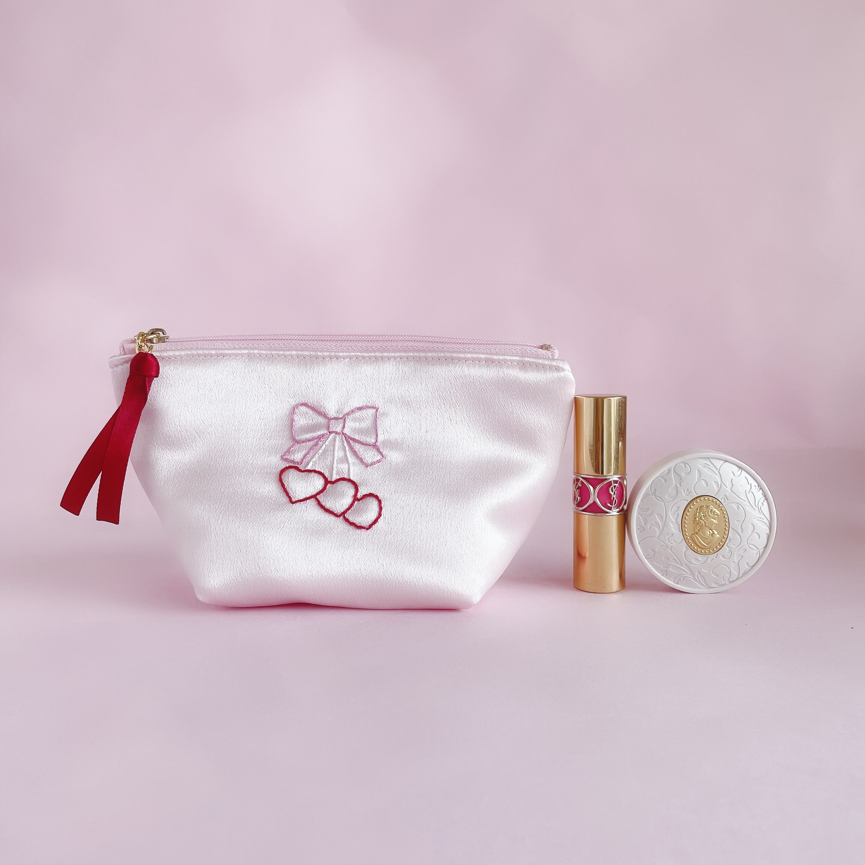 底マチ付きポーチ大(サテン/ピンク)