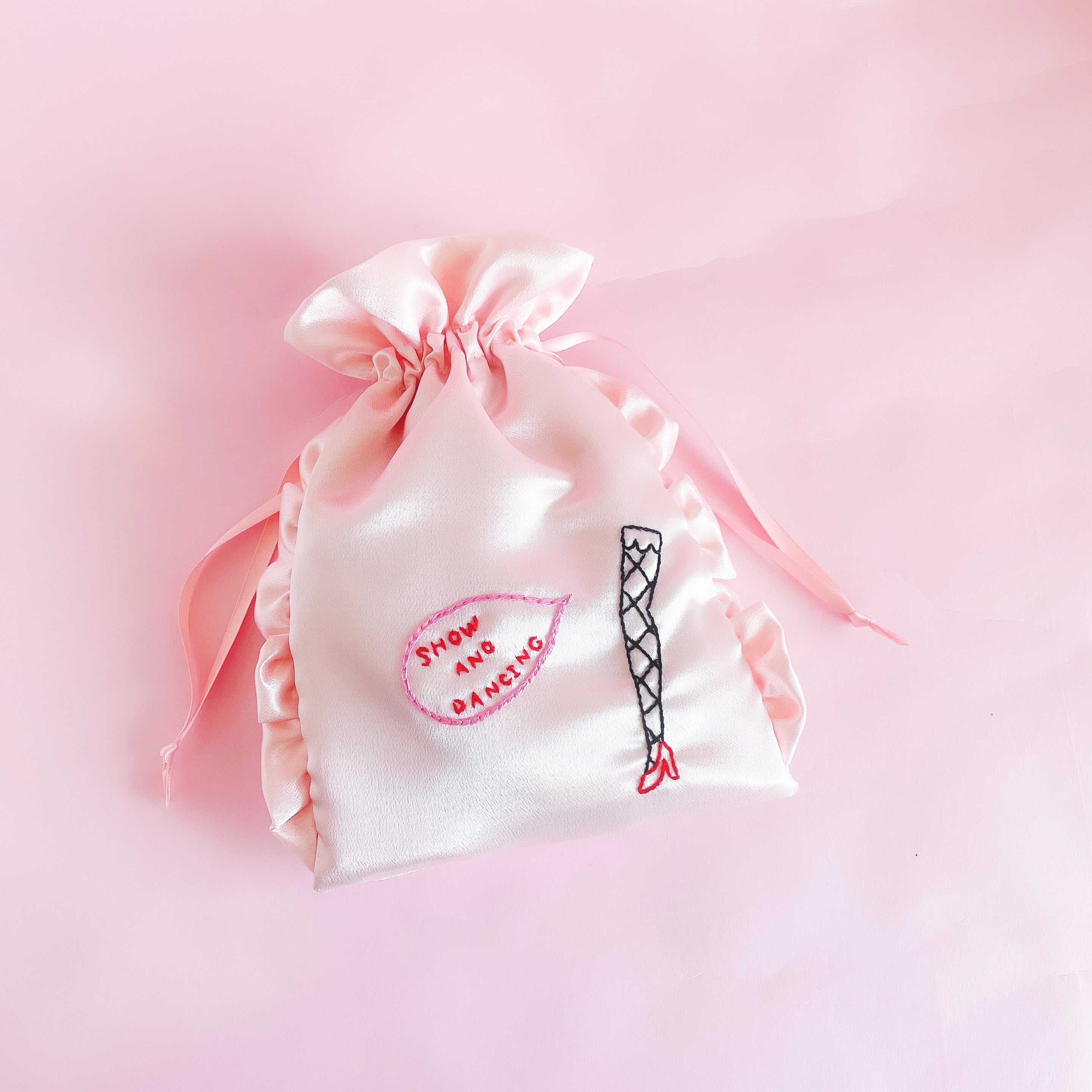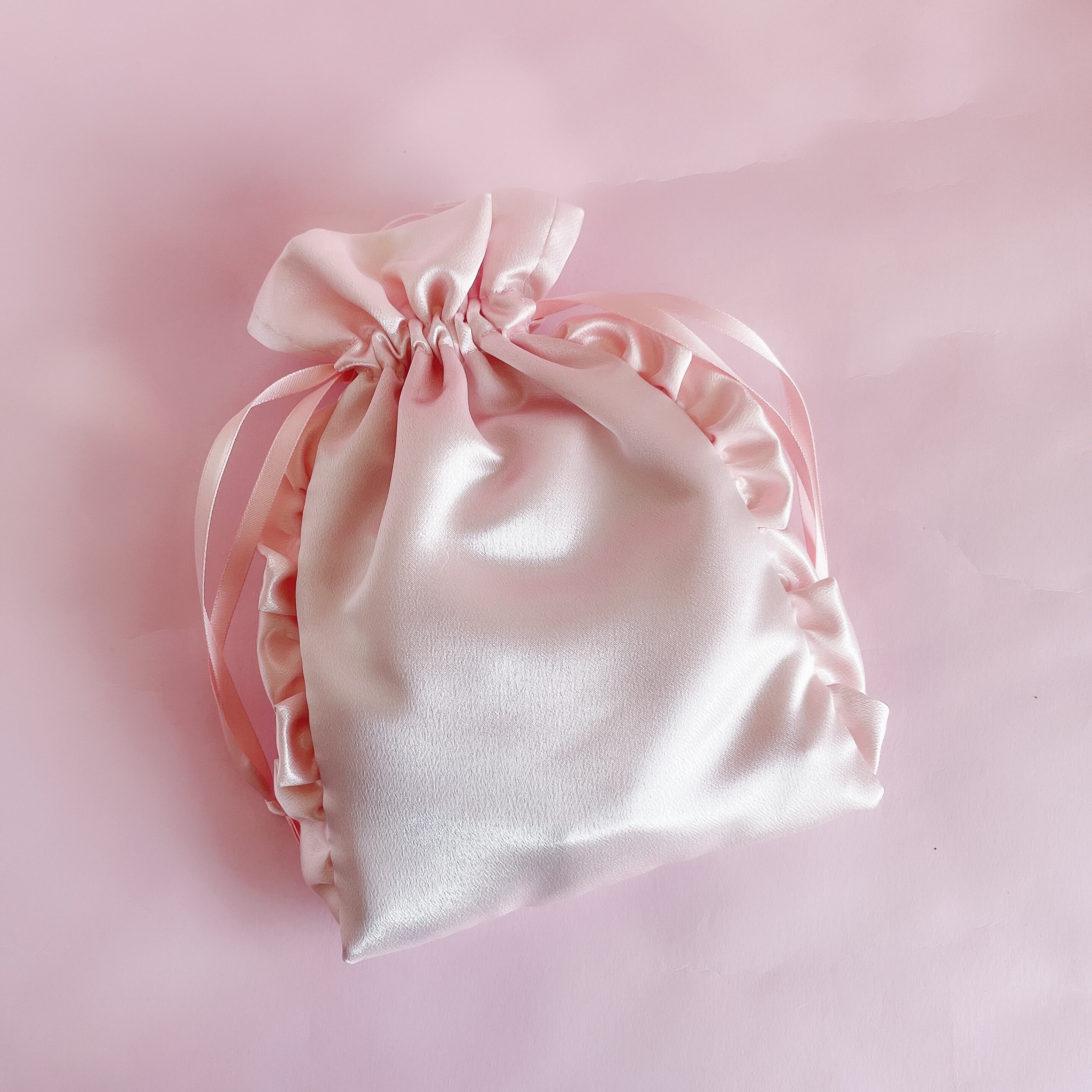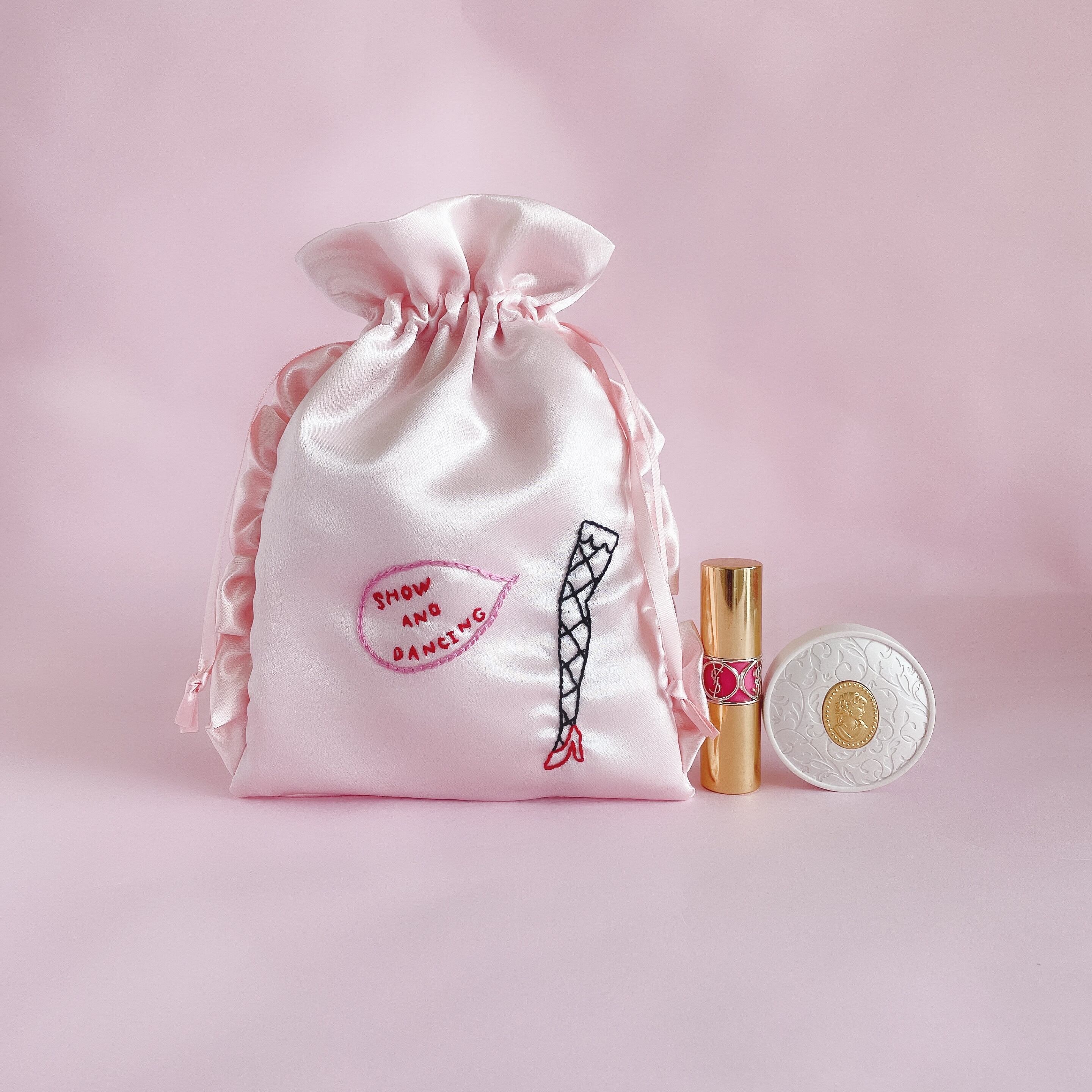 普段使いもできて旅行にも持っていけるちょうどいいサイズの巾着ポーチです。