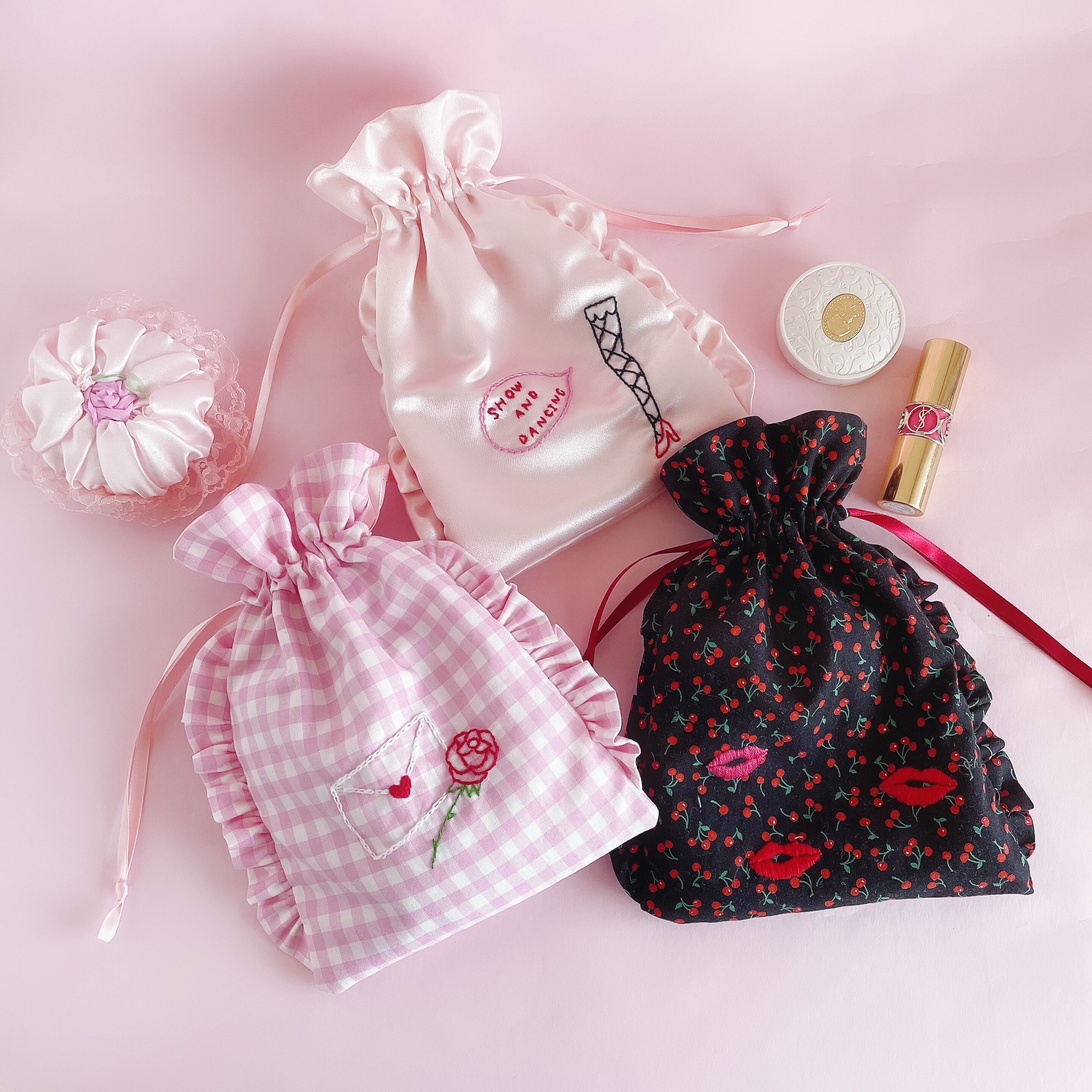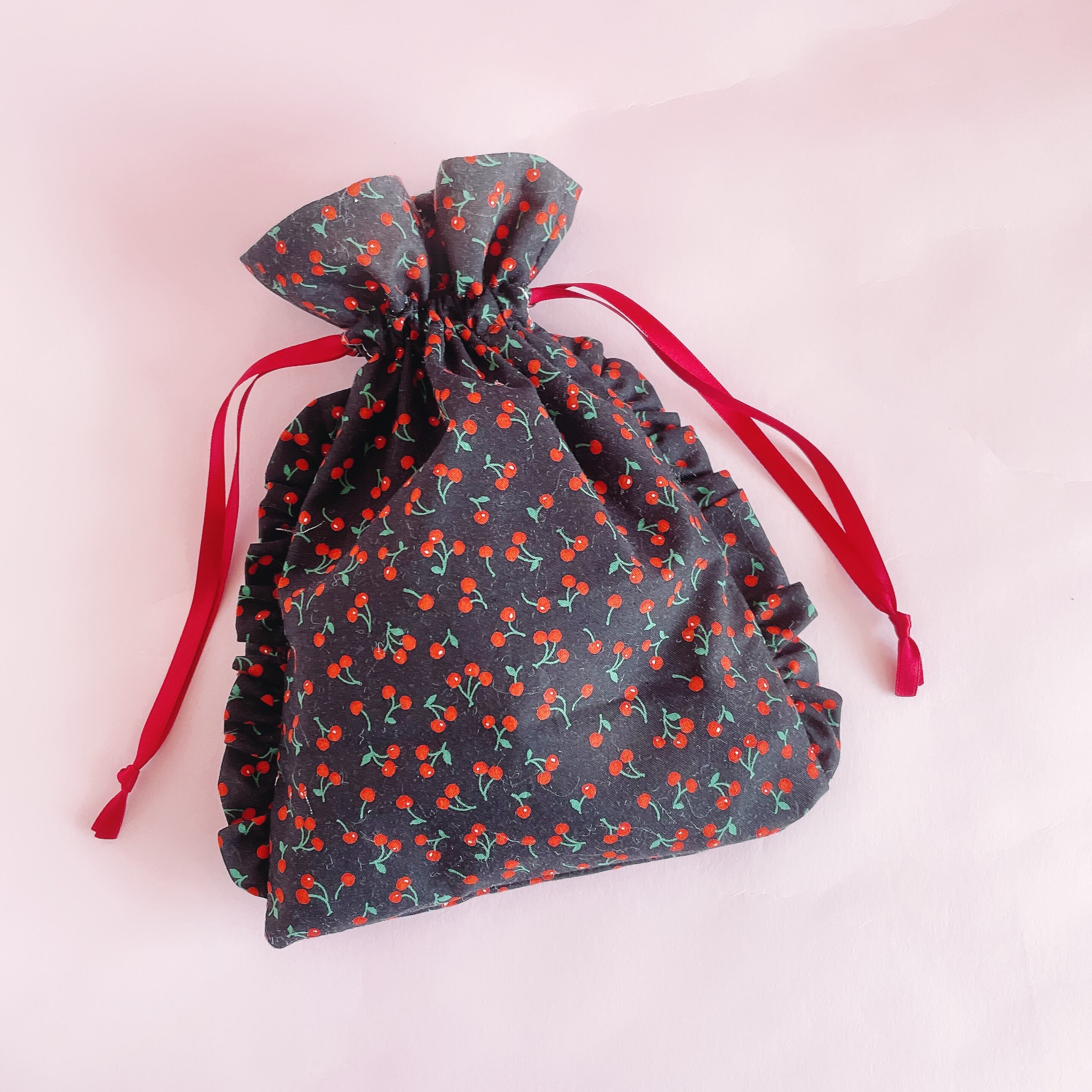 巾着ポーチ(さくらんぼ)