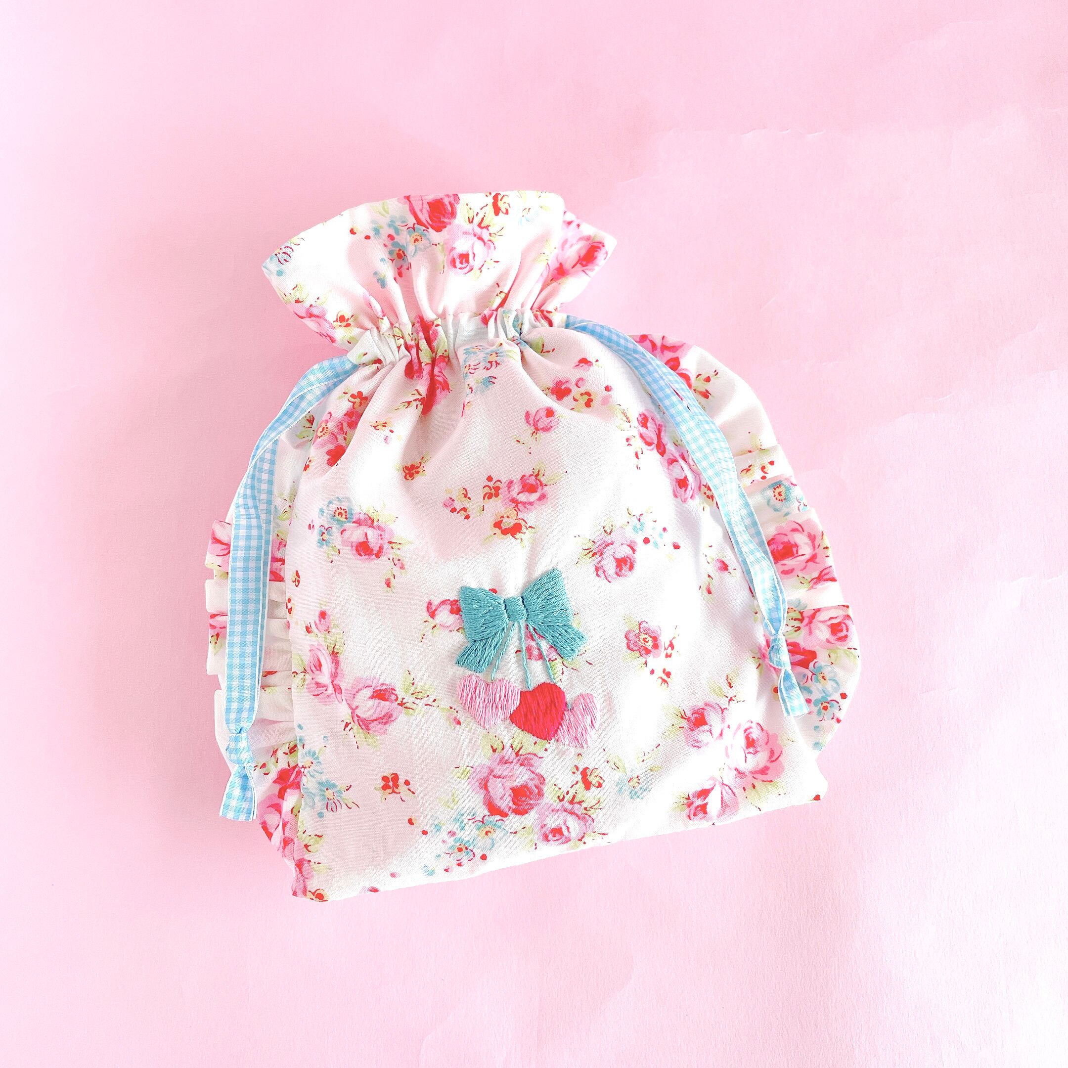 巾着ポーチ(花柄)
