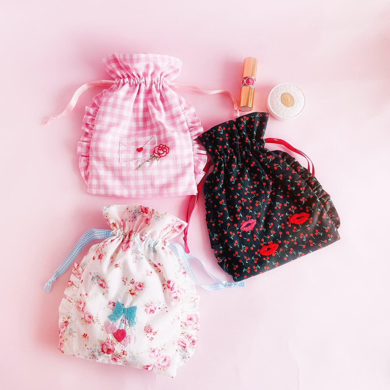 普段使いもできて旅行にも持っていけるちょうどいいサイズの巾着ポーチです。