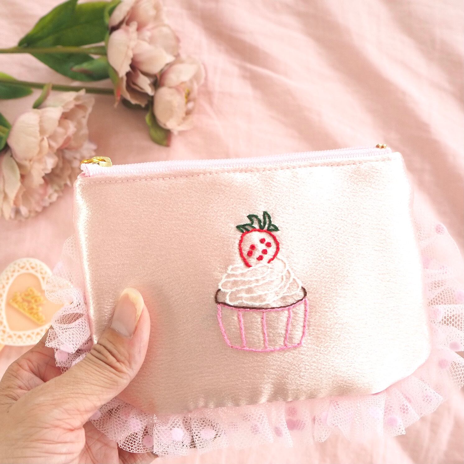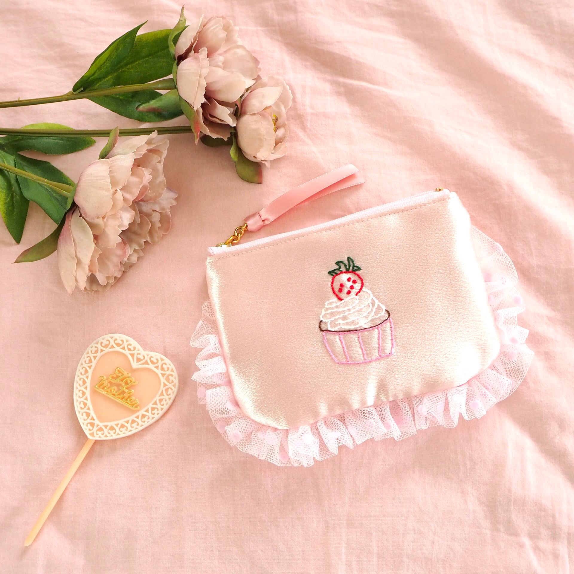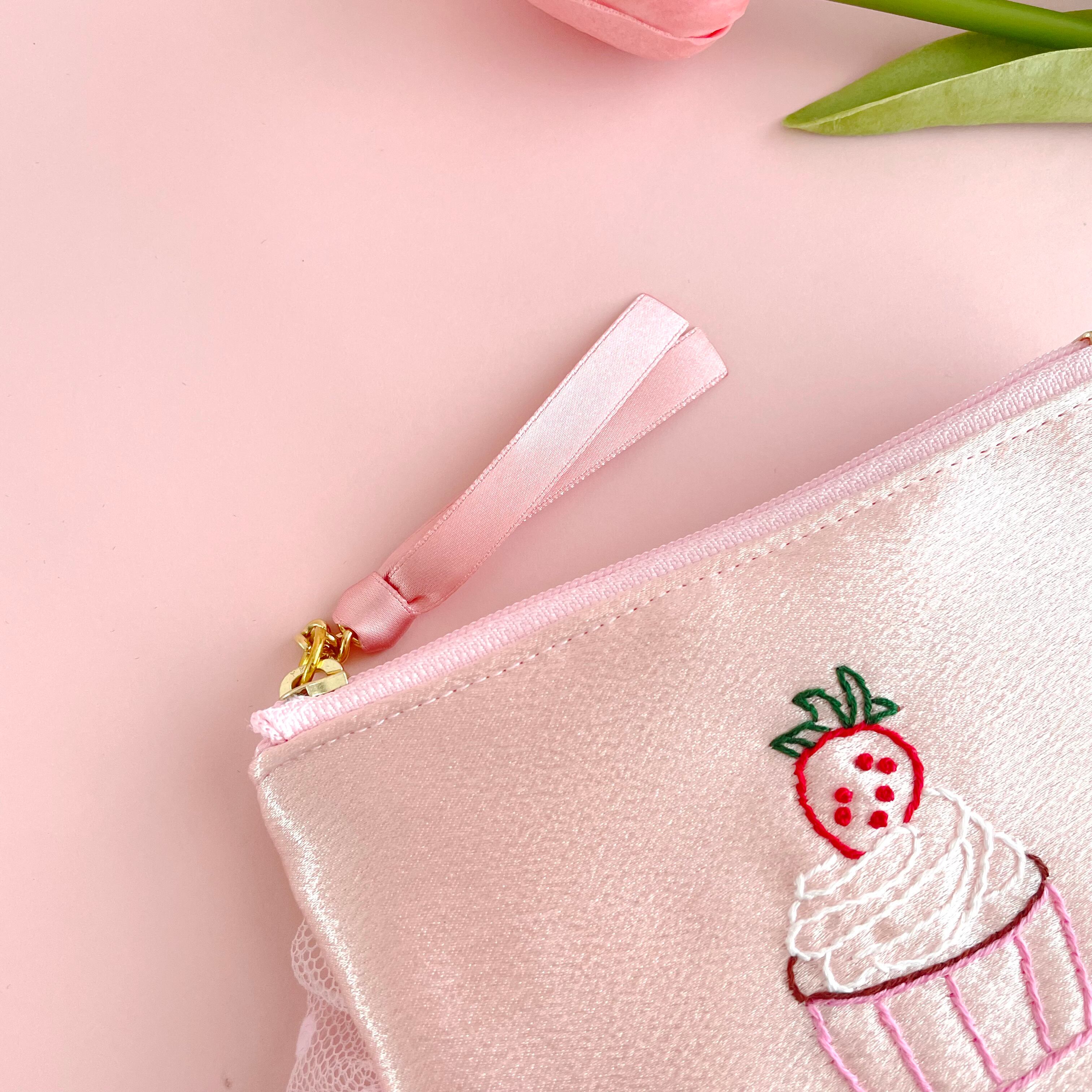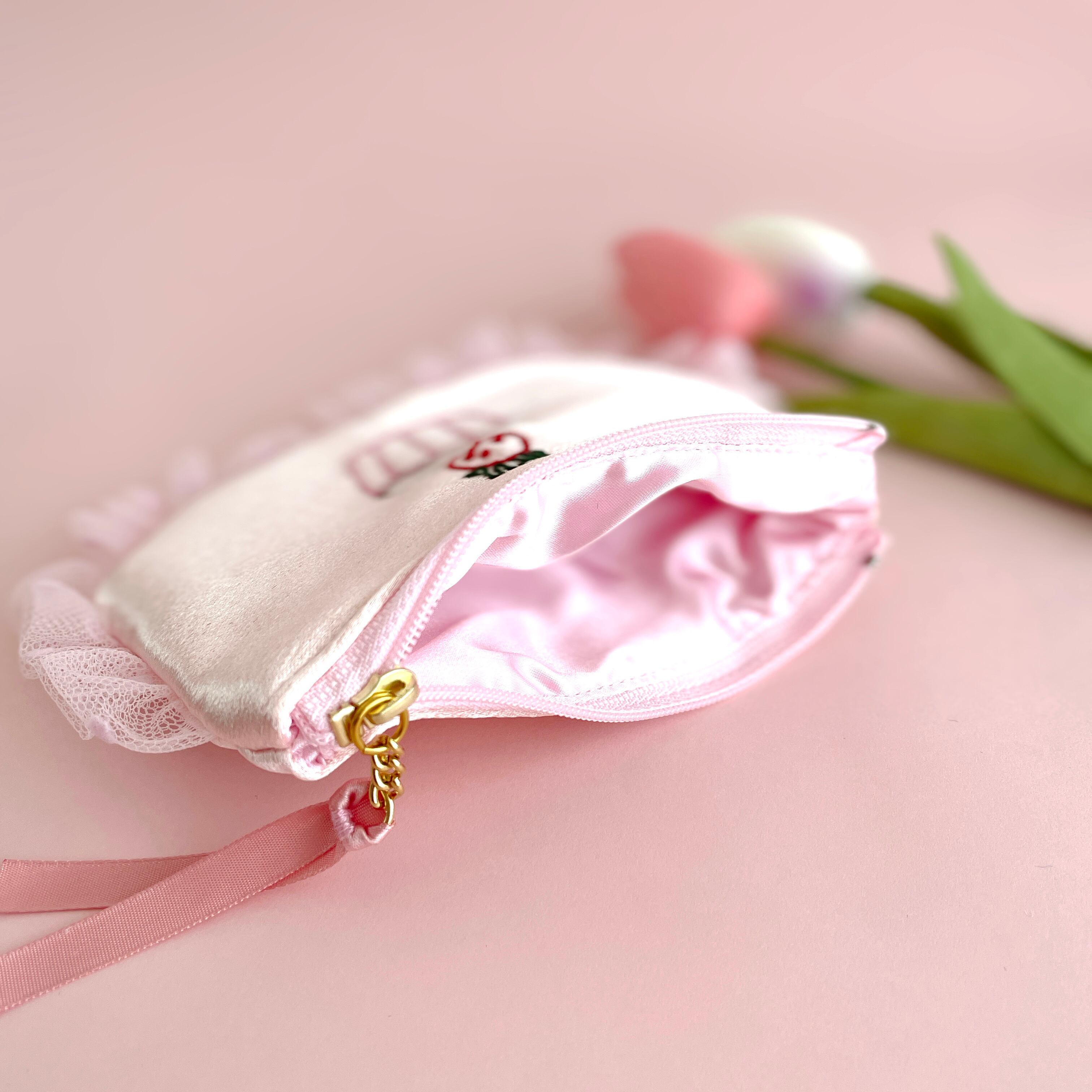 ぺたんこポーチ小(サテンピンク)