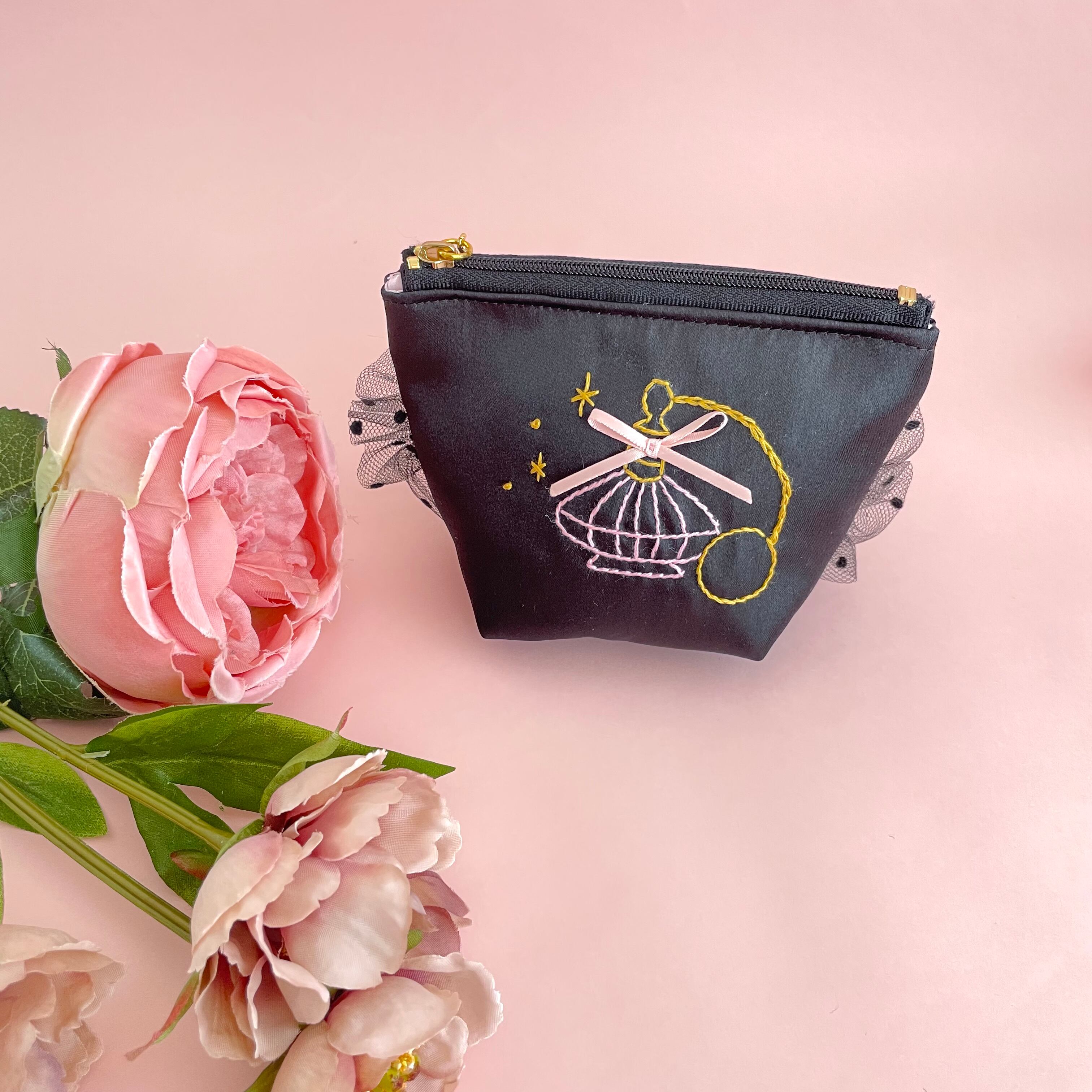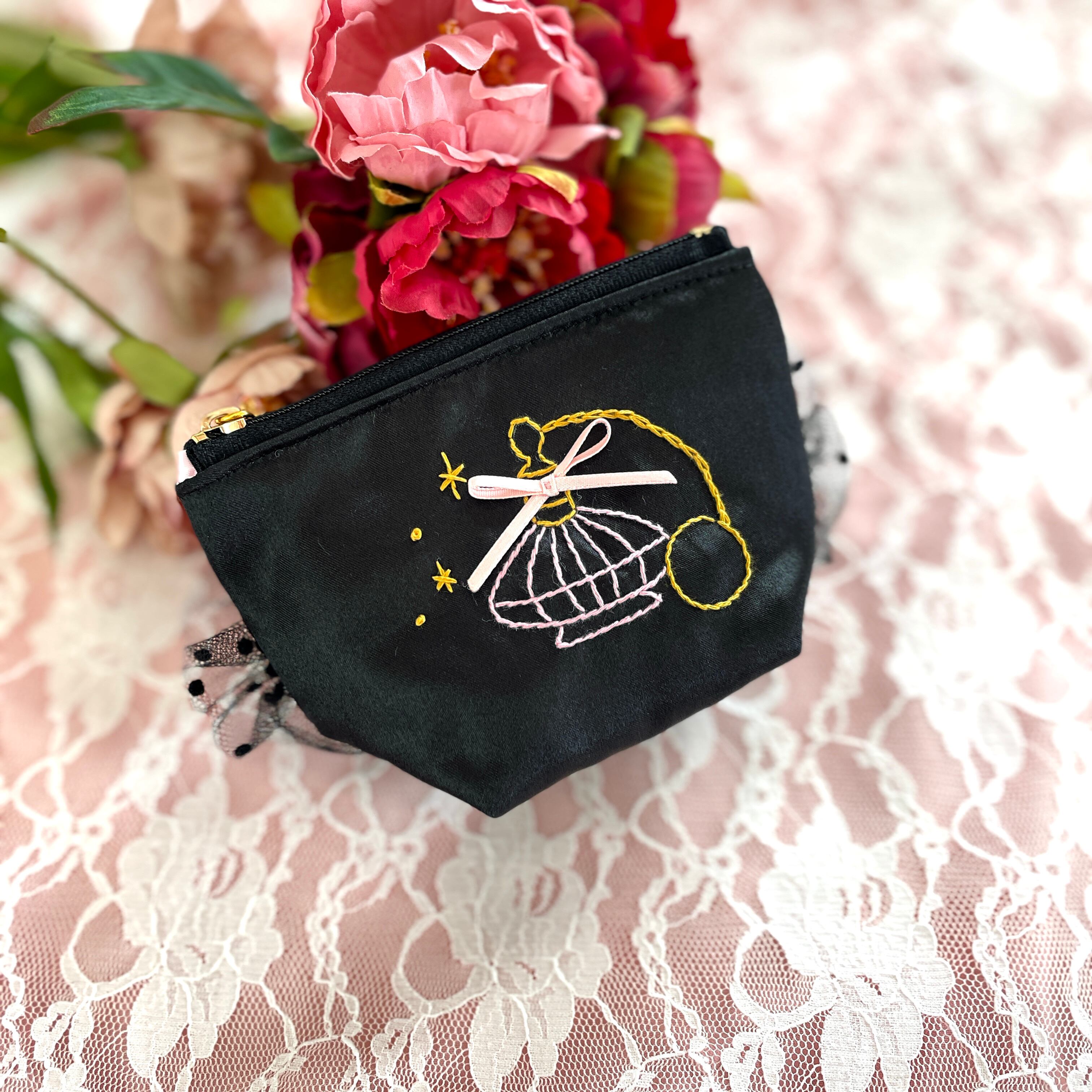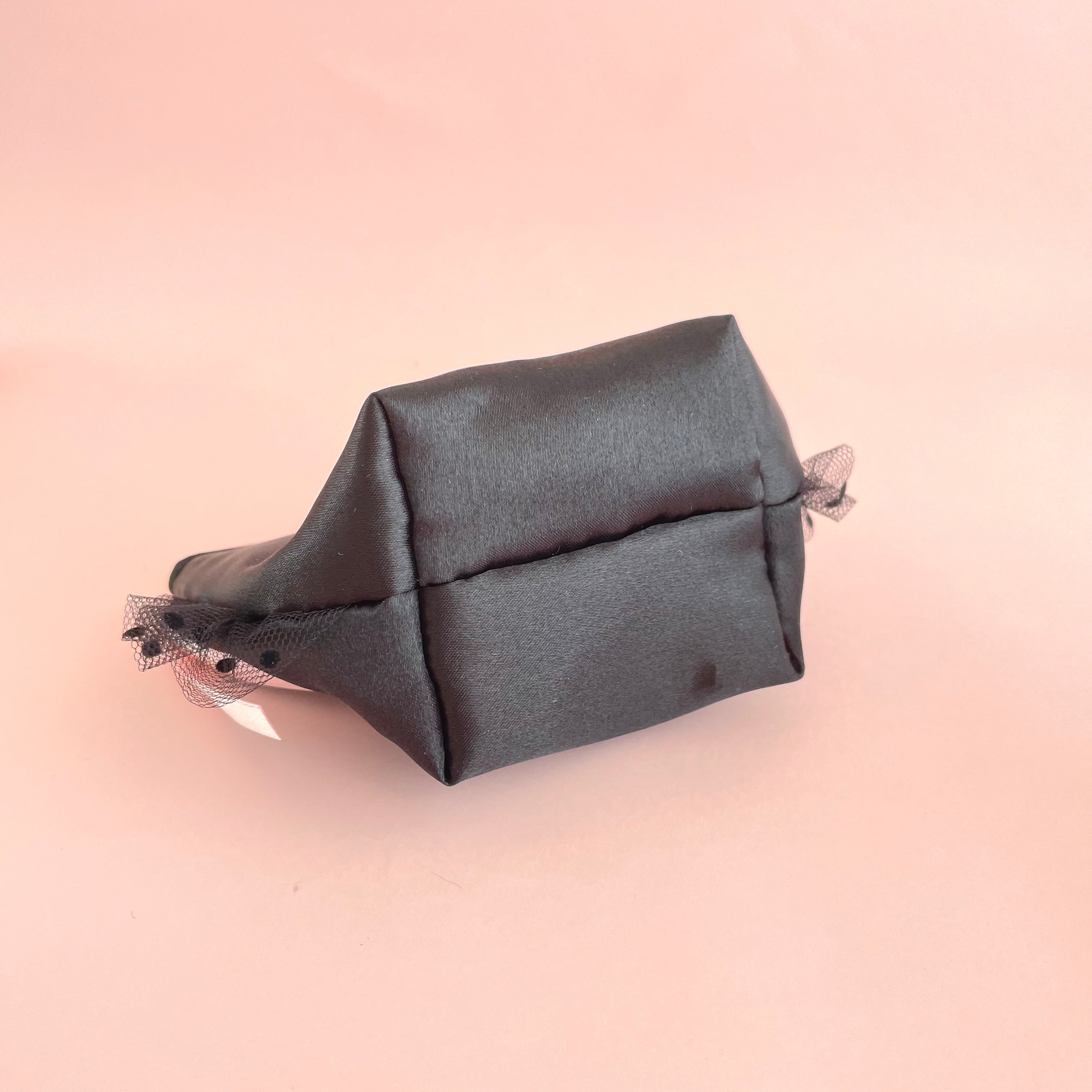 底マチ付きポーチ小(黒サテン)