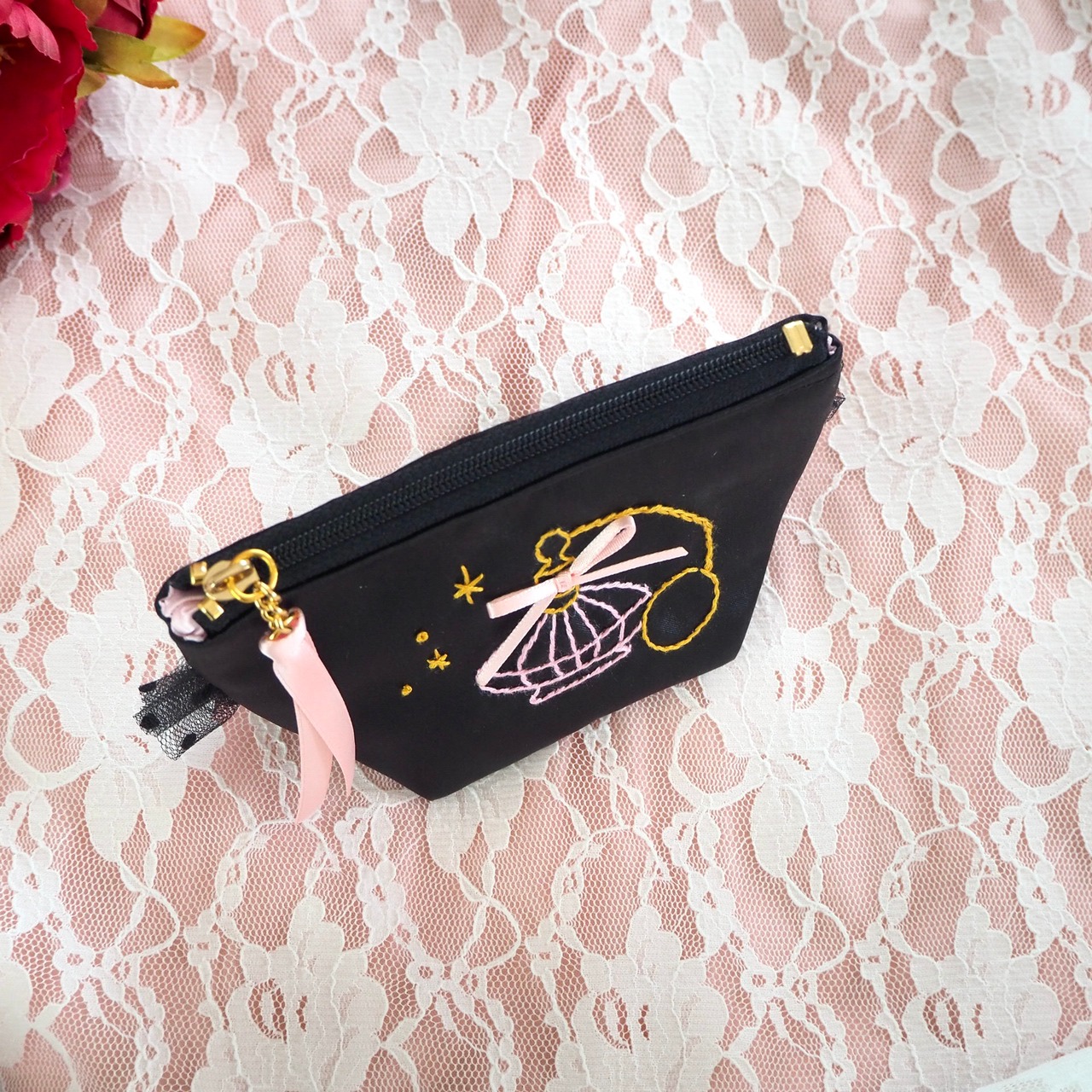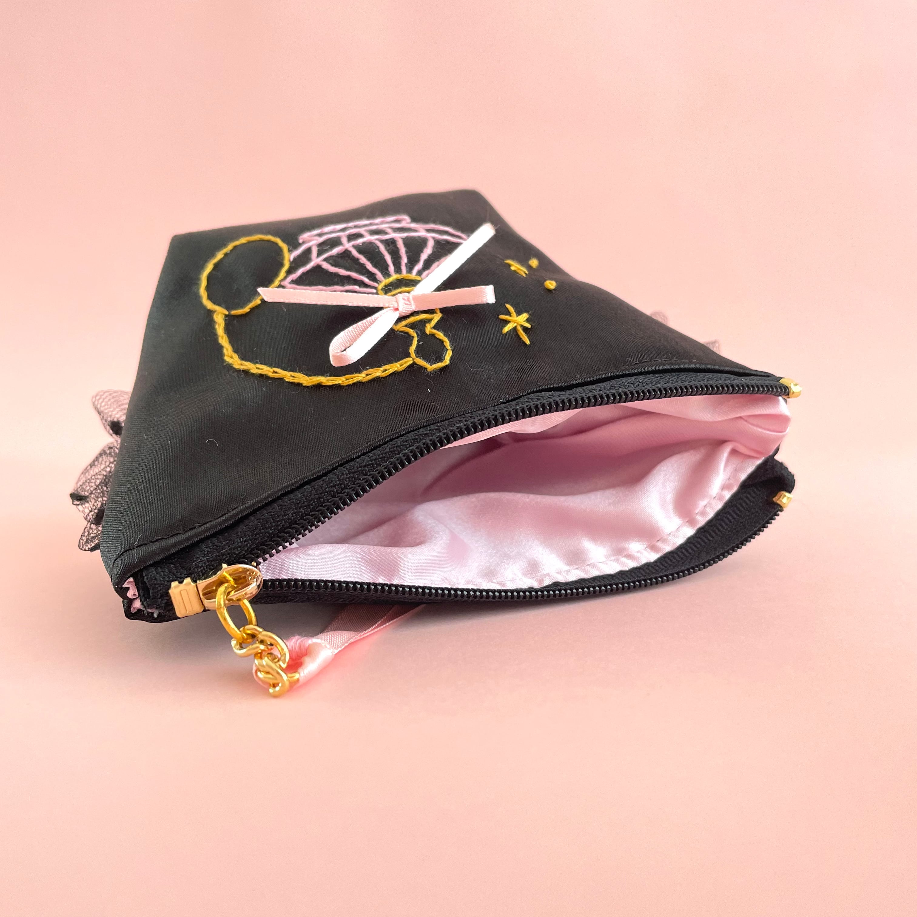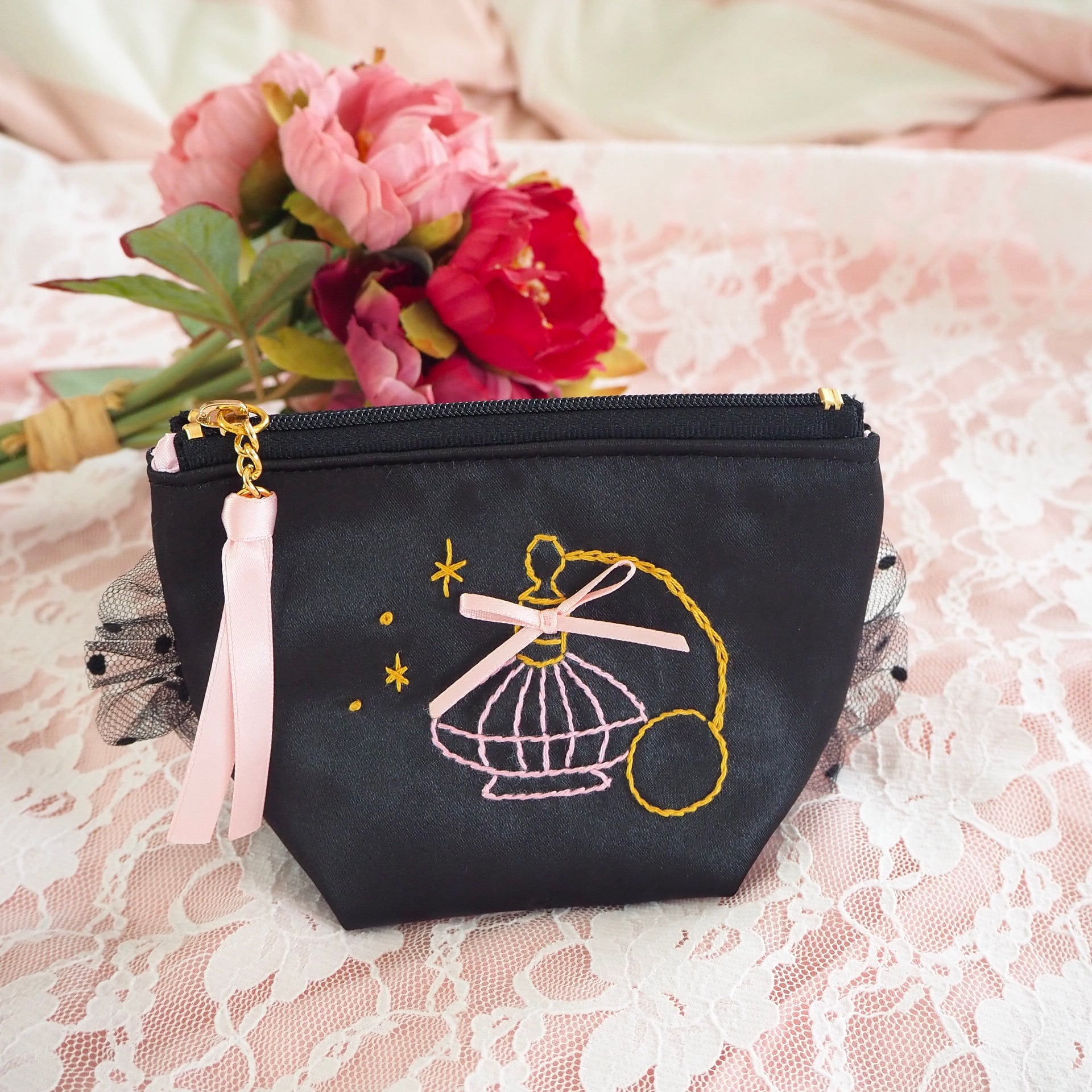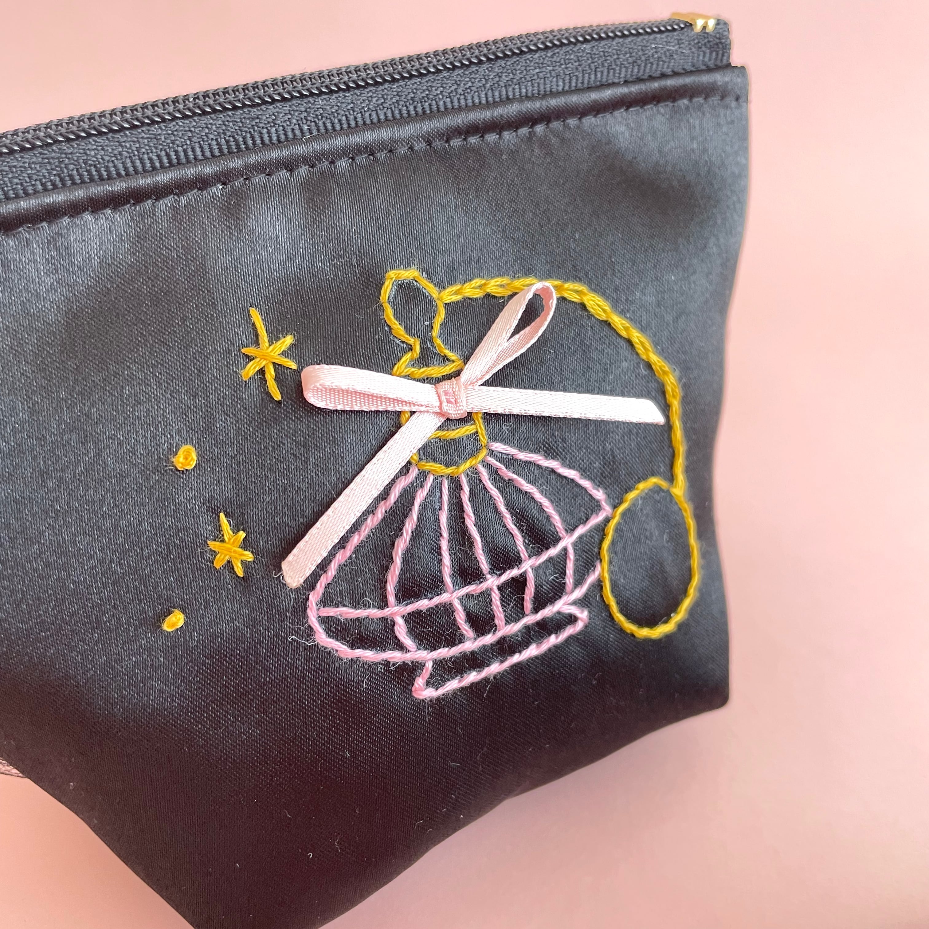 底マチ付きポーチ小(黒サテン)