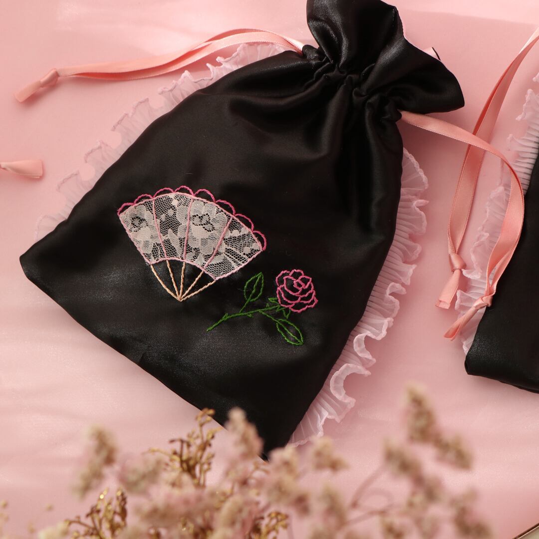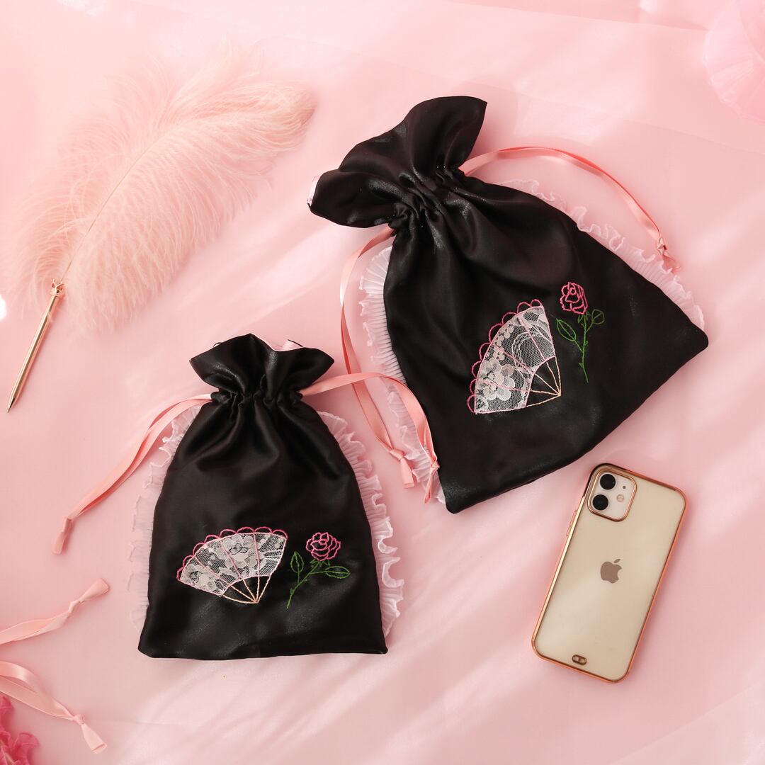 巾着ポーチ(M)(黒サテン)