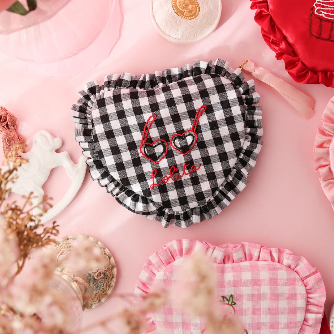ハートポーチ(黒ギンガム)
