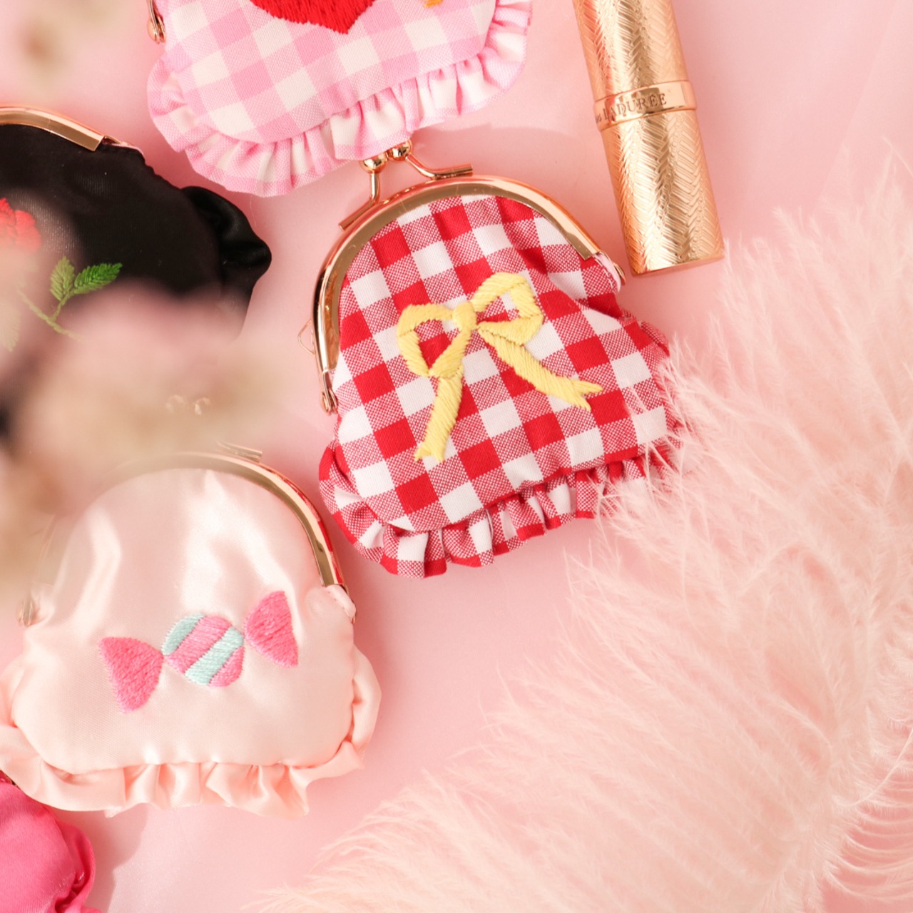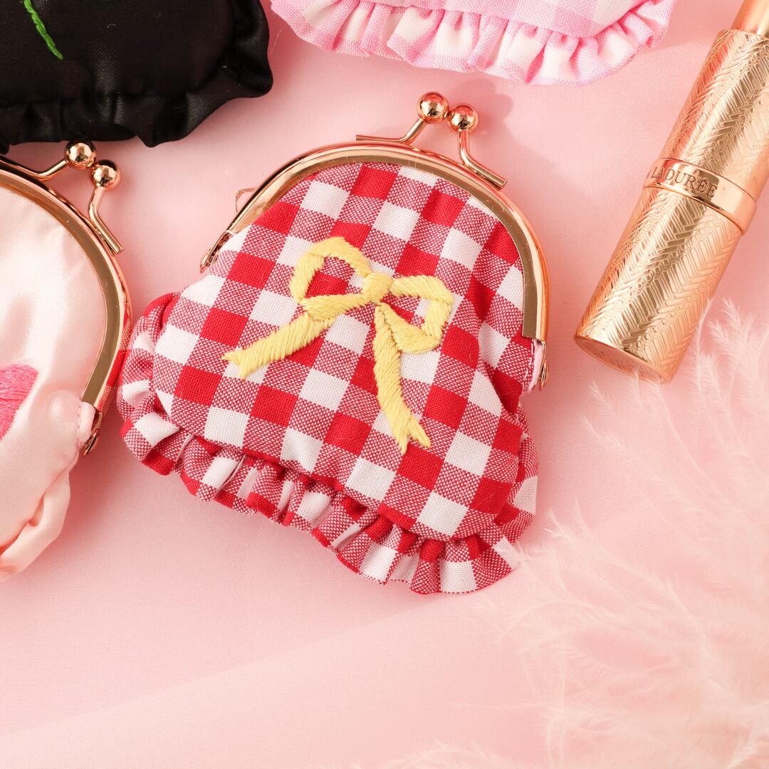 ミニがま口ポーチ(赤ギンガム)