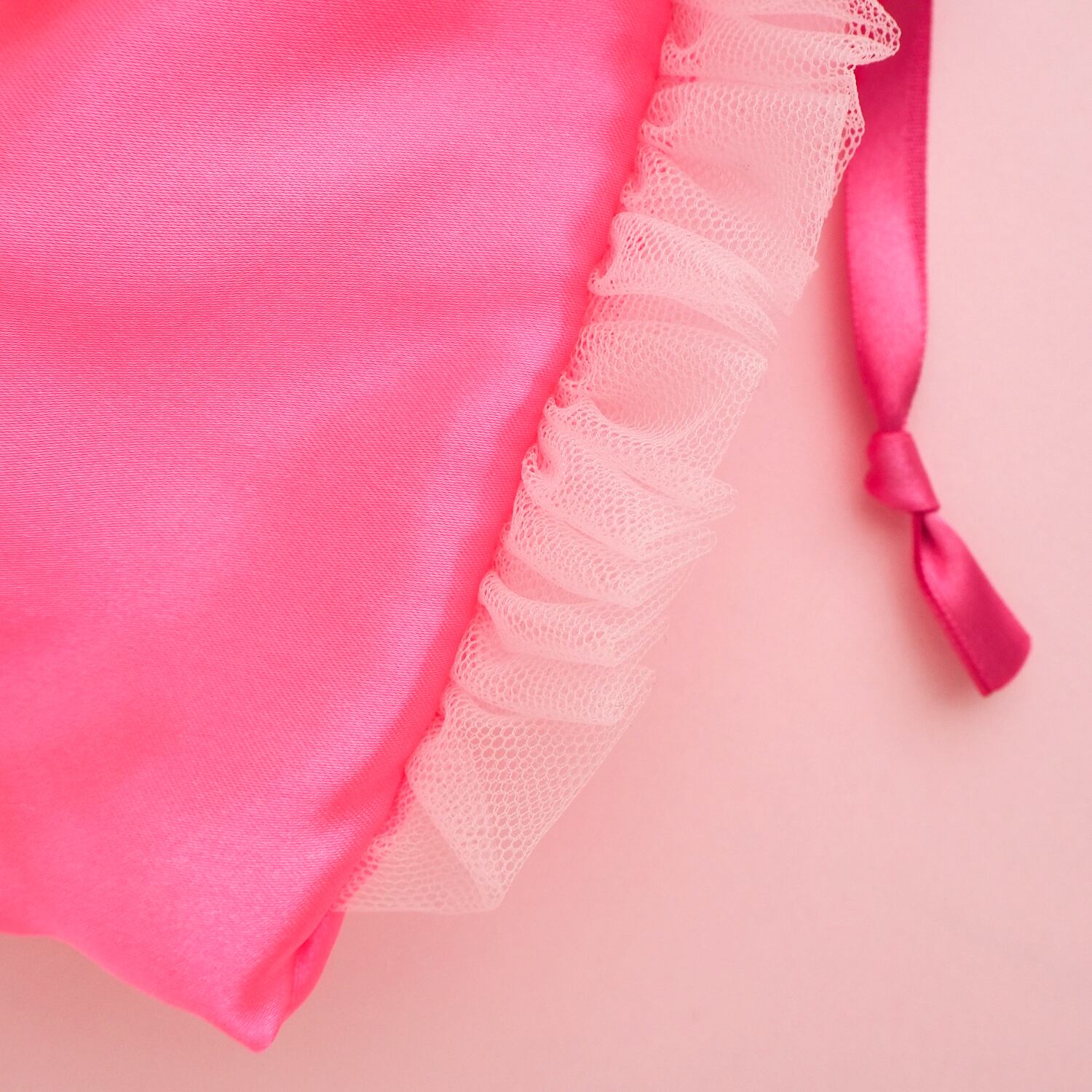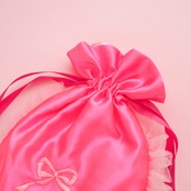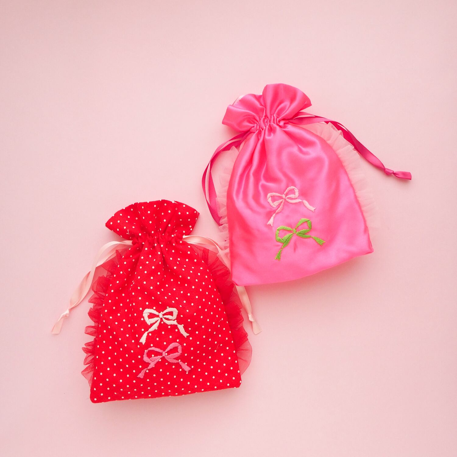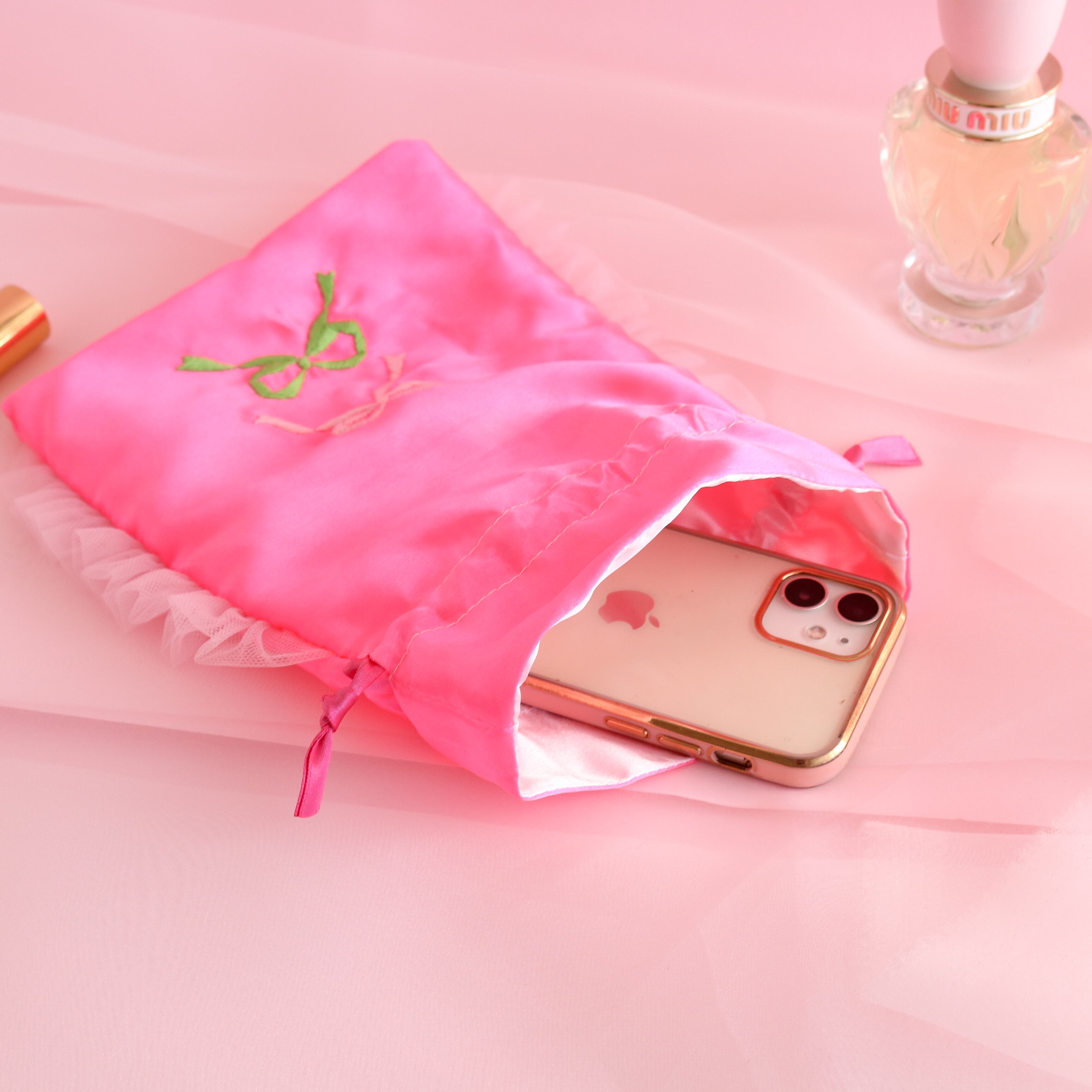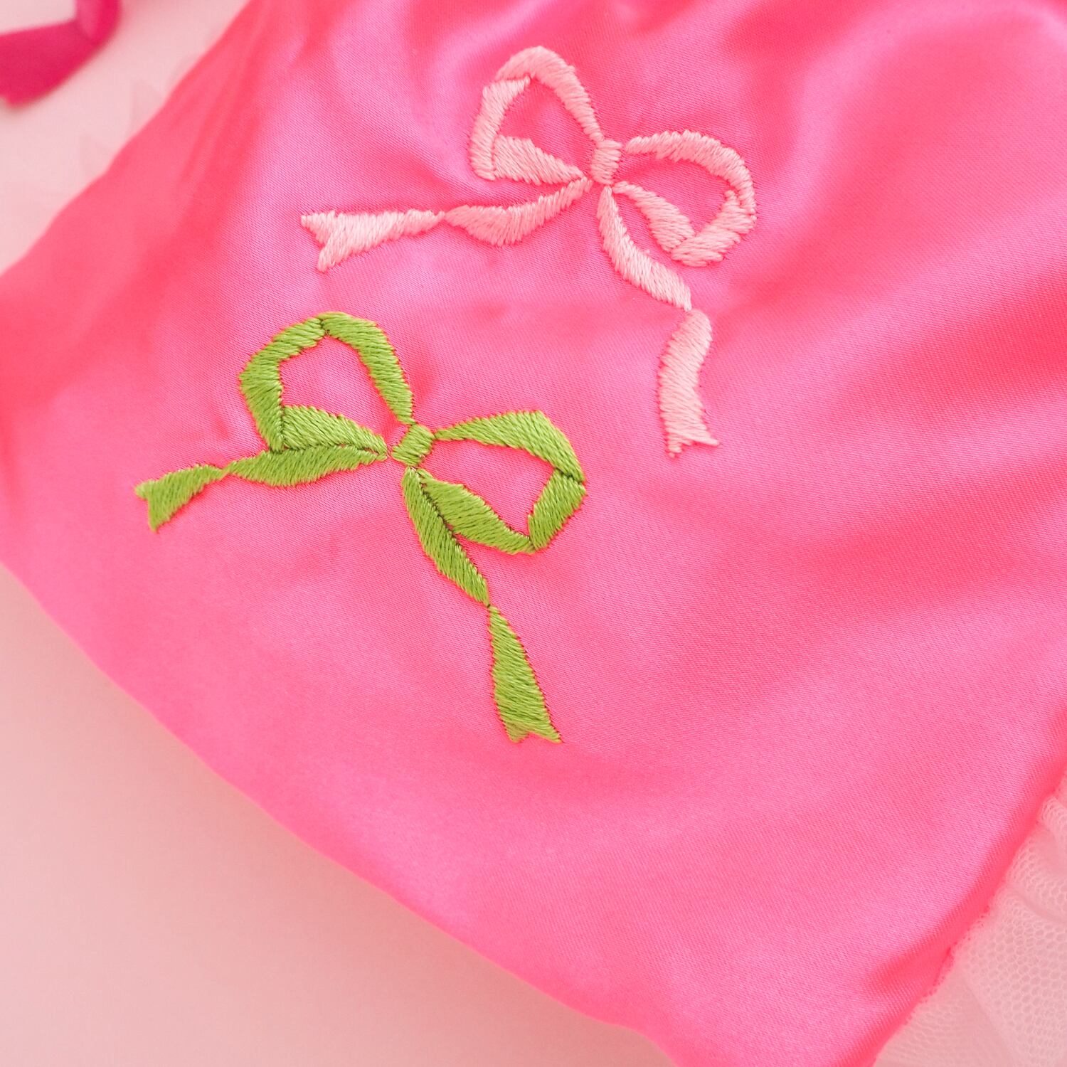巾着ポーチ(蛍光ピンク/リボン刺繍)
