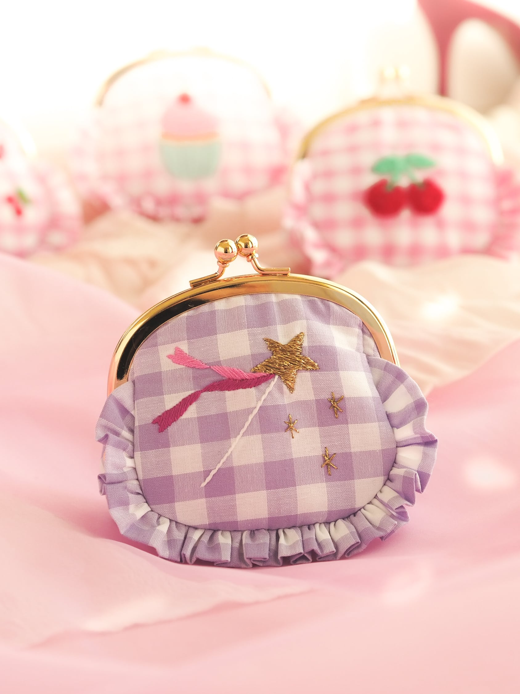 がま口ポーチ(むらさきギンガム/星ステッキ)