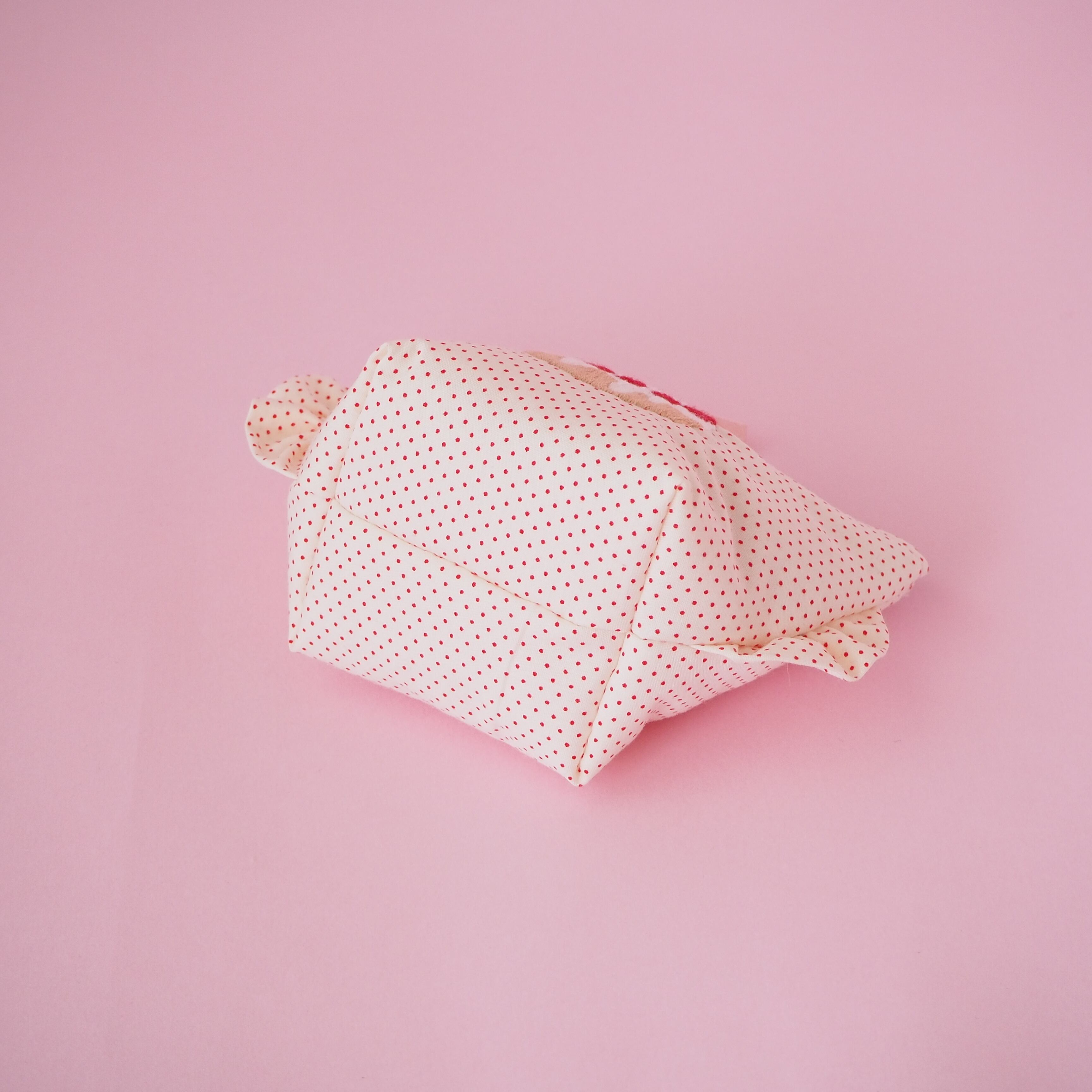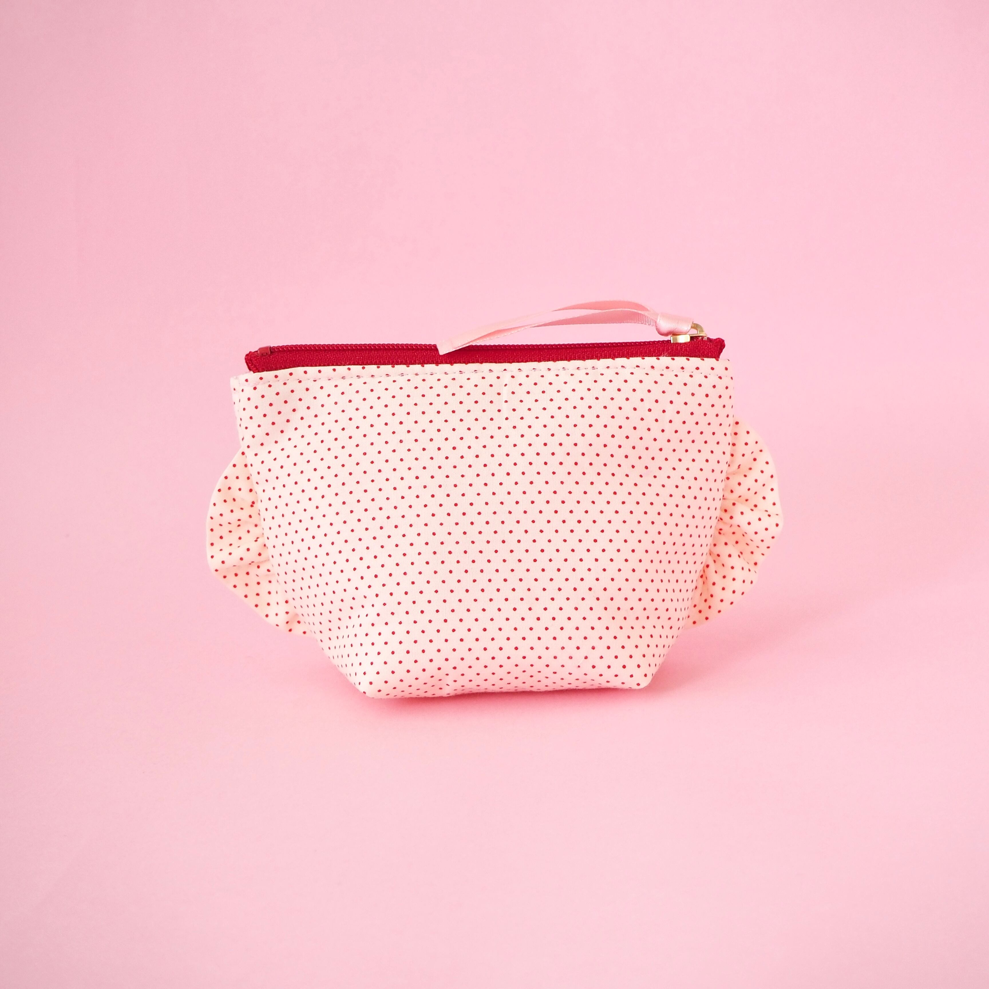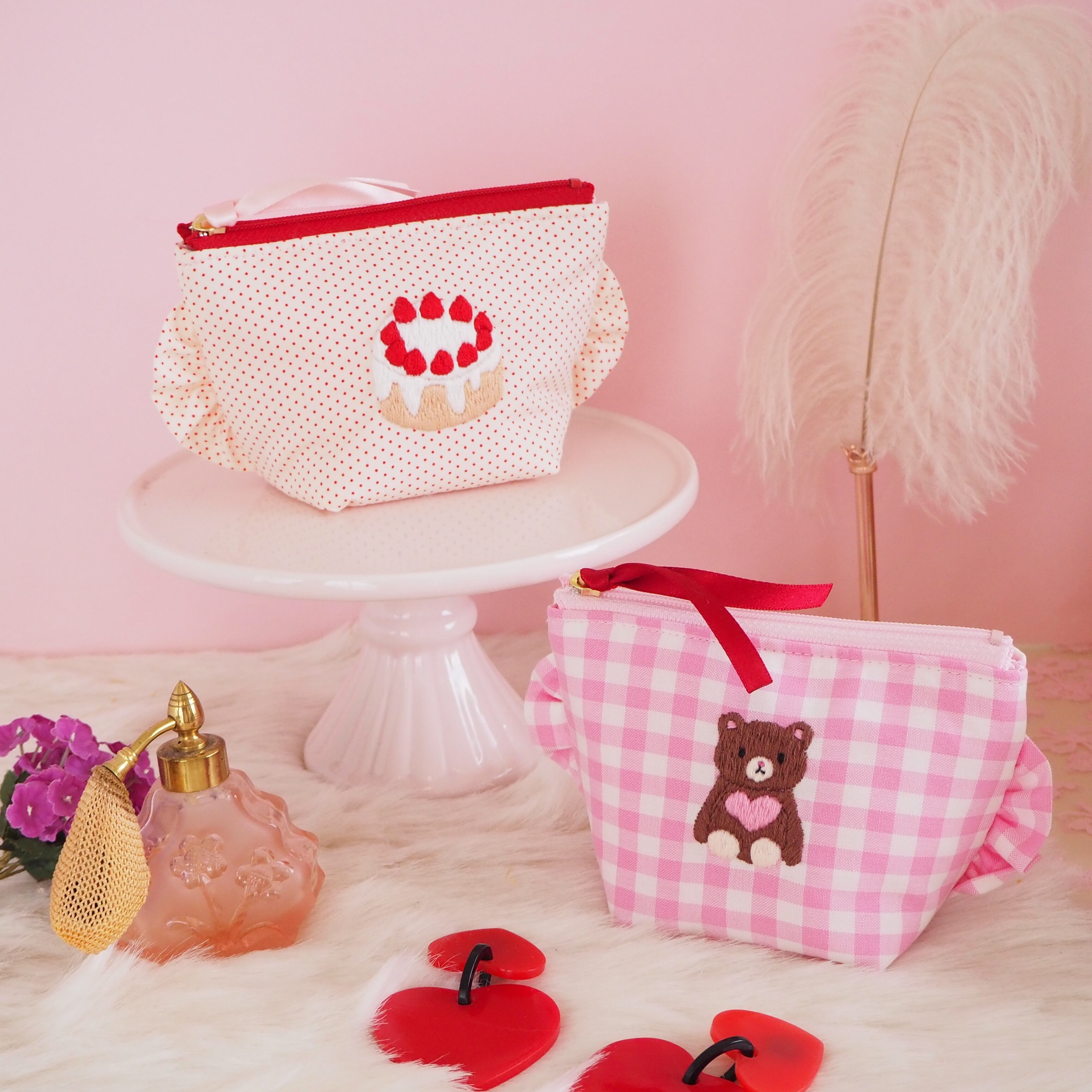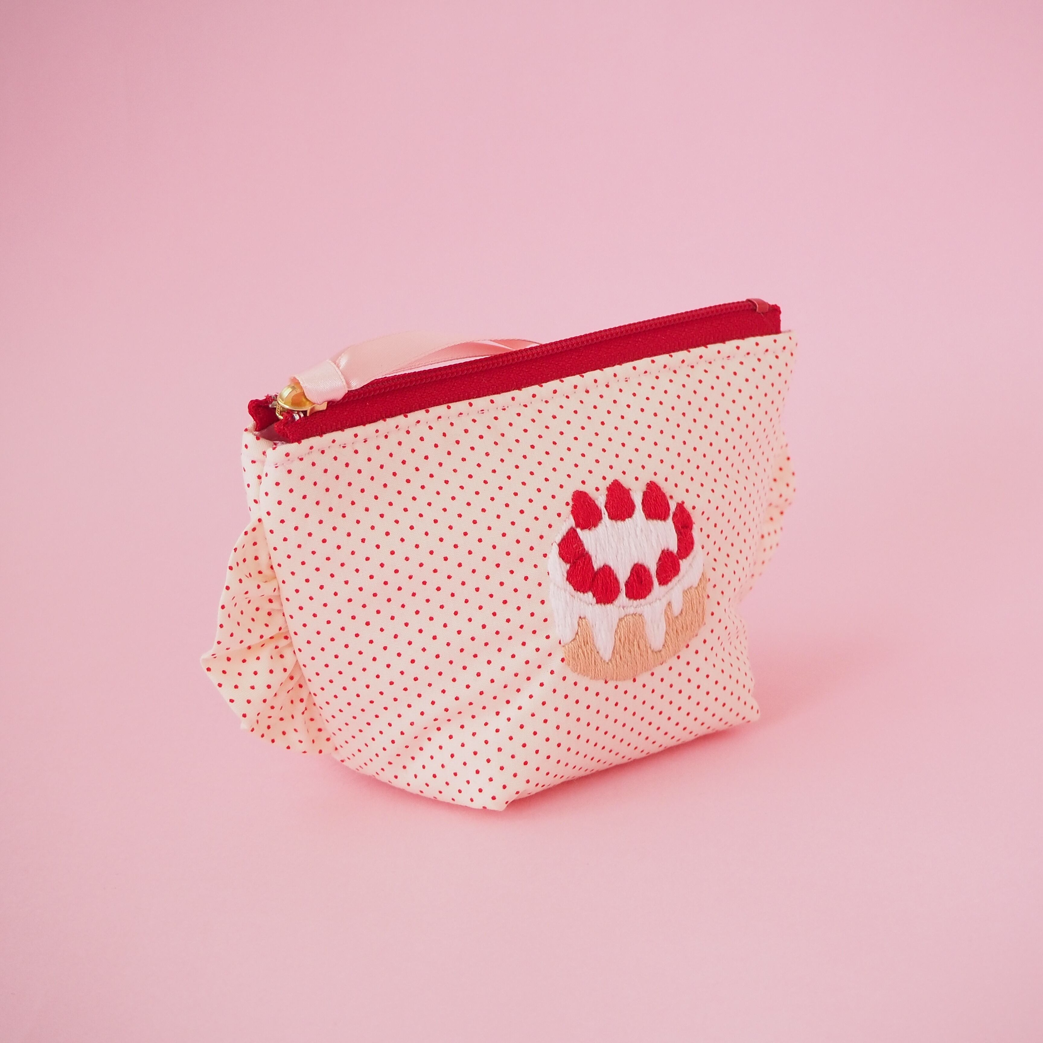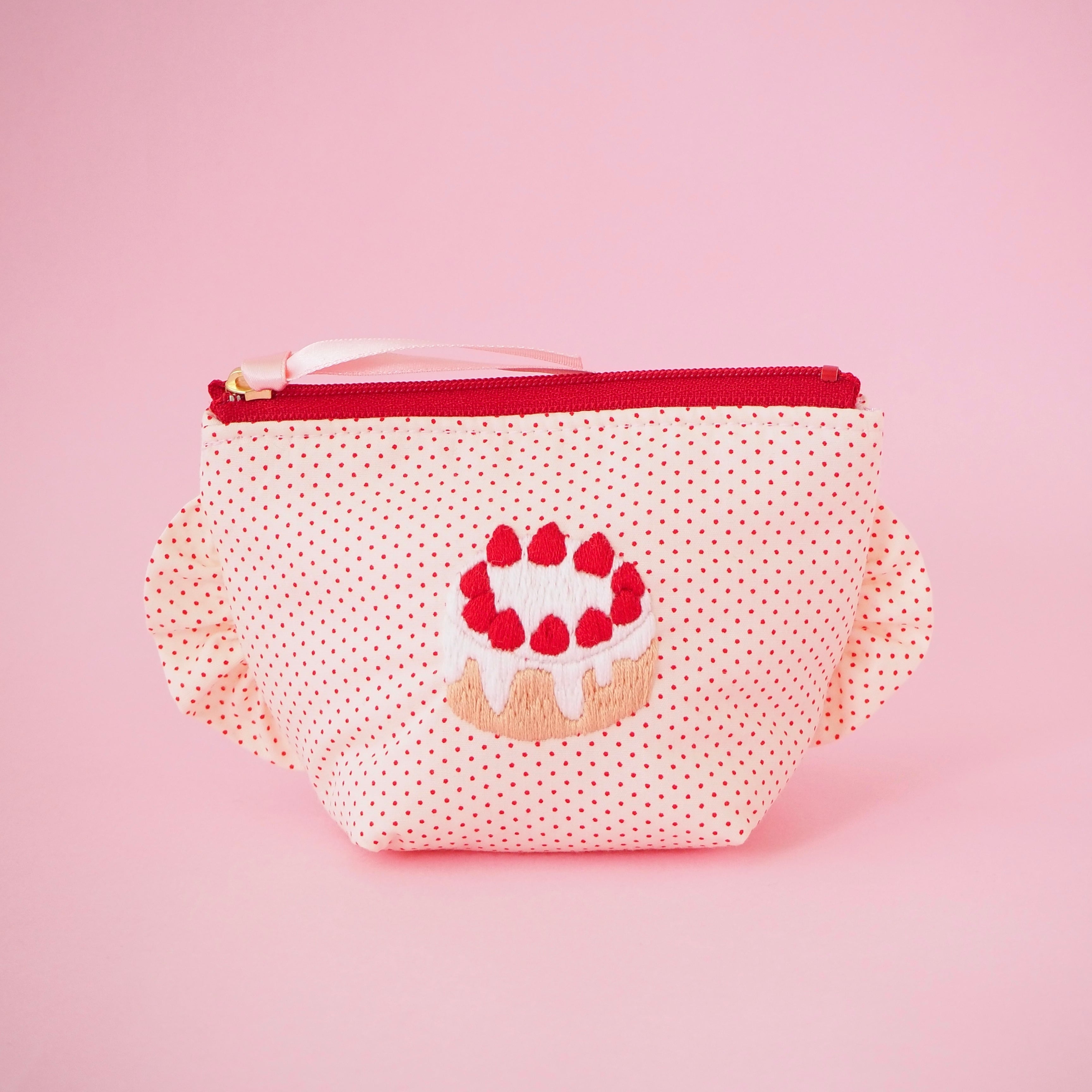 底マチ付きポーチ(S)(ホワイト×レッドドット/ホールケーキ刺繍)