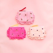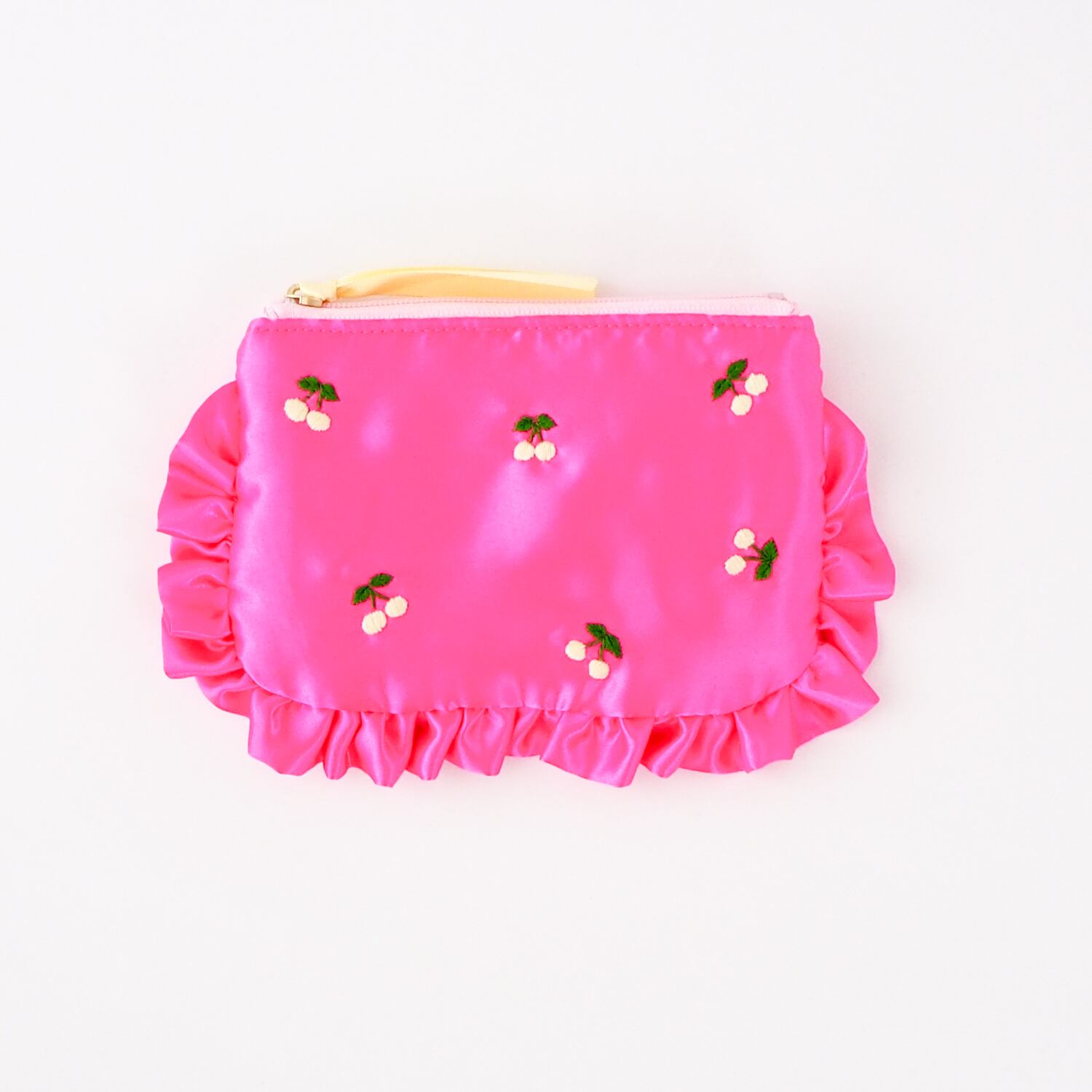 ぺたんこポーチ(S)(ホットピンク/チェリー刺繍)