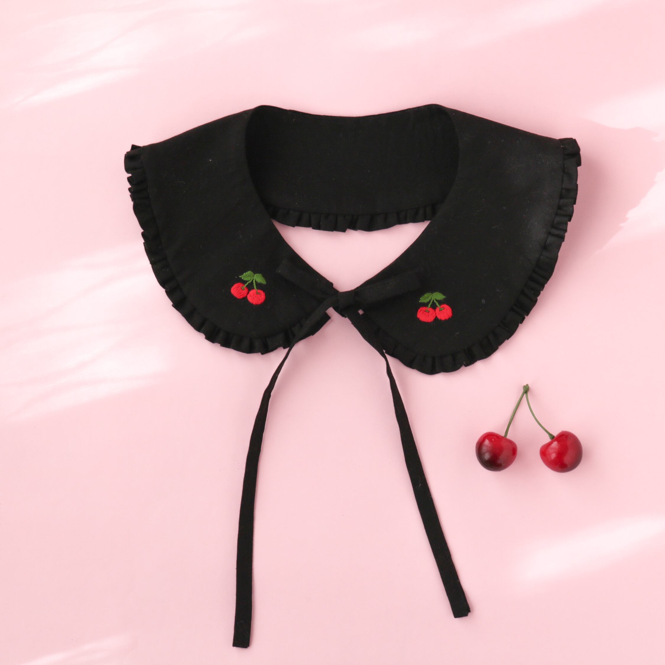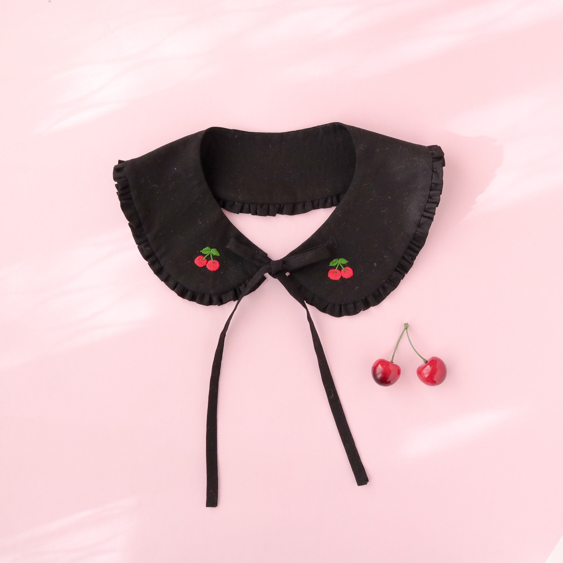 つけ襟(ブラック/チェリー刺繍)【お一人様1枚まで】