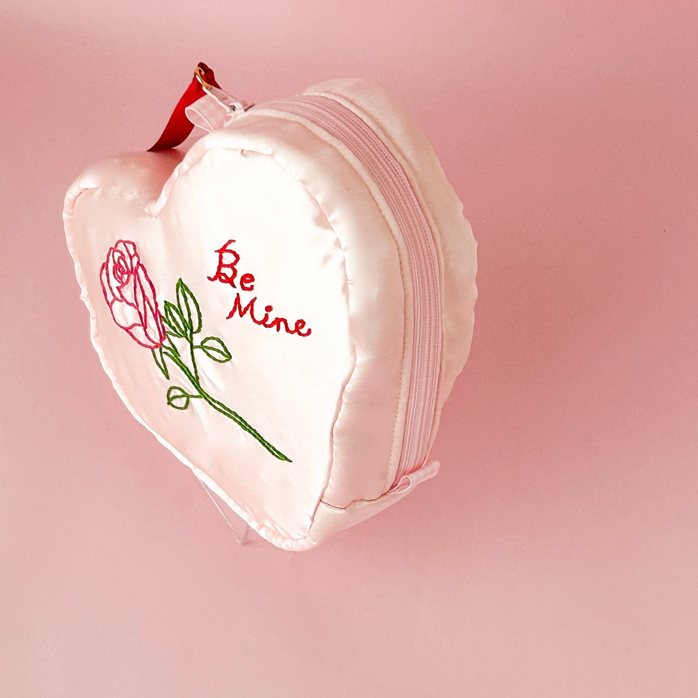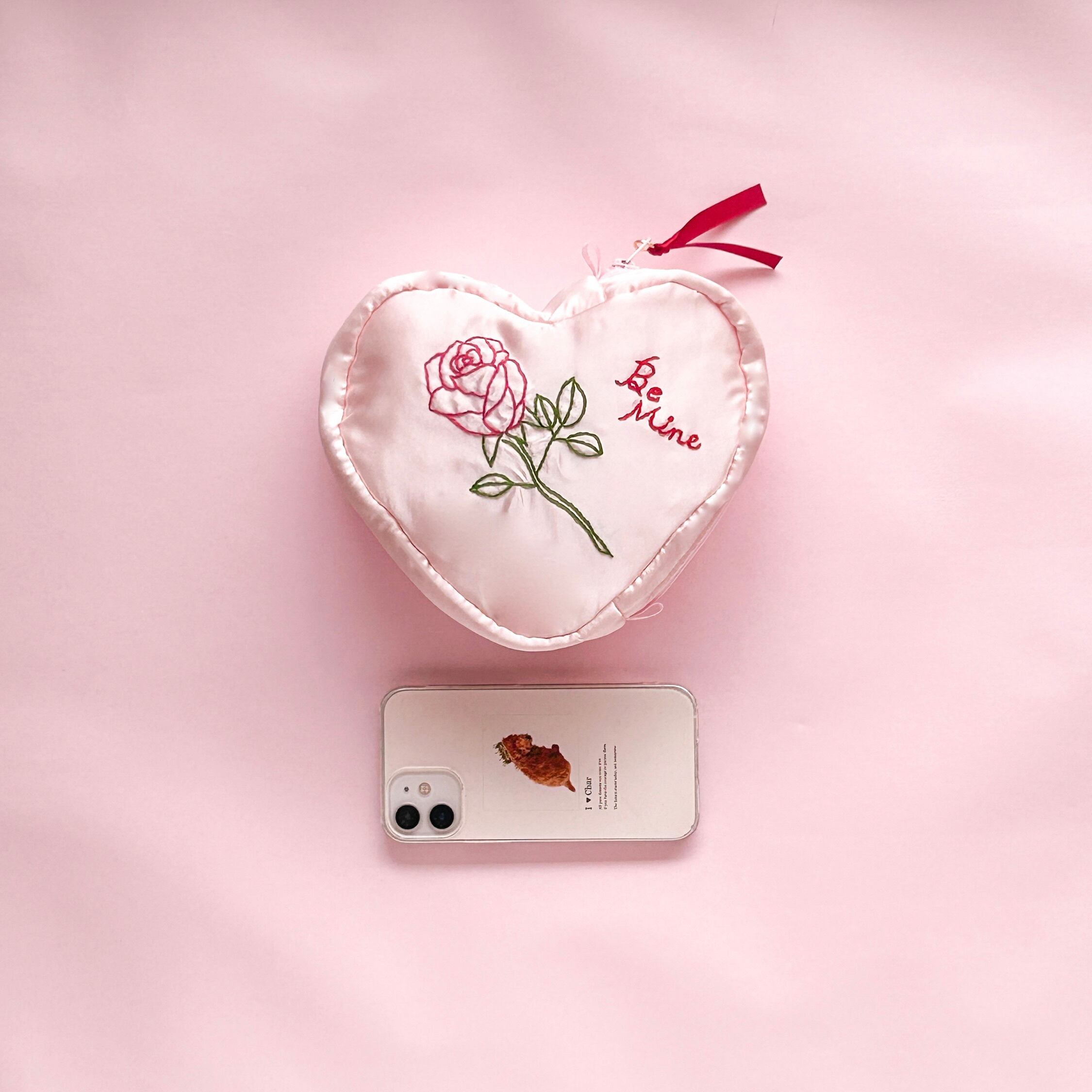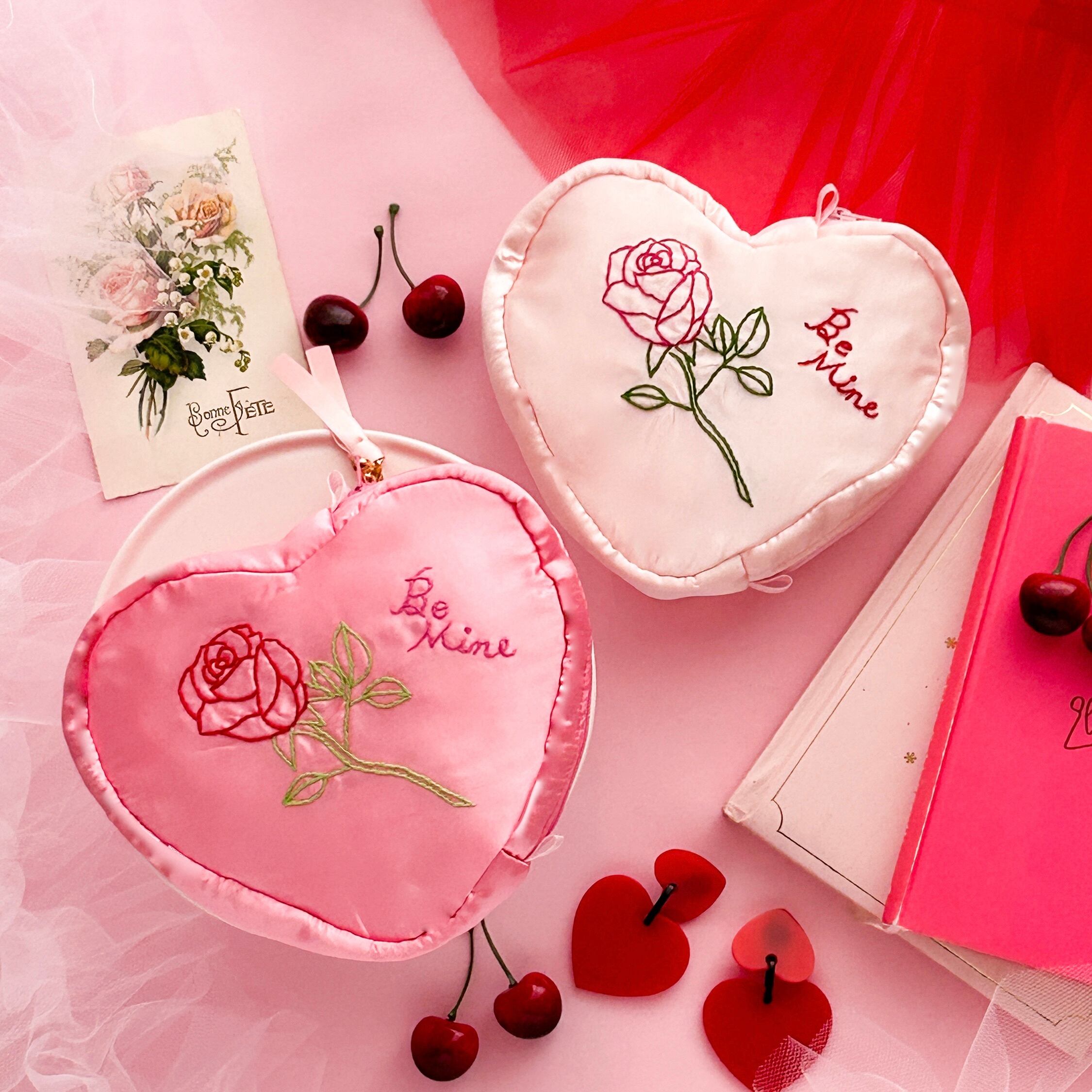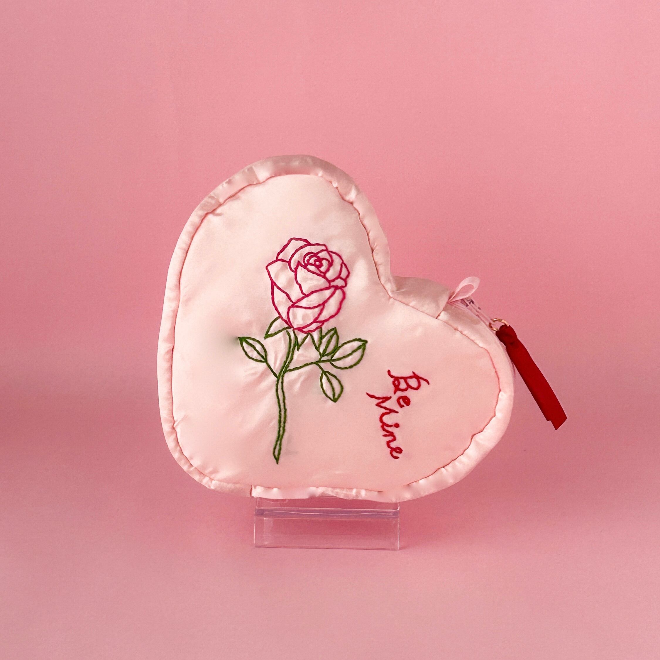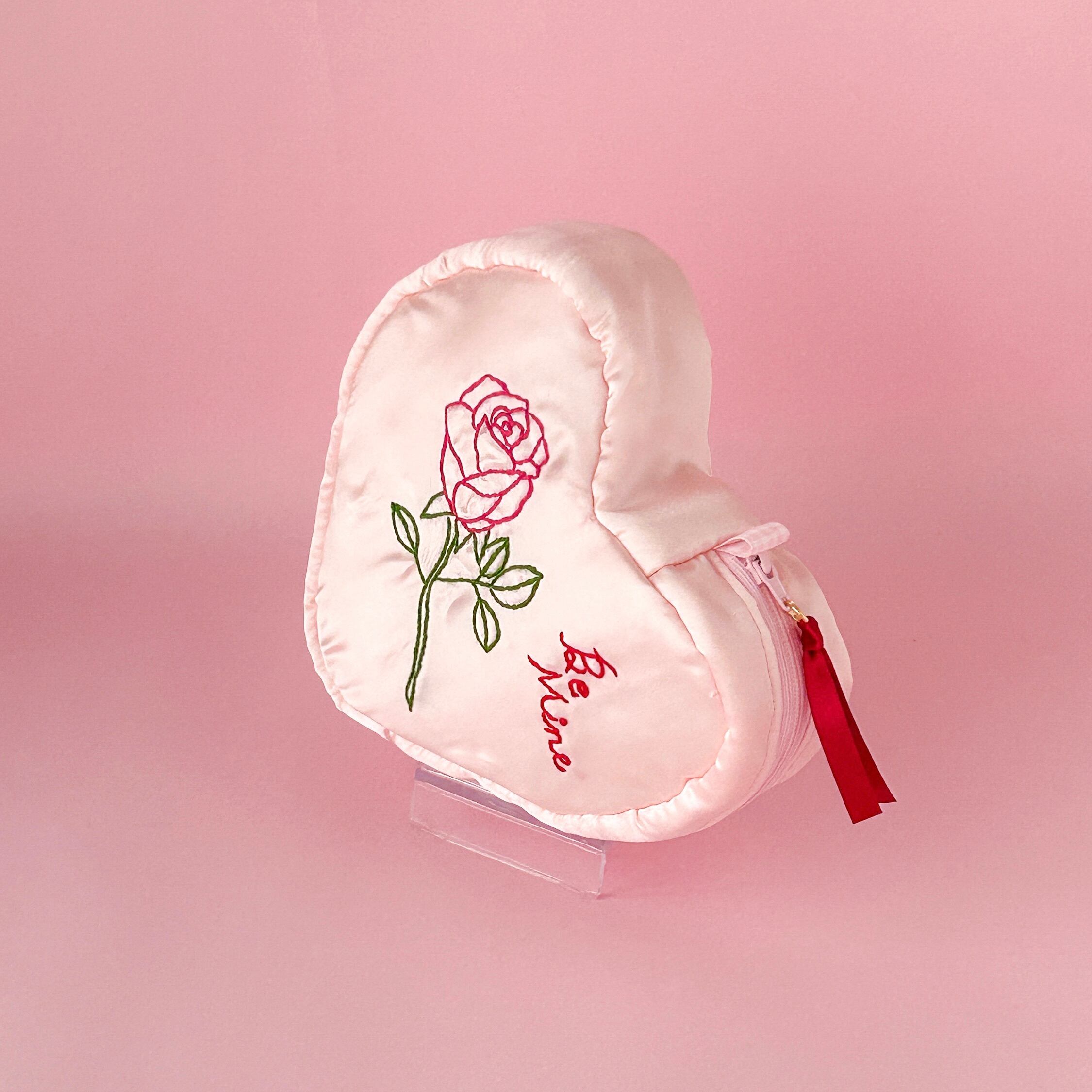 バレンタインハートポーチ(シェルピンク/バラ刺繍)【お一人様2個まで】