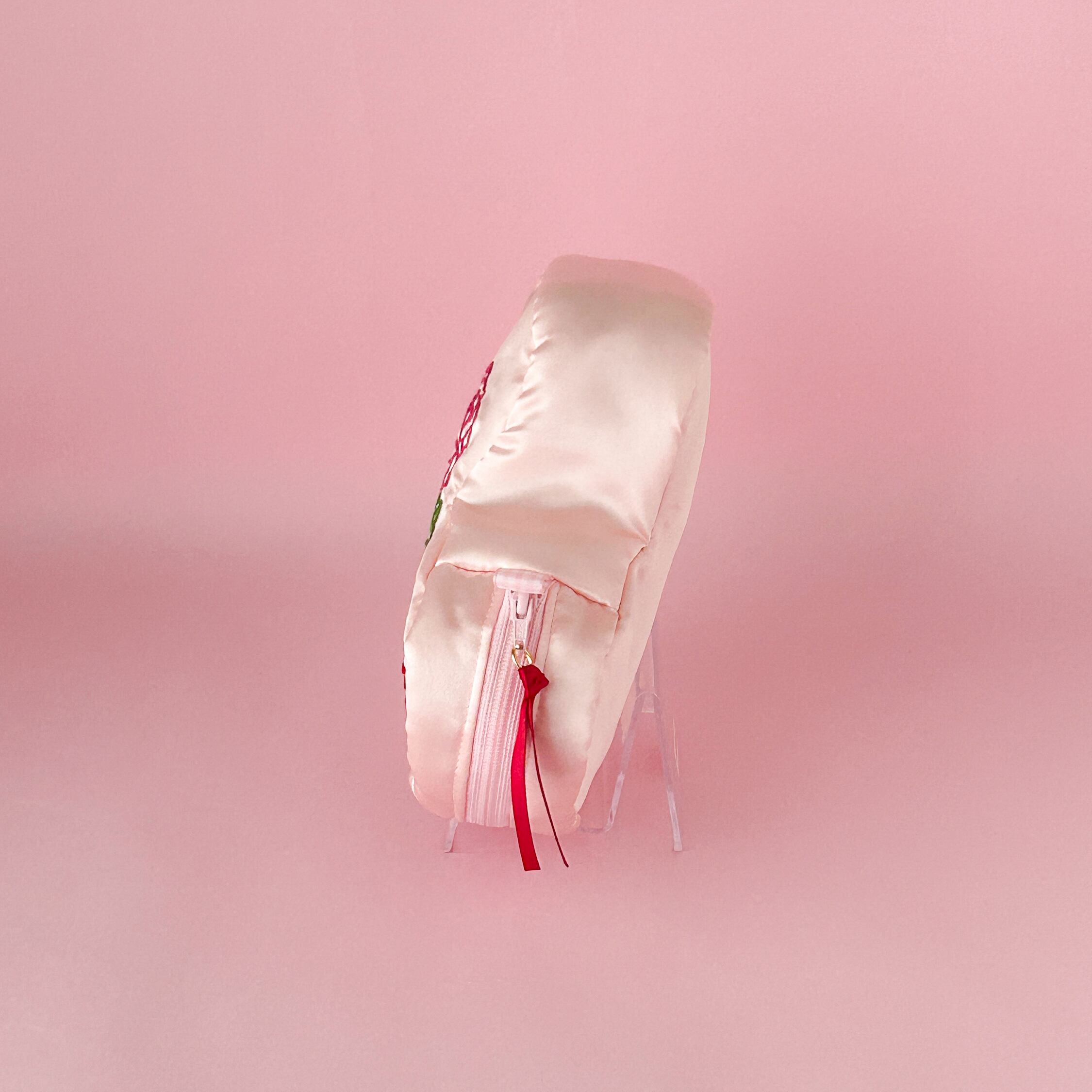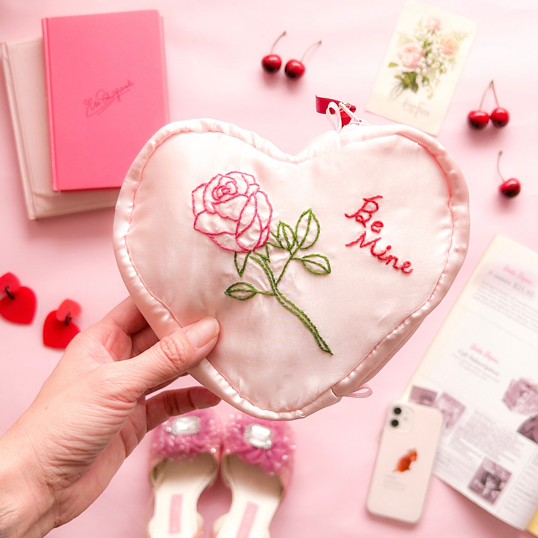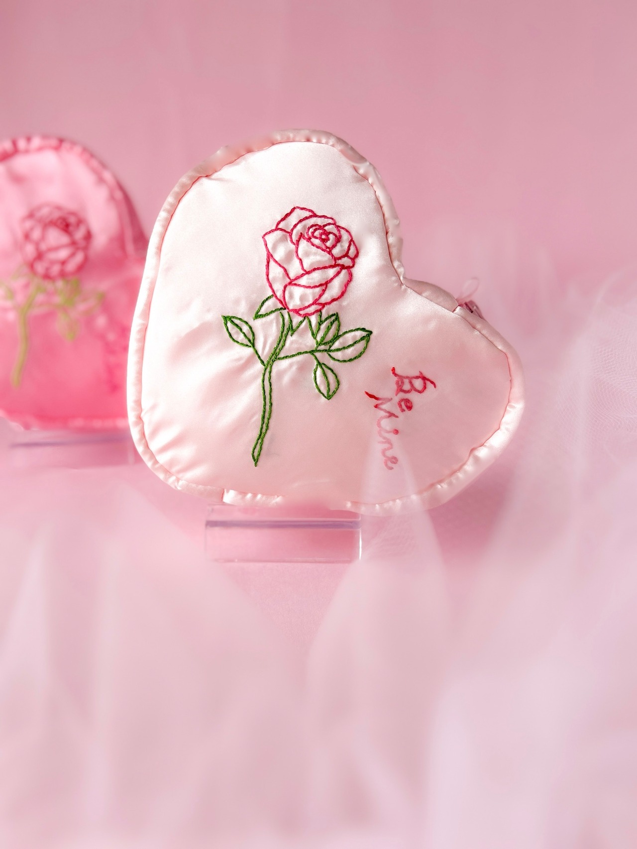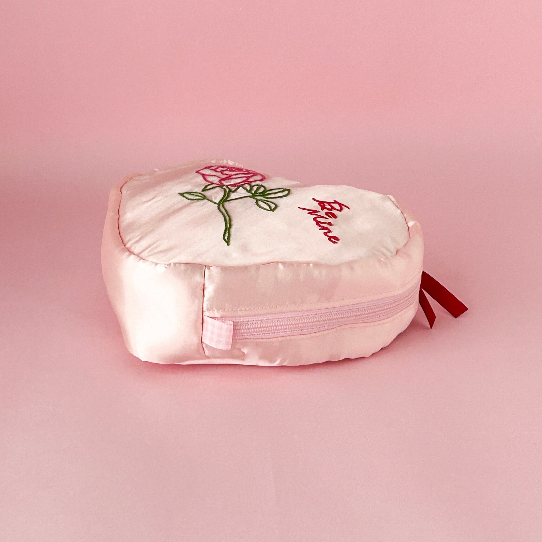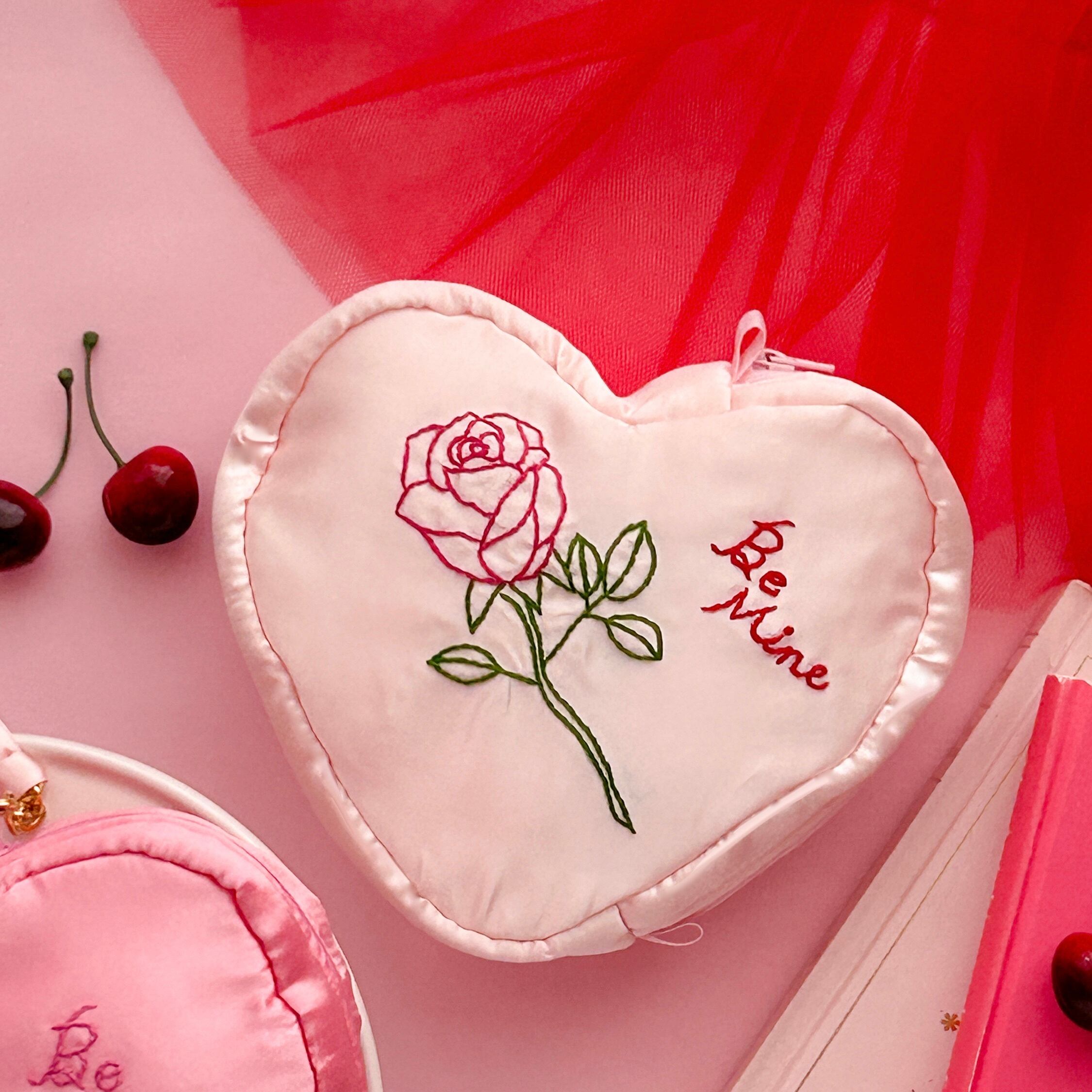 バレンタインハートポーチ(シェルピンク/バラ刺繍)【お一人様2個まで】