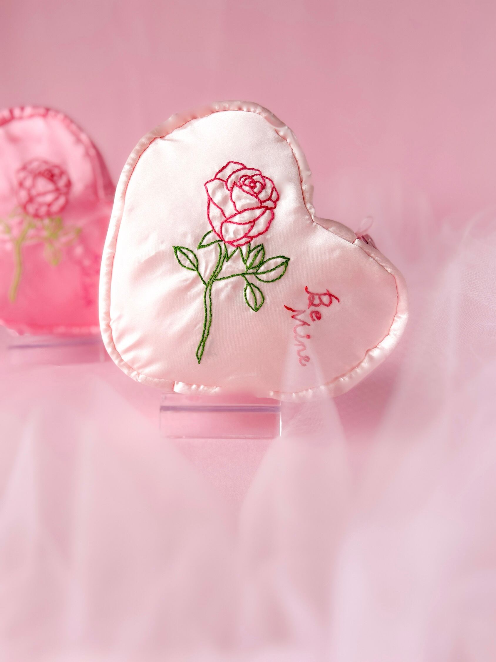 ○バレンタイン?ハートポーチ(シェルピンク/バラ刺繍)×2個注文