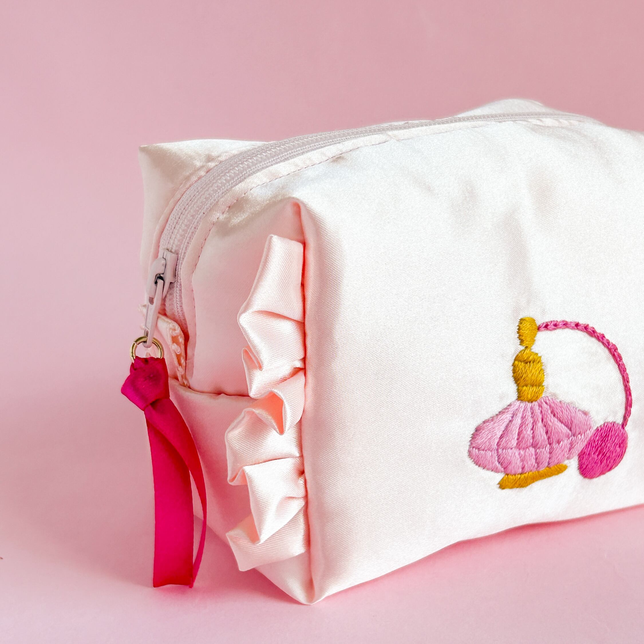 ボックスポーチ(シェルピンク/香水瓶刺繍)minetteハンドメイド