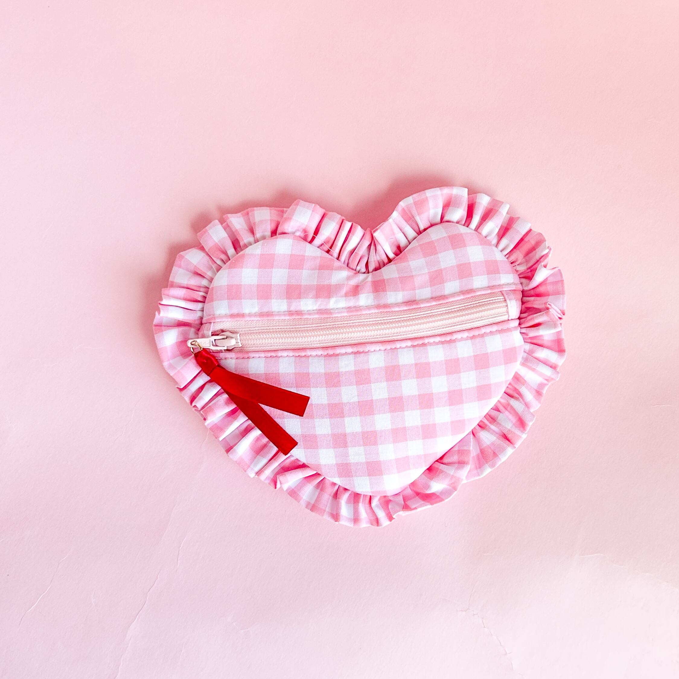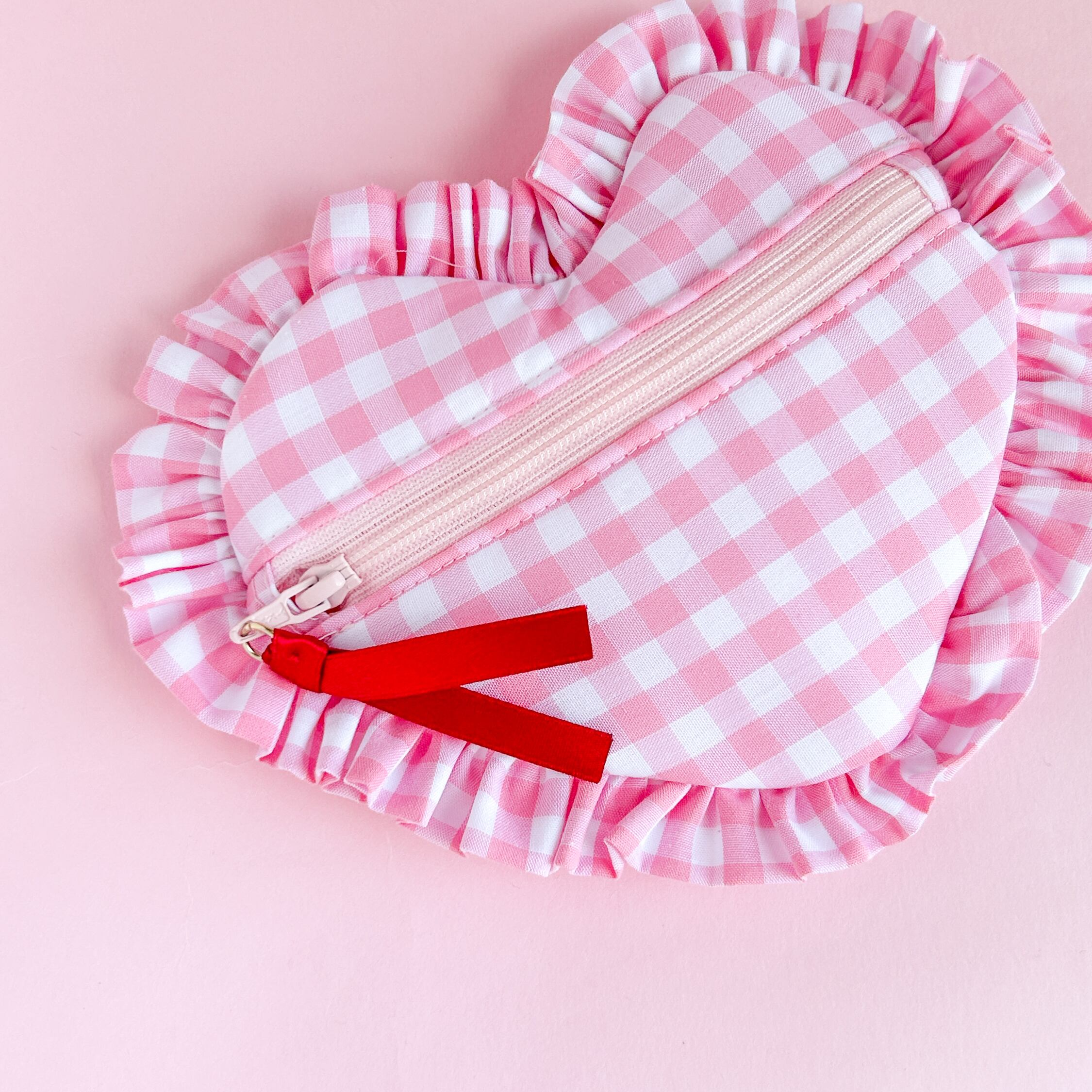 このポーチは、ハートの形をしており、特徴的なデザインが目を引きます。