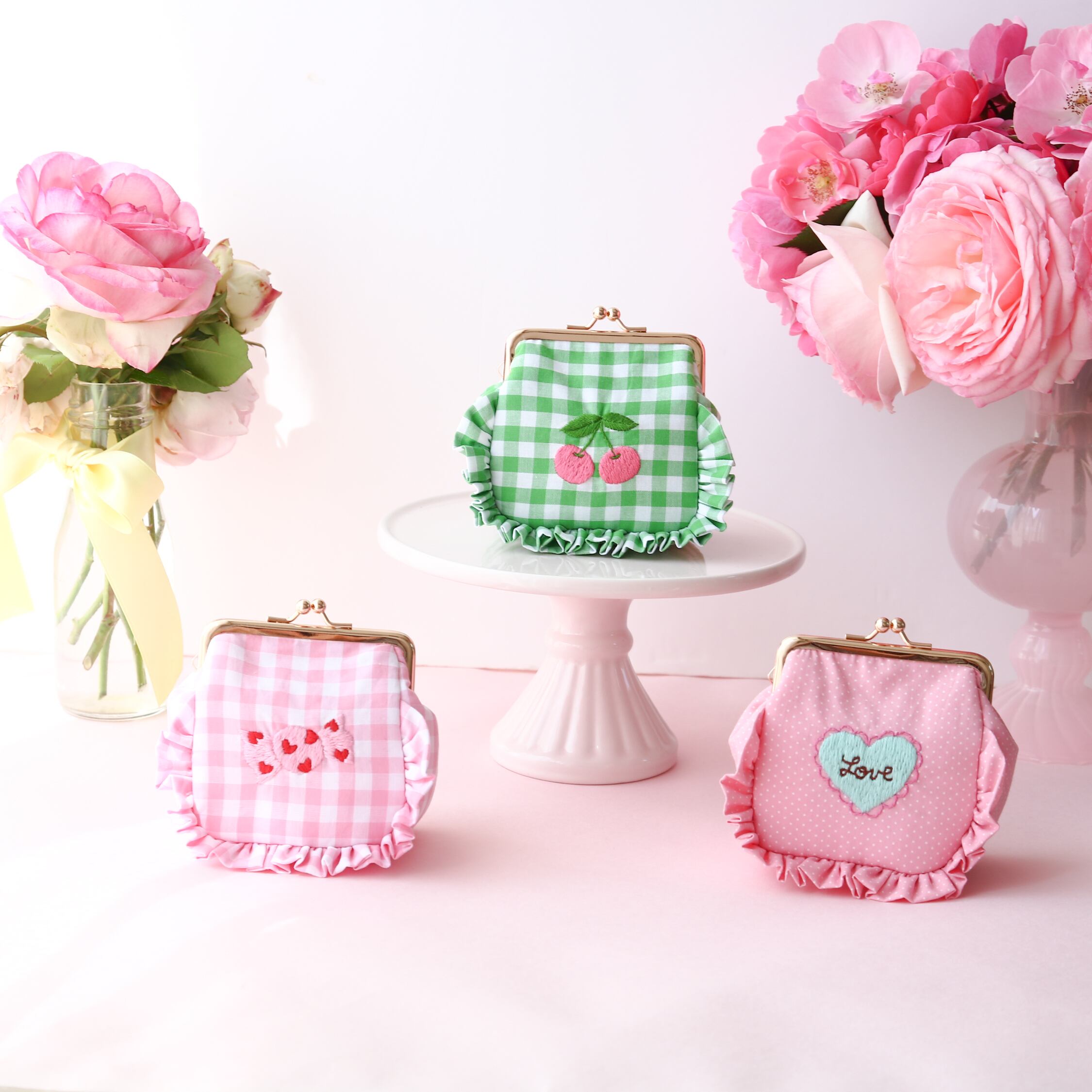 私が手がける手刺繍のガーリーなテイストのハンドメイドポーチは、