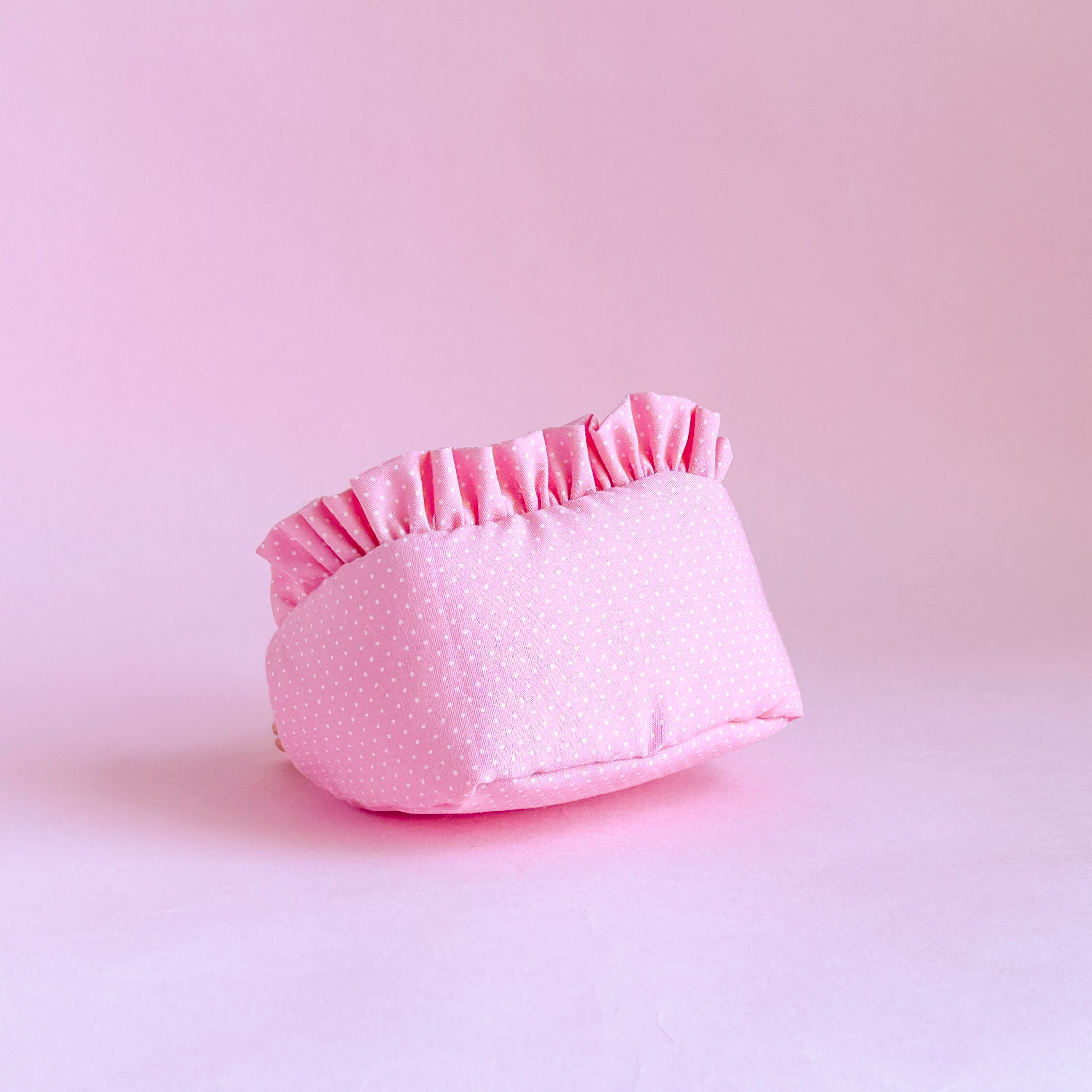 フリルがポーチにふんわりとした可愛らしさを与え、
