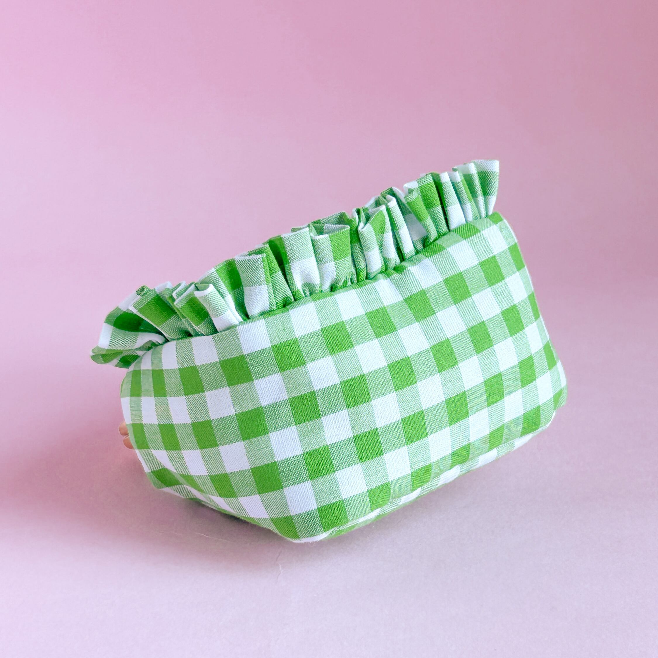 フリルがポーチにふんわりとした可愛らしさを与え、