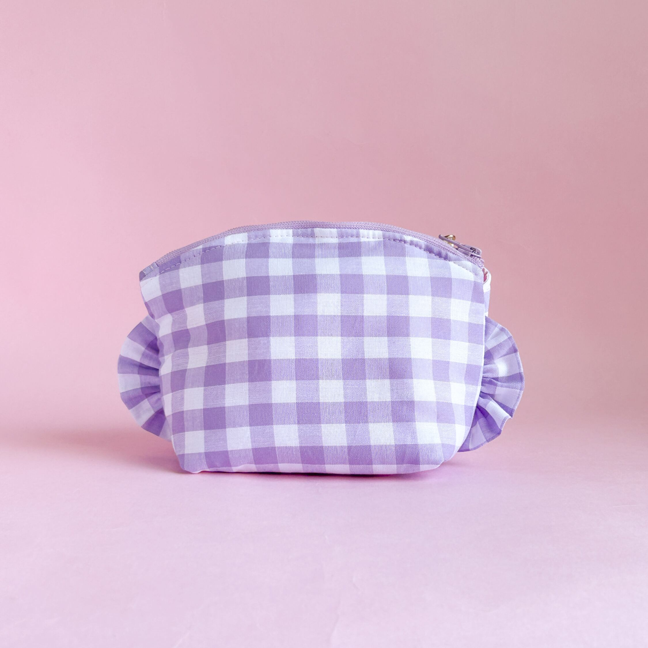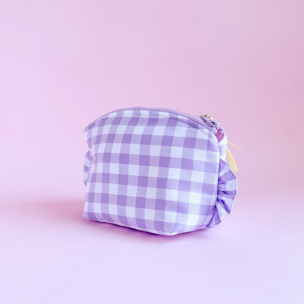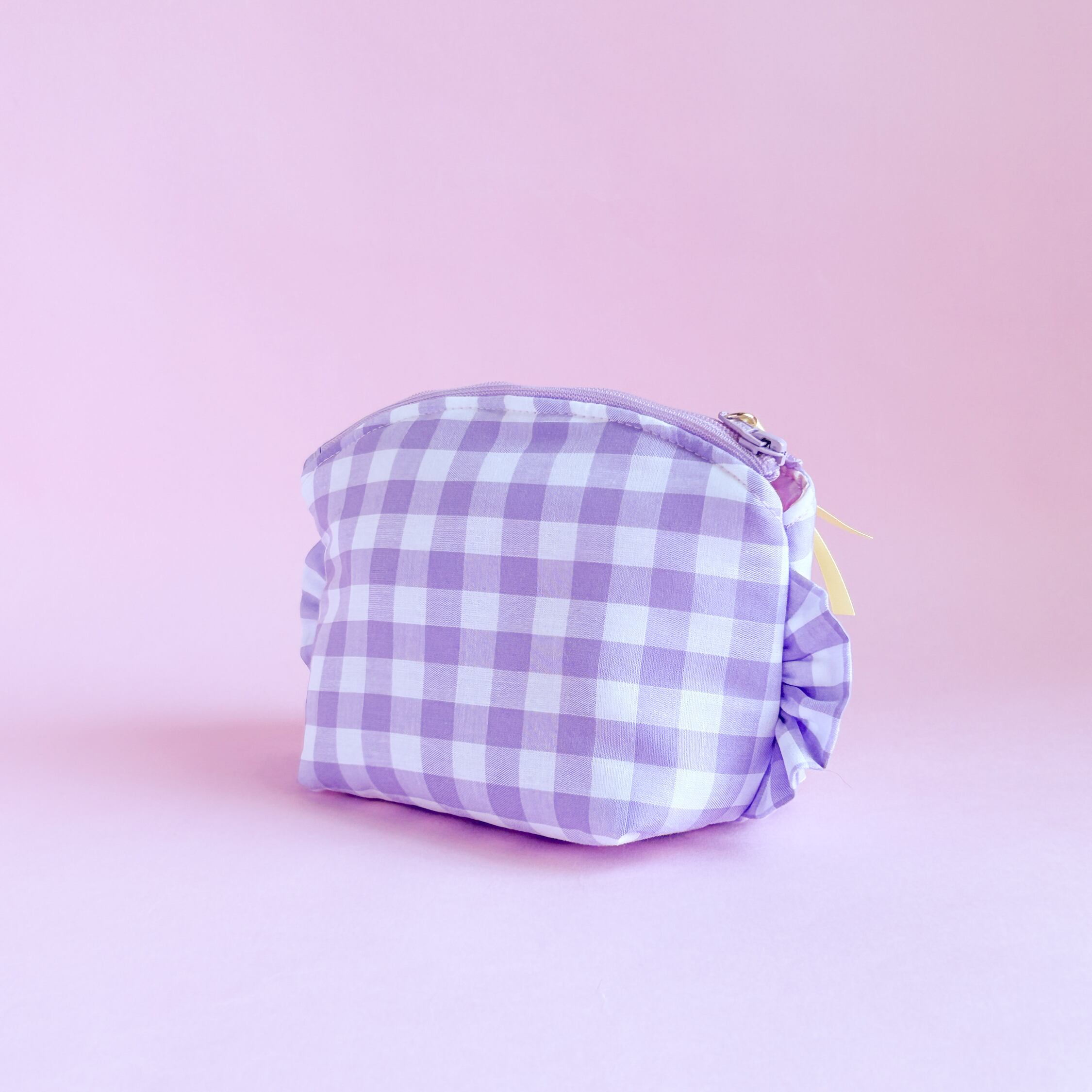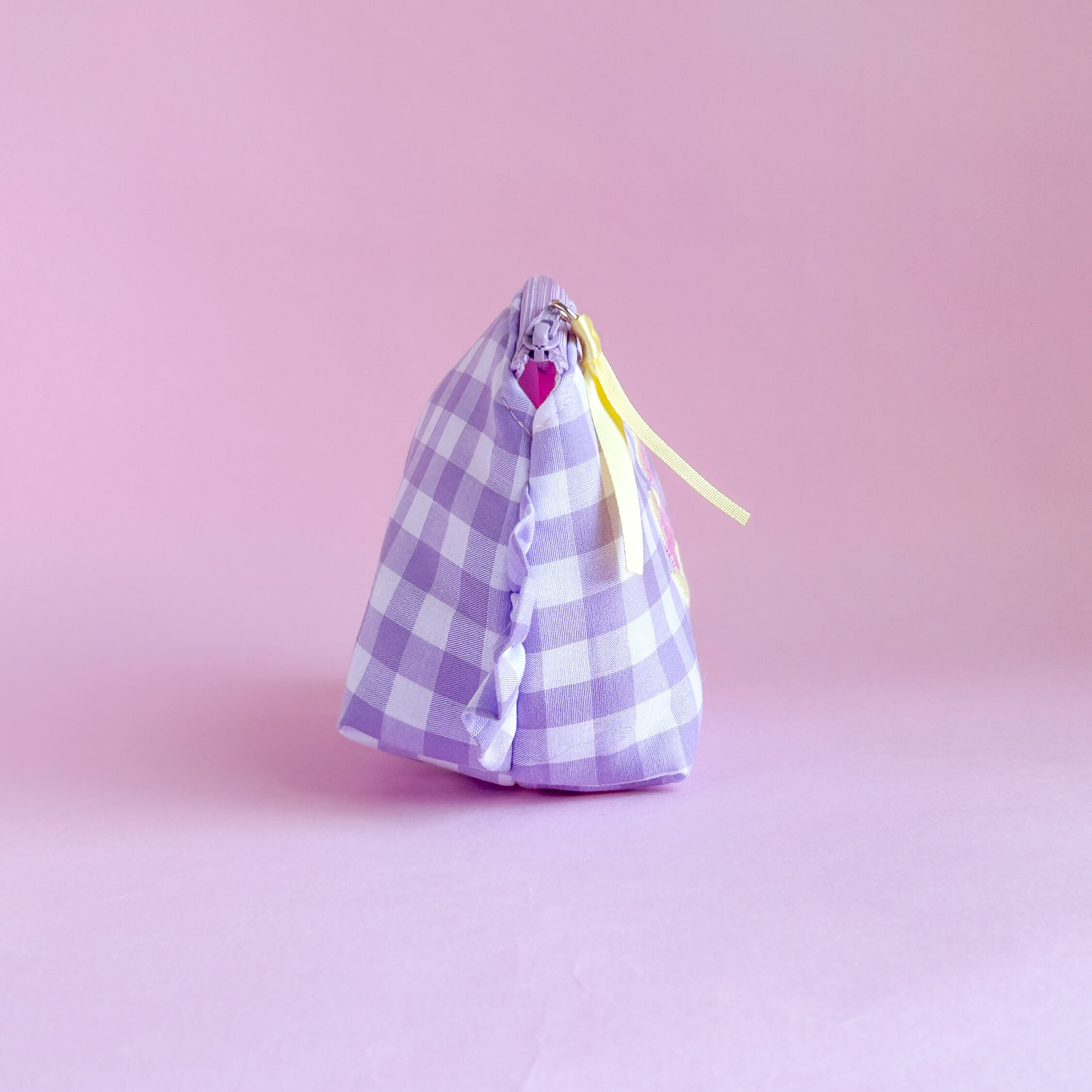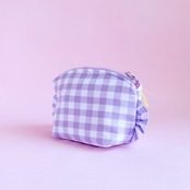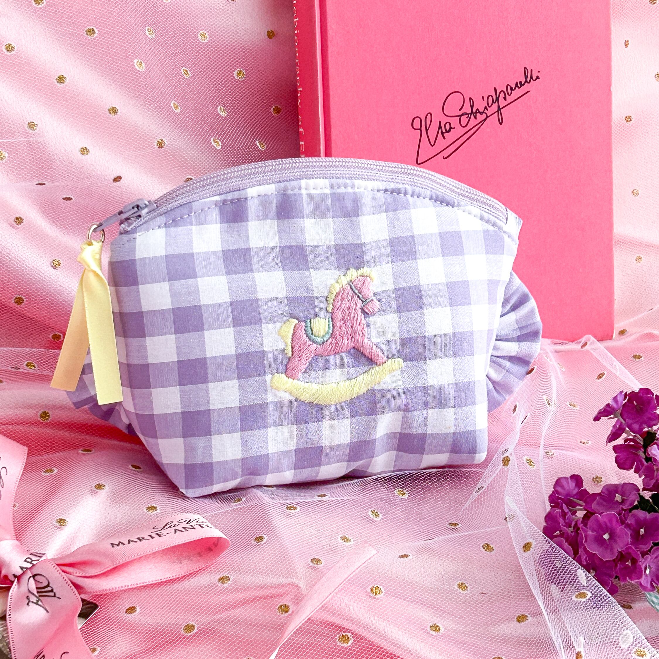 トップラウンドポーチ(紫ギンガム/ロッキングホース刺繍)ミネット手作りポーチ