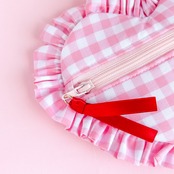 ふんわりとしたフリルがポーチの周りを取り囲み、可愛い印象を与えます。