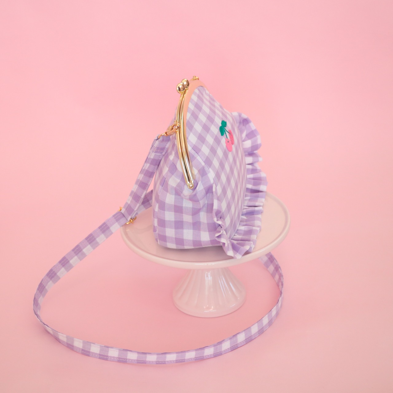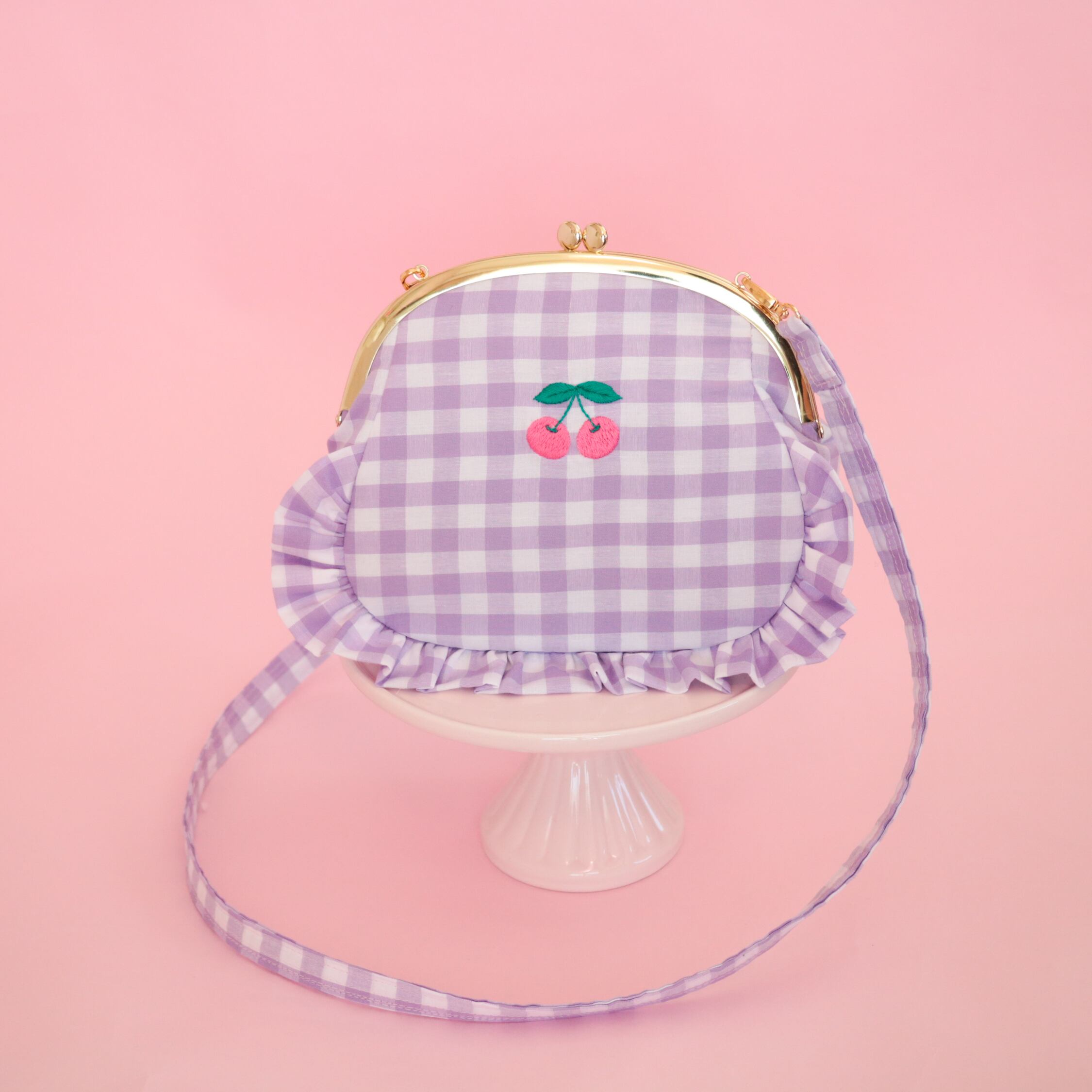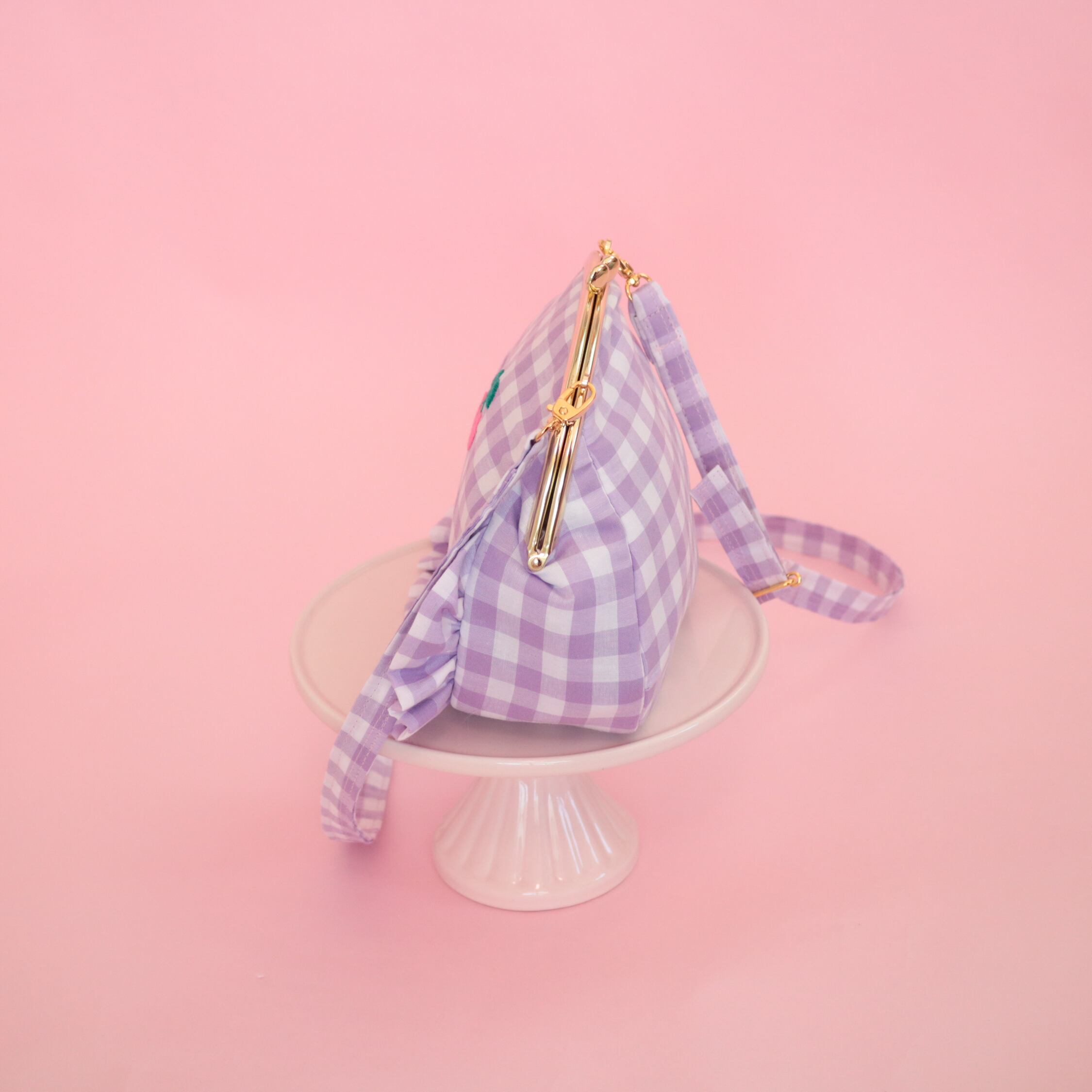 がま口ポシェット(むらさきギンガム)