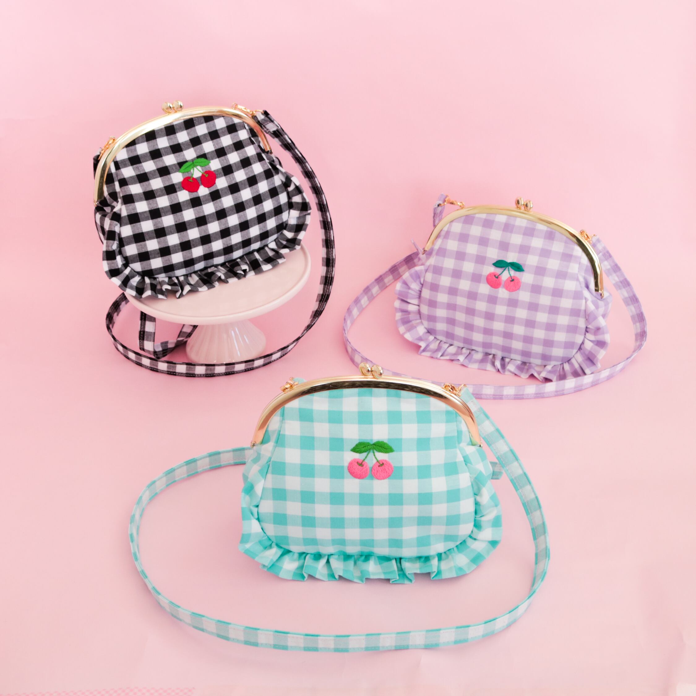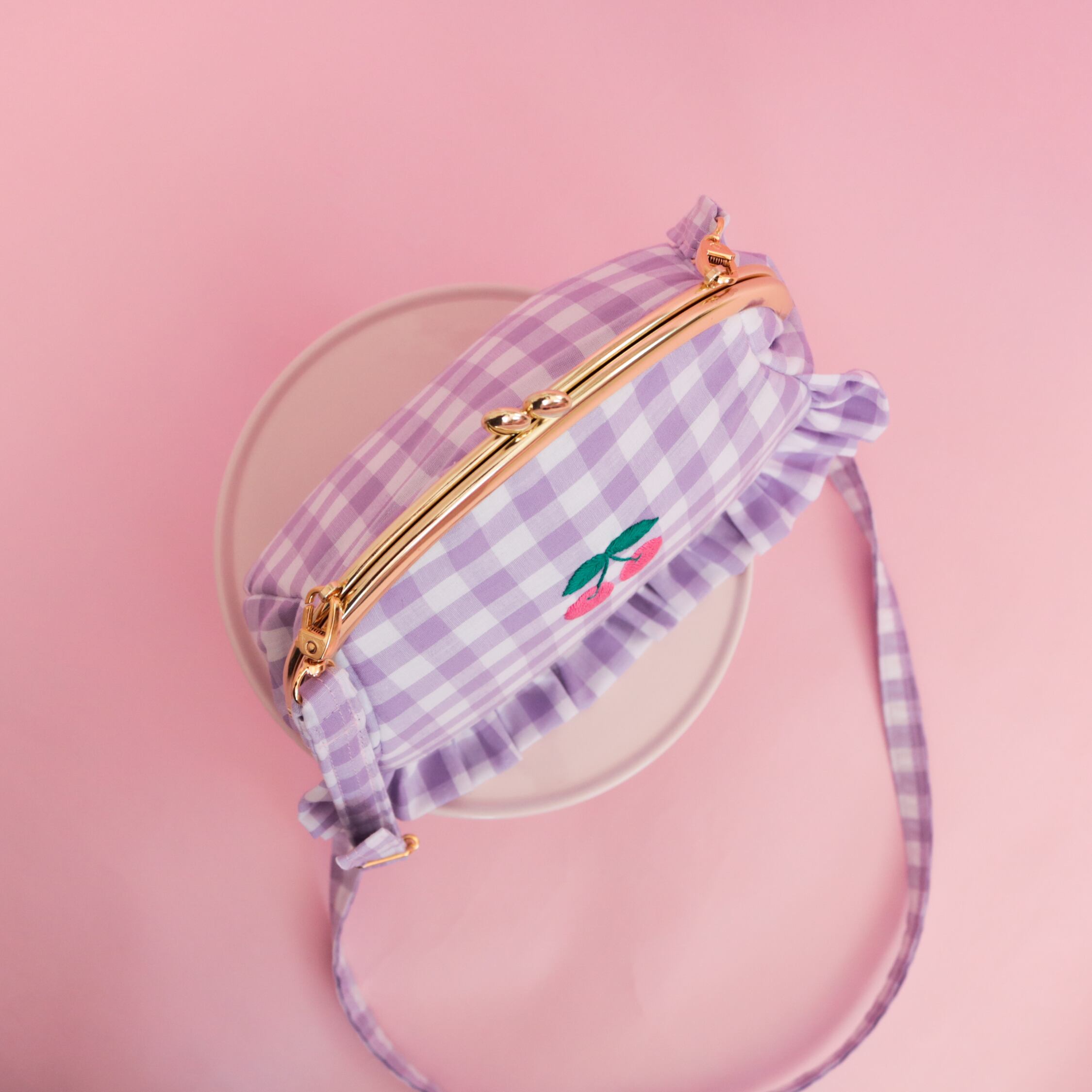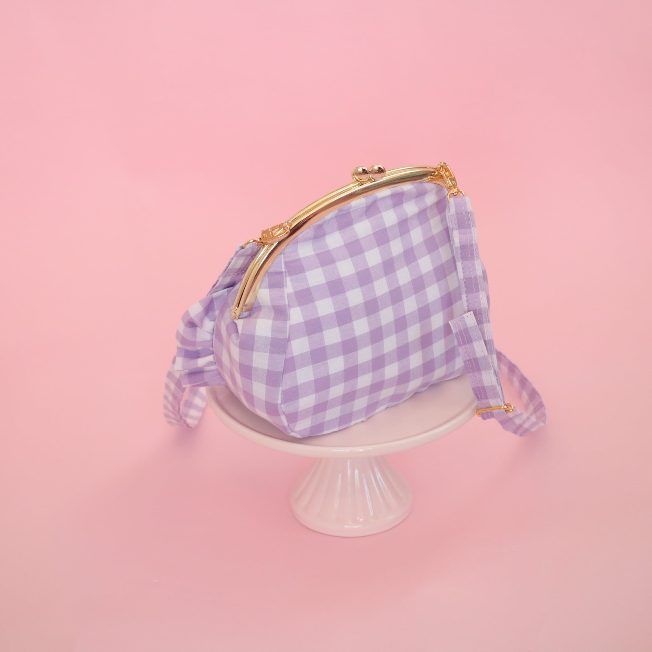がま口ポシェット(むらさきギンガム)