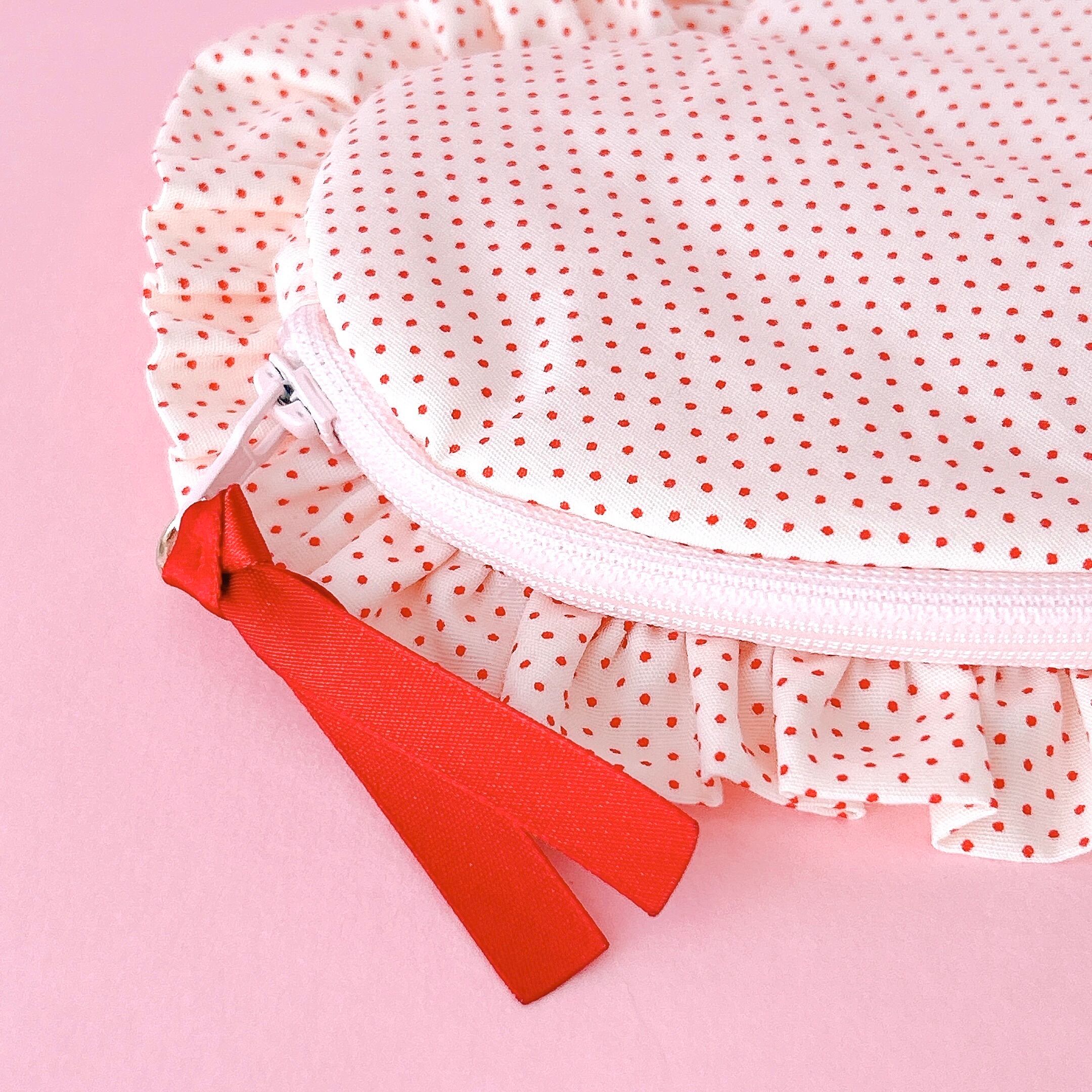 ハートポーチ(赤白ドット/ハートロリポップ刺繍)