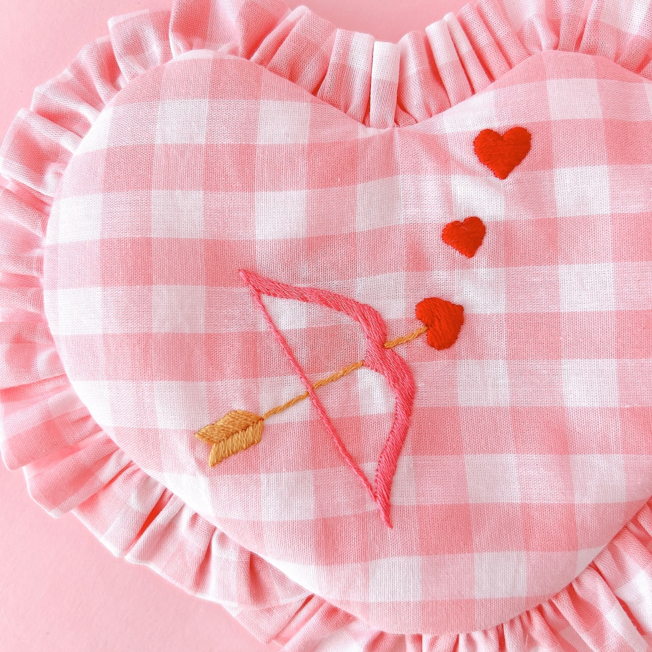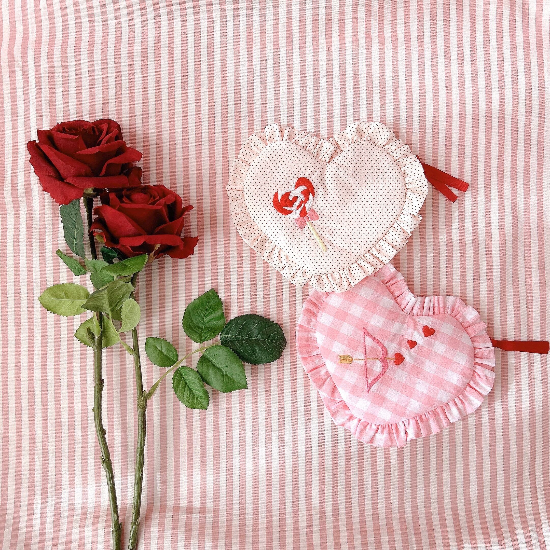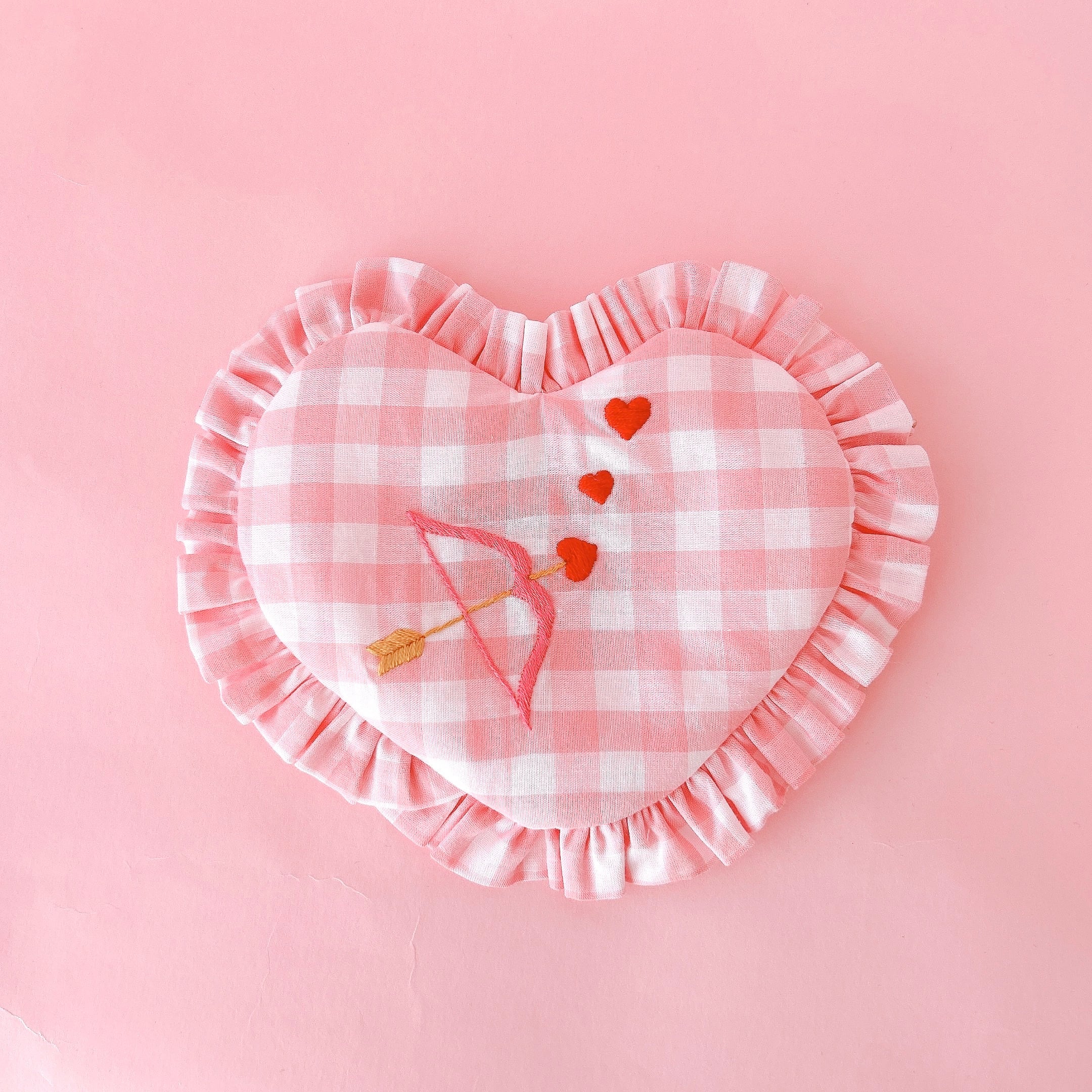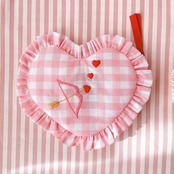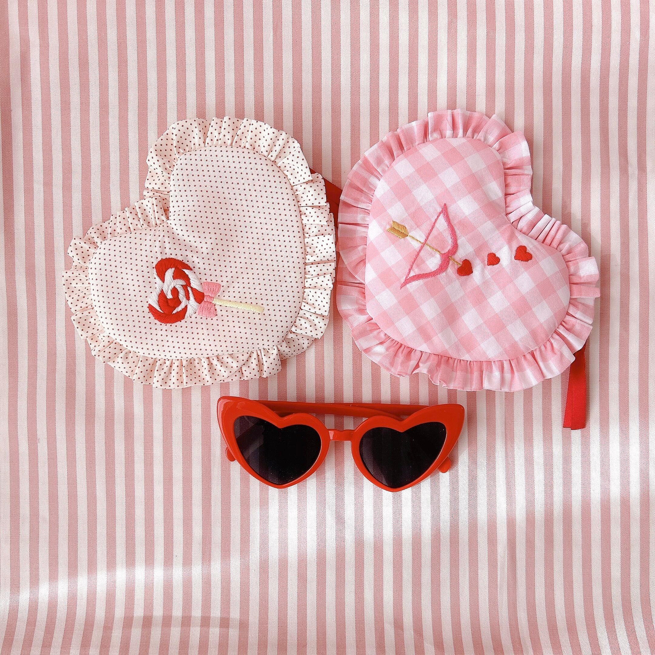 ハートポーチ(ピンクギンガム/キューピットの矢刺繍)