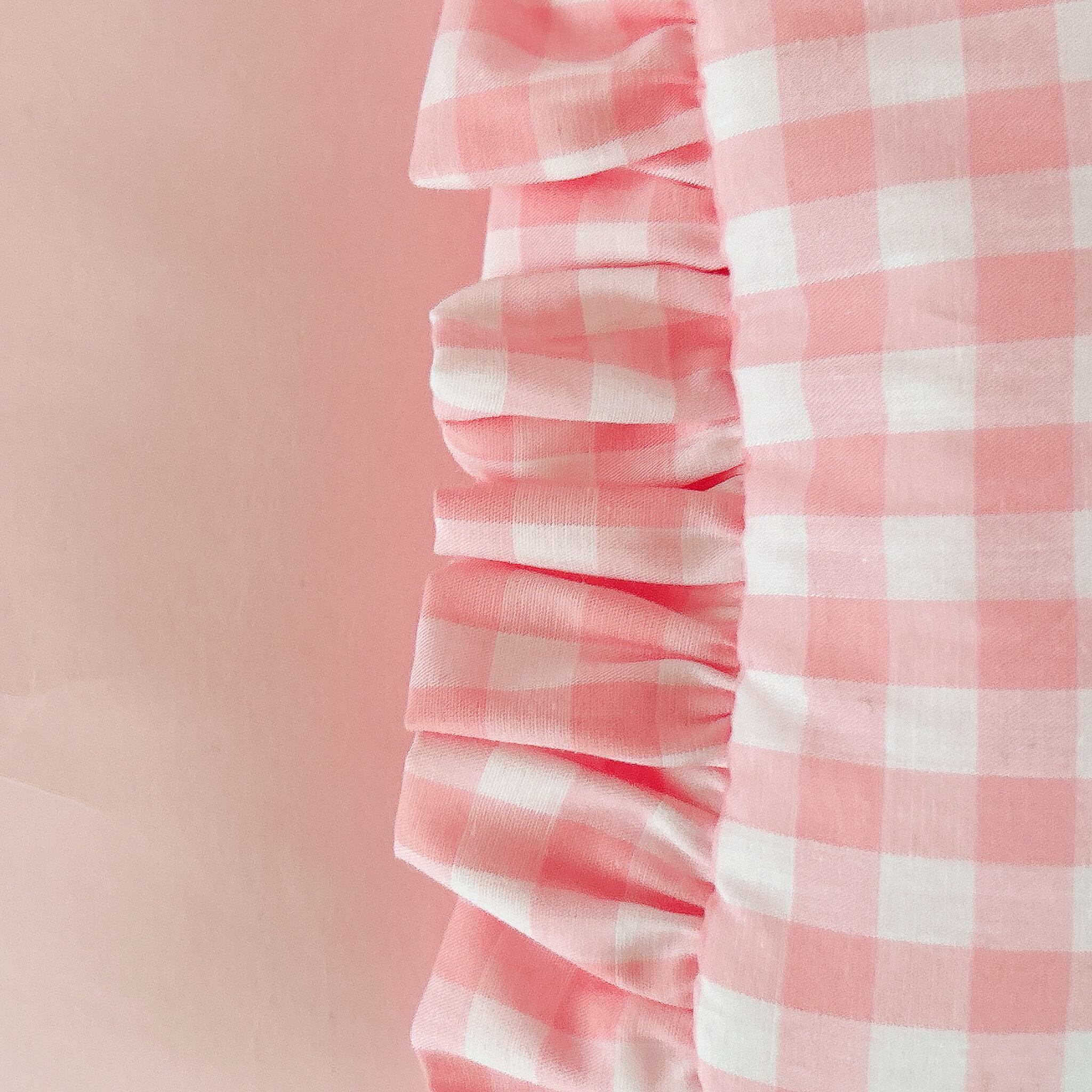 トートバッグ(ピンクギンガム/モコモコネコ刺繍)